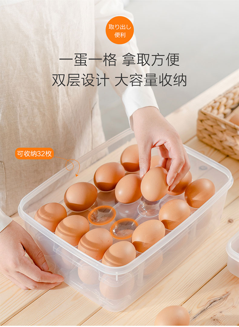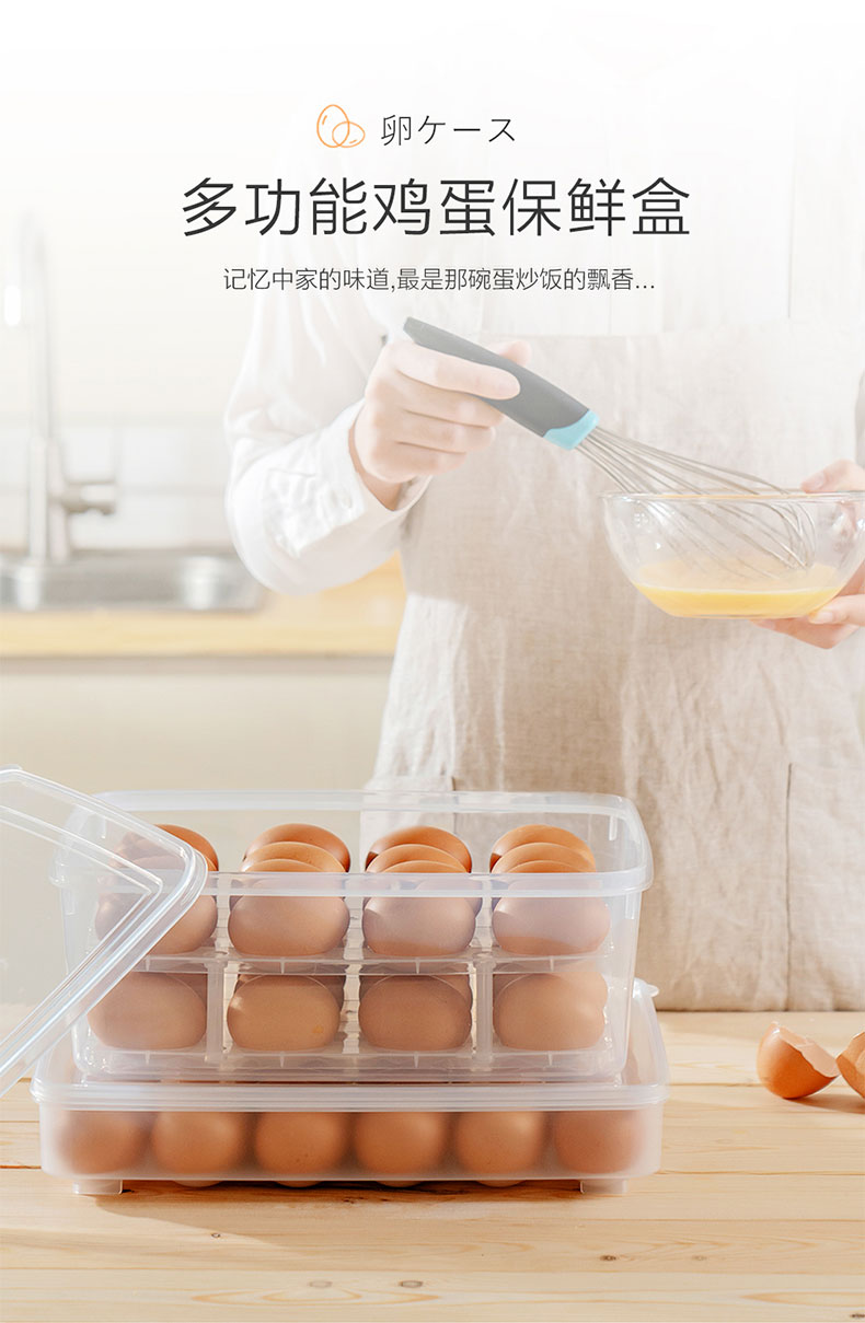 多功能鸡蛋保鲜盒,加厚环保材质,防尘可视,叠加收纳,双层设计,利用垂直空间,鸡蛋鸭蛋皆可盘,你的冰箱其实很能装~