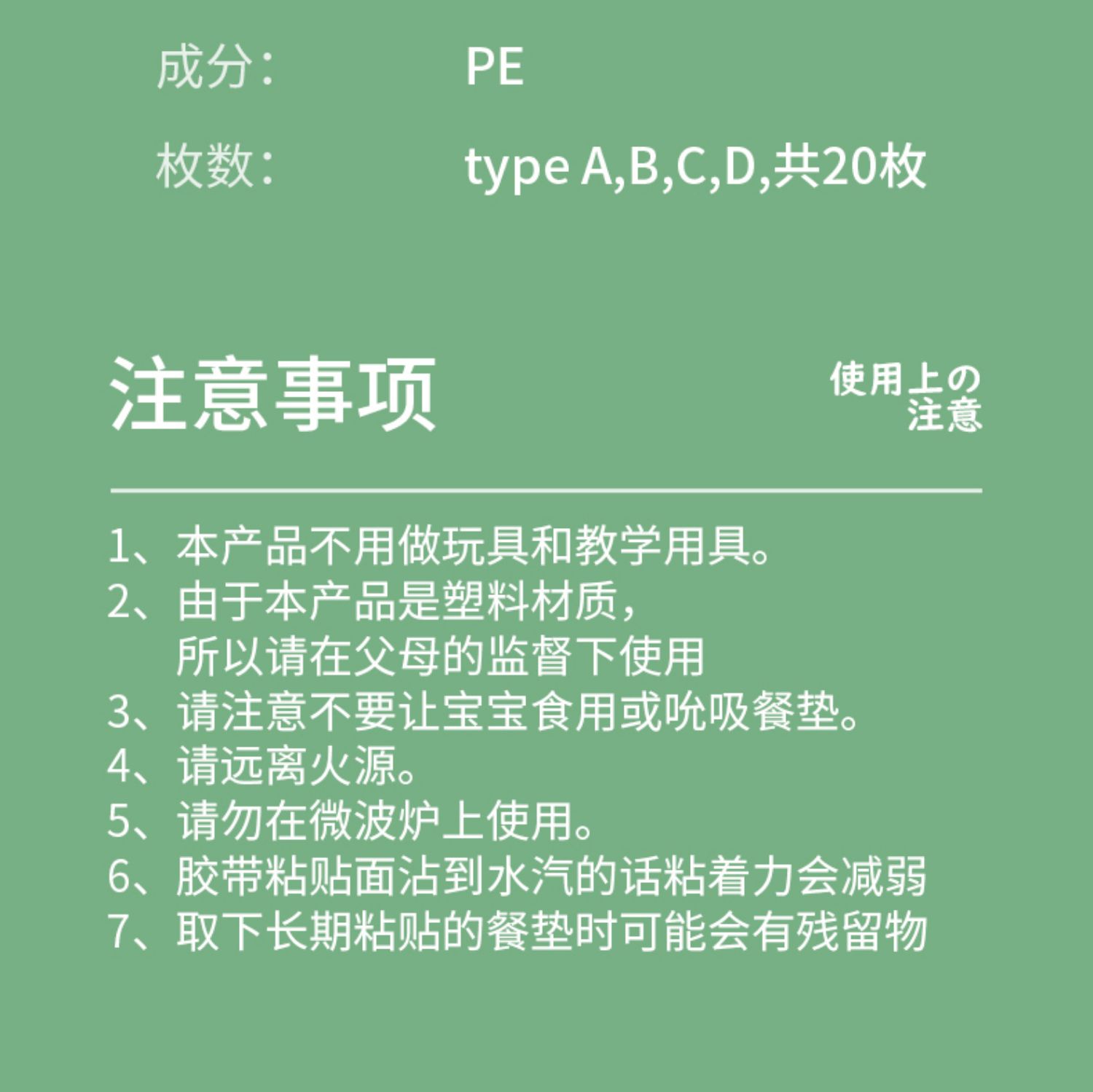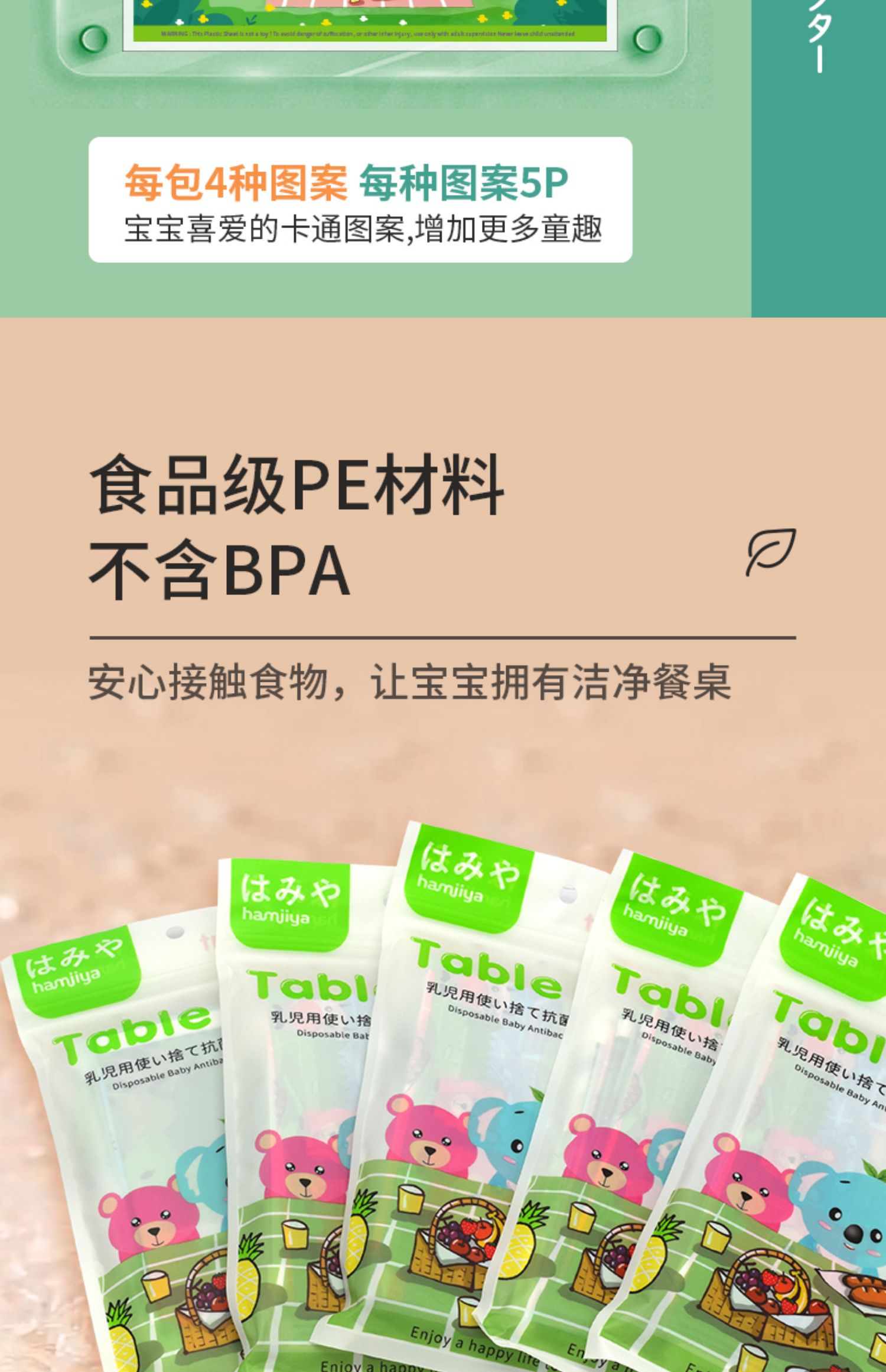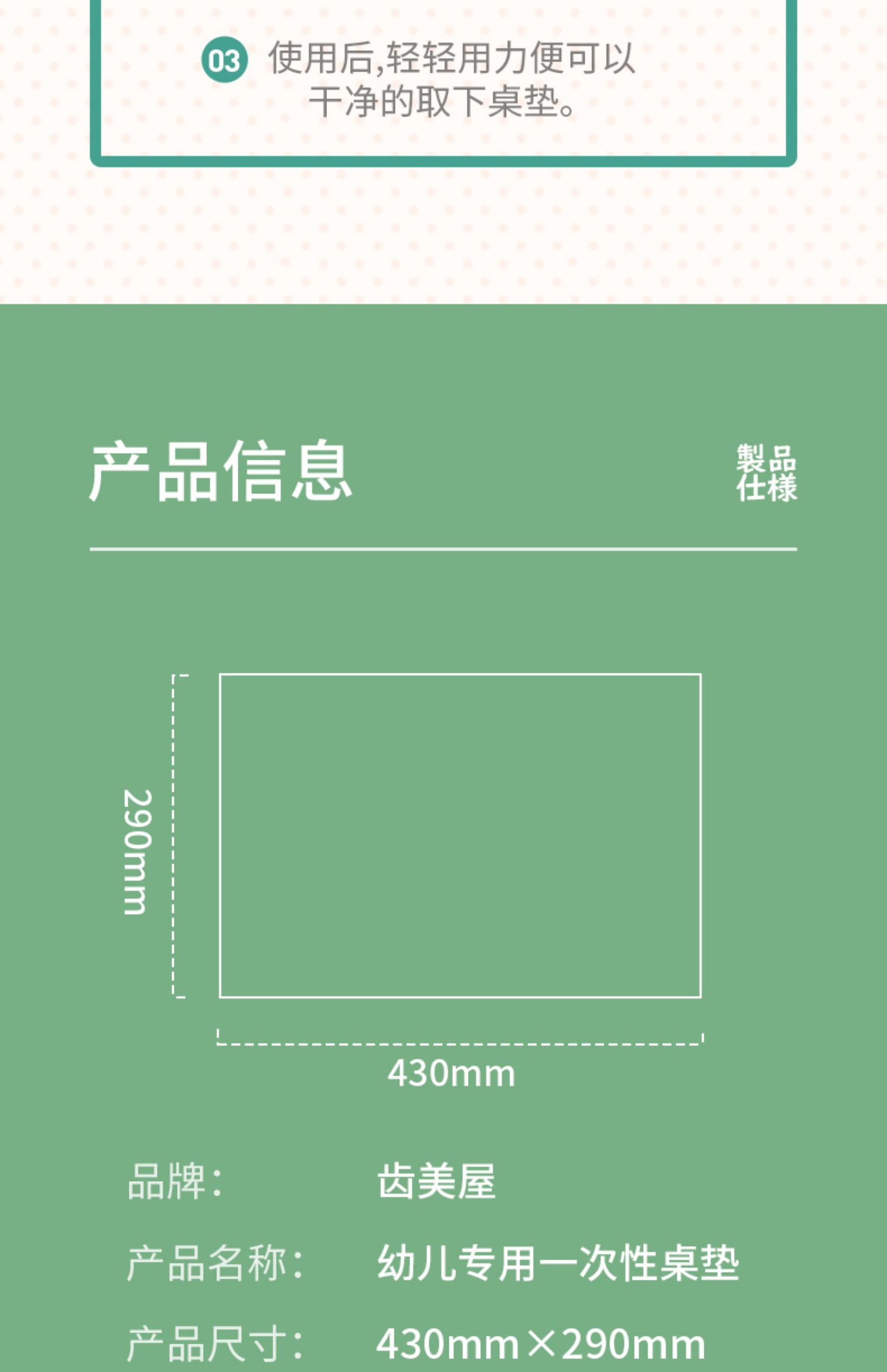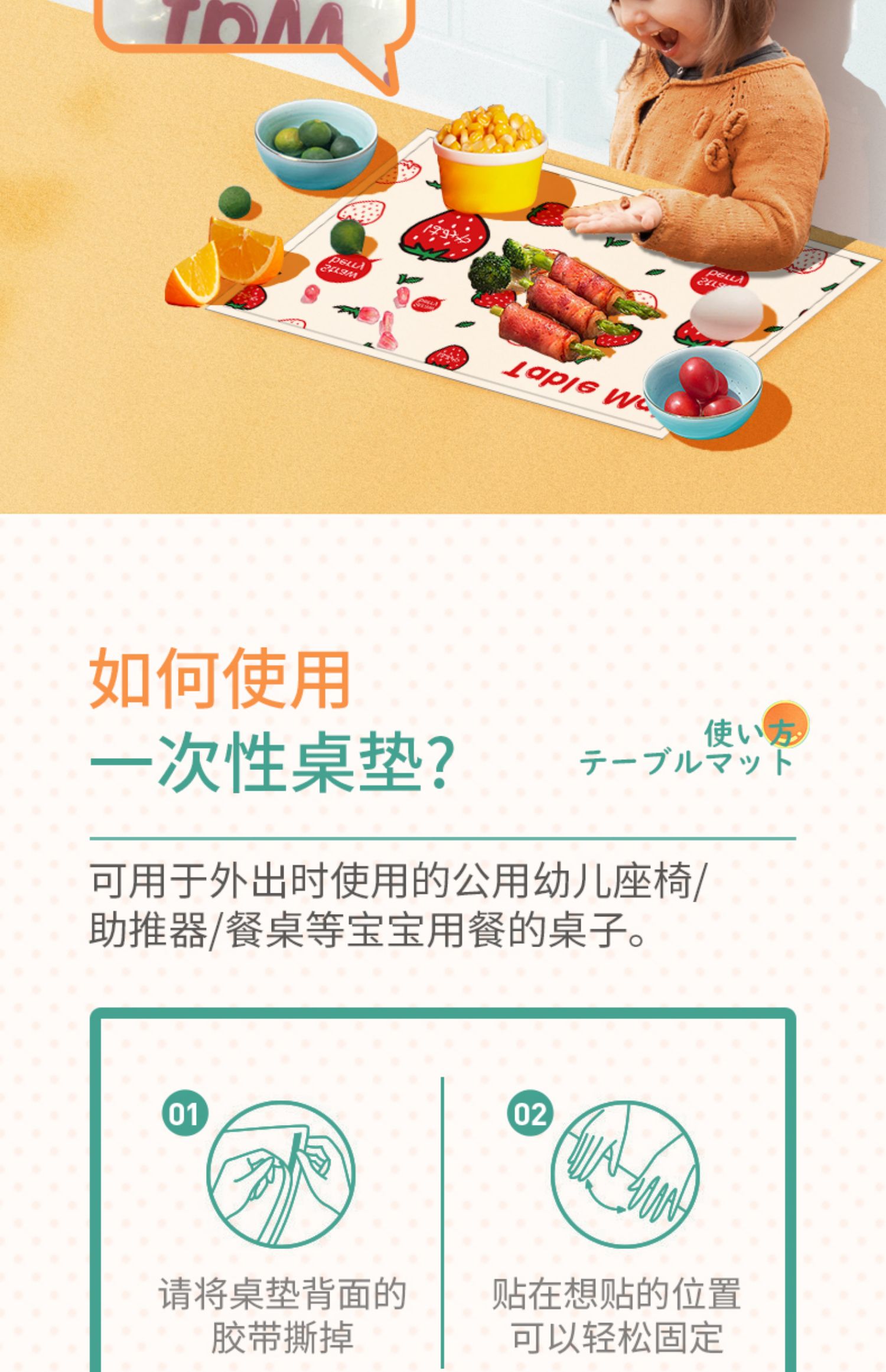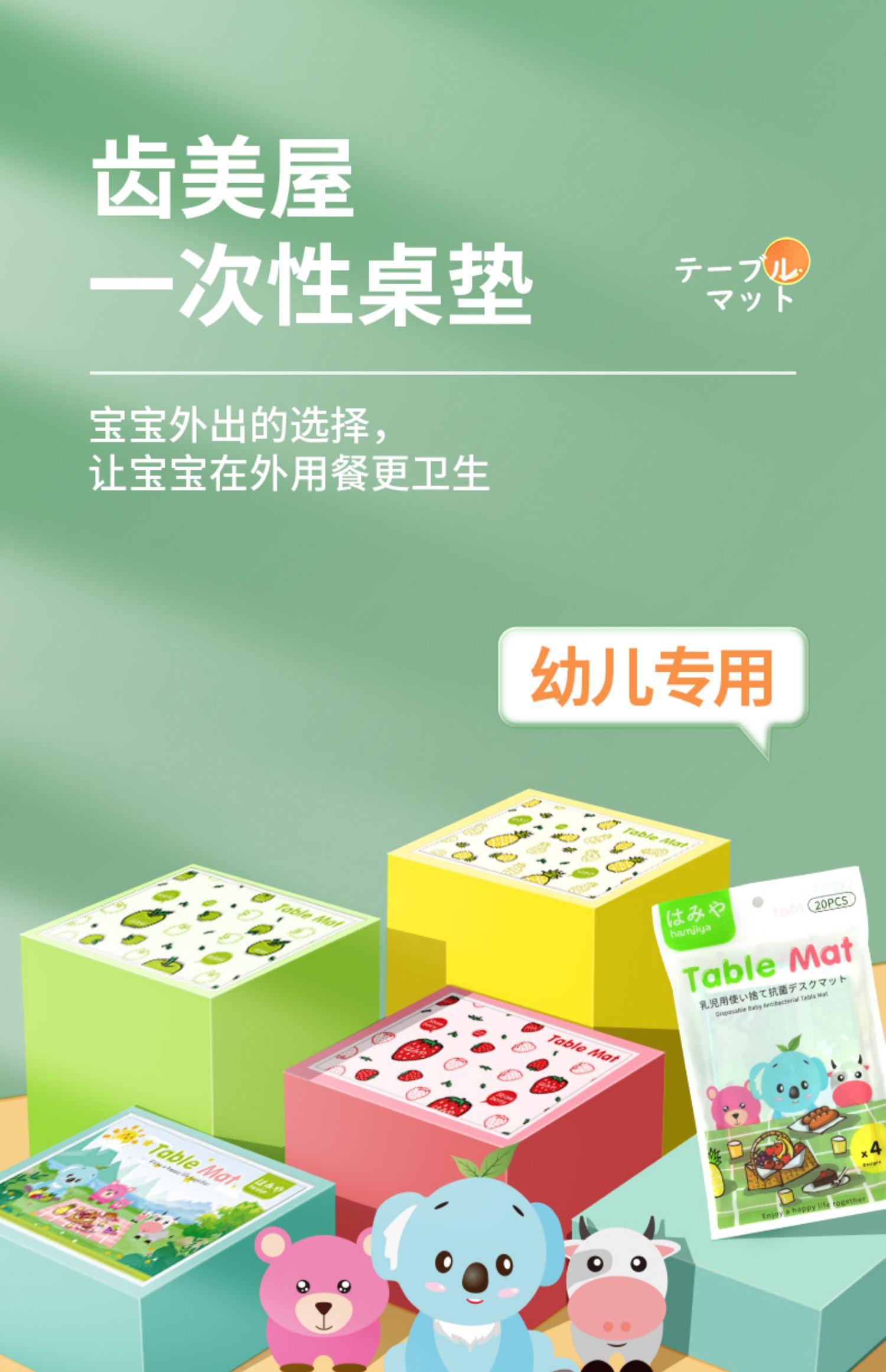 【齿美屋】儿童一次性餐桌餐垫20枚,安心材质,卡通图案,防水防油,携带方便,宝宝外出的选择,让宝宝在外用餐更卫生!!