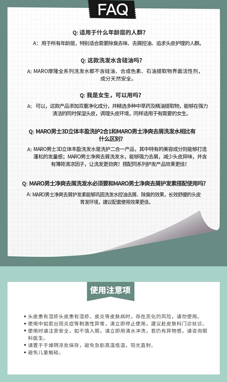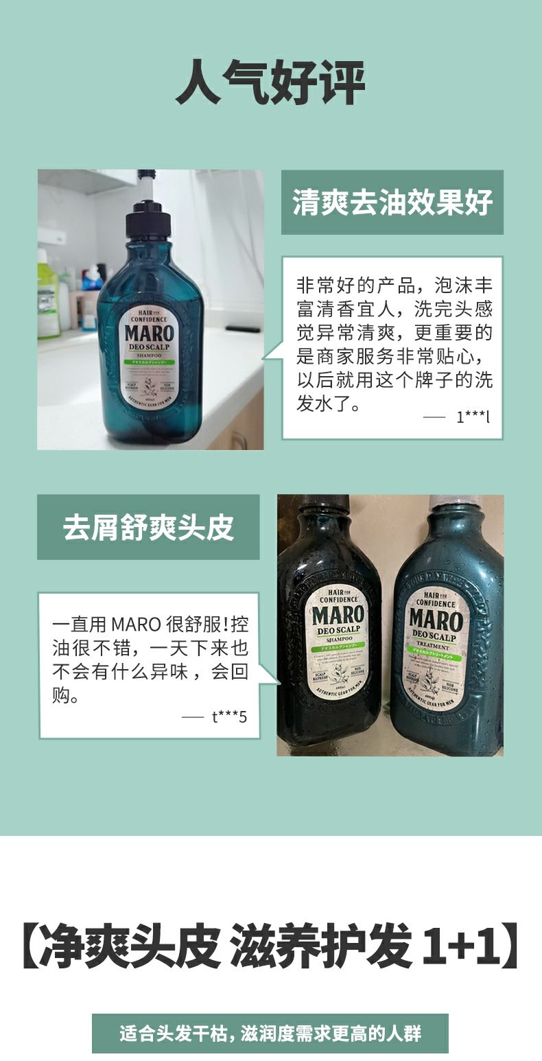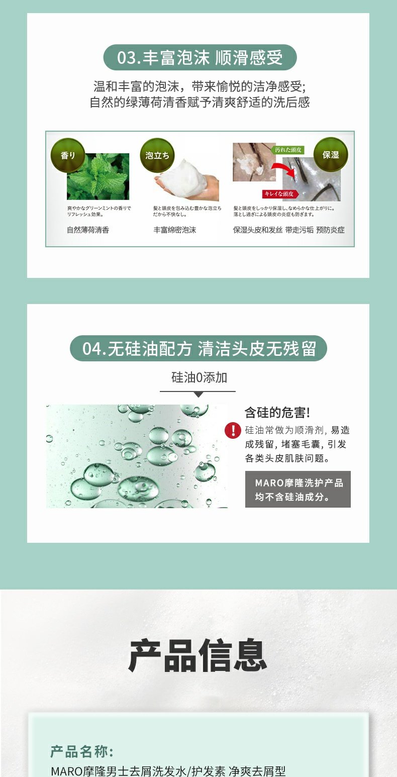 MARO男士洗发水净爽去屑480ml,无硅油去屑止痒控油洗发露,清爽去屑,唤醒头皮,根部去污,控油除异味!【赠运费险】