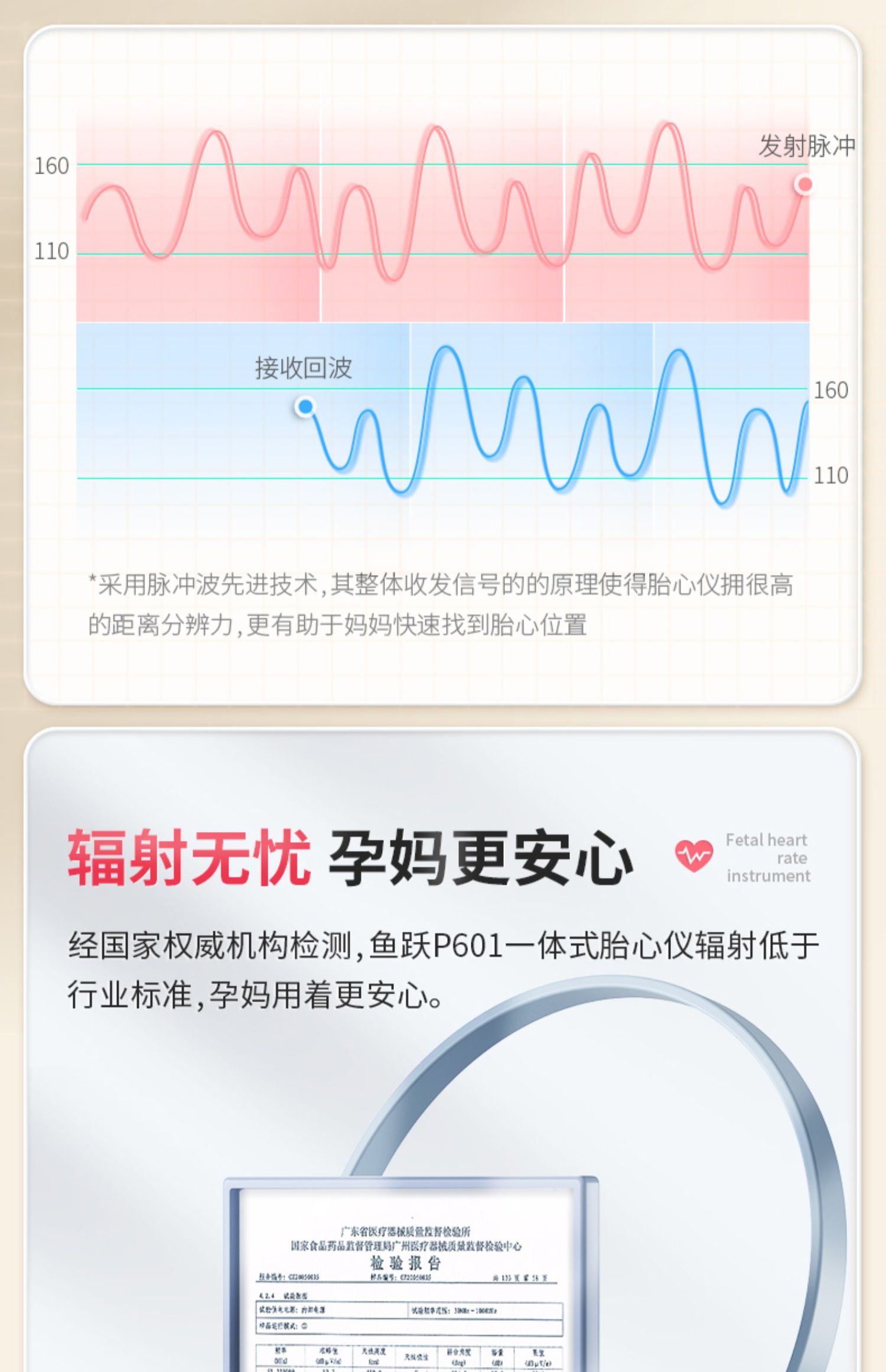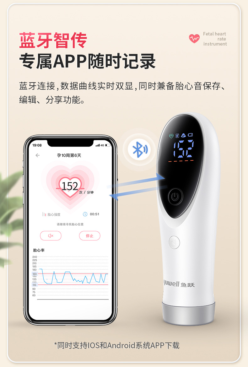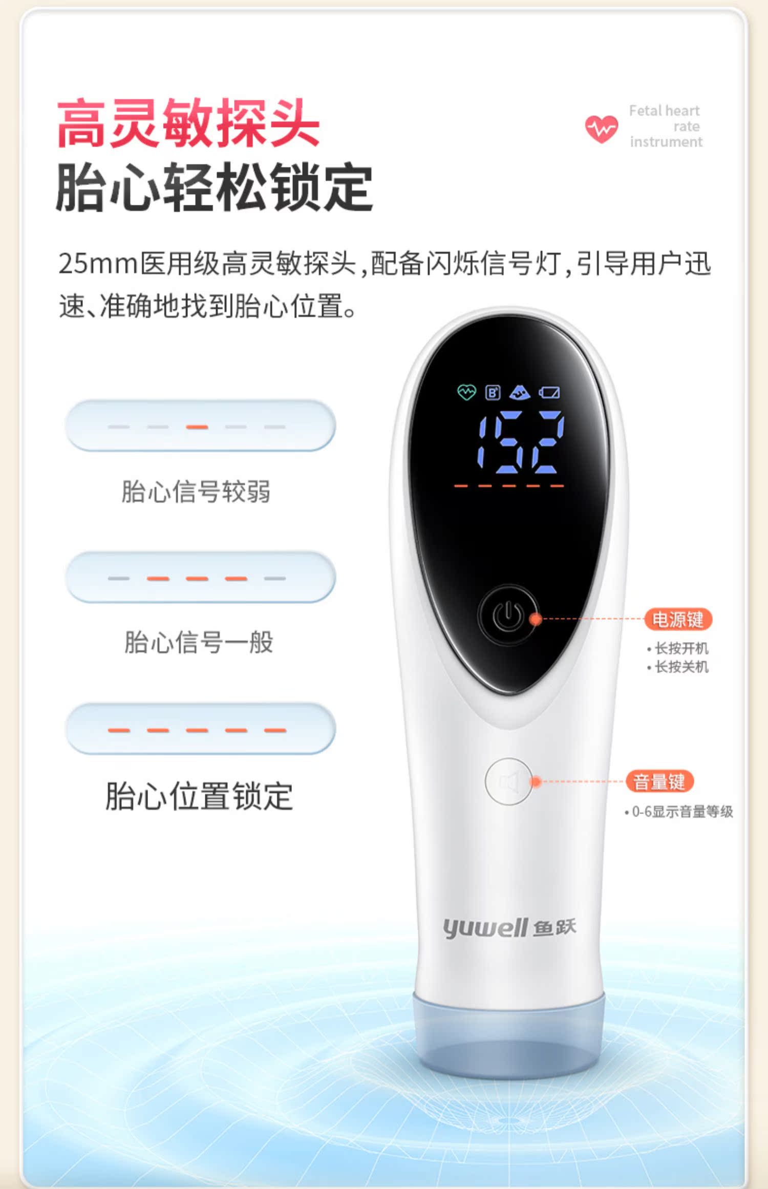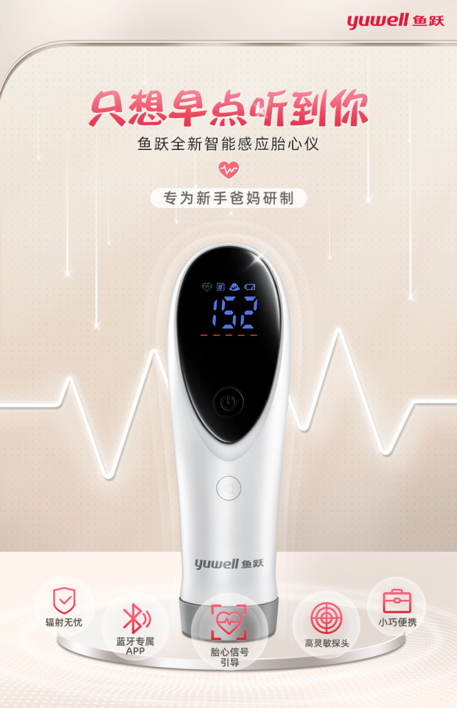 【买即送电子体温计+耦合剂*2】鱼跃全新智能感应胎心仪,超声多普勒胎儿心率仪;专为新手爸妈研制,高敏探头,胎心信号引导,智能一体感知,轻松锁定胎心~辐射无忧,小巧便携,只想早点听到你