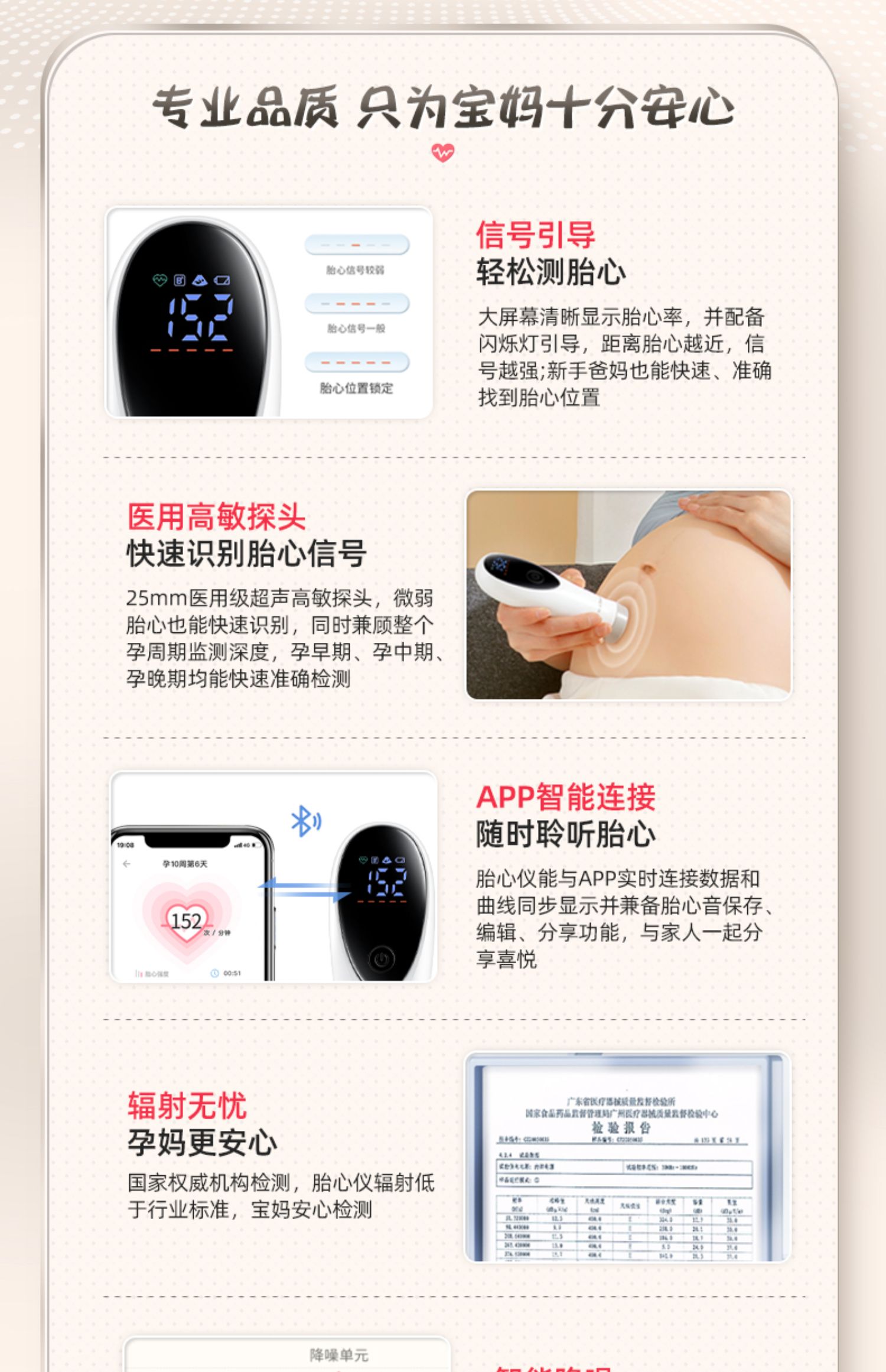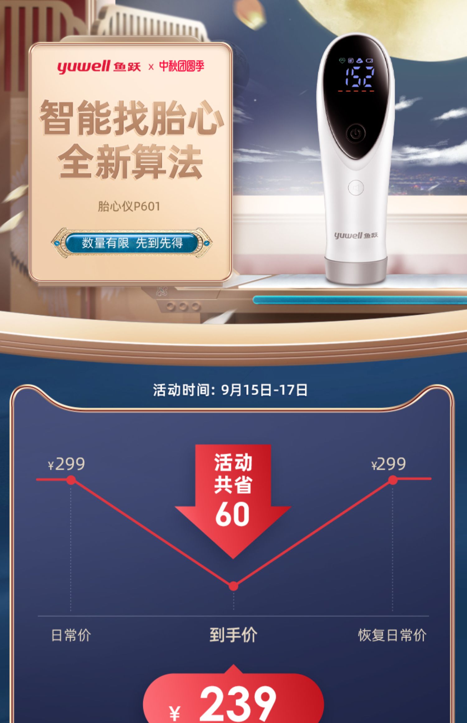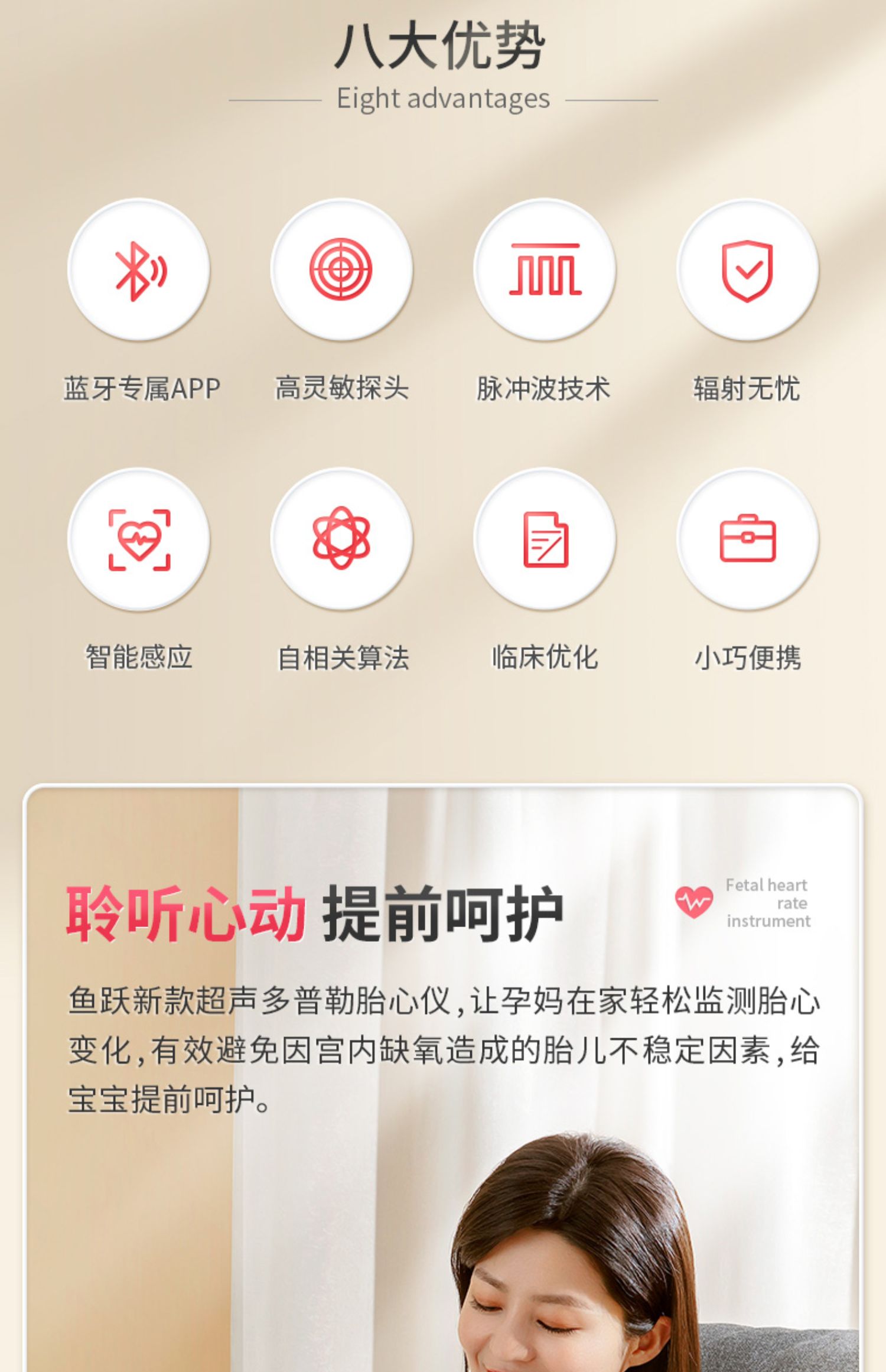 【买即送电子体温计+耦合剂*2】鱼跃全新智能感应胎心仪,超声多普勒胎儿心率仪;专为新手爸妈研制,高敏探头,胎心信号引导,智能一体感知,轻松锁定胎心~辐射无忧,小巧便携,只想早点听到你