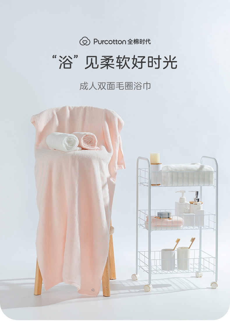 【多种款式任选】【全棉时代旗舰店】绿色抗菌,成人毛卷浴巾,百分百精梳棉,不易掉毛,蓬松更柔软,厚实双面毛圈,吸水快易拧干,活性色织工艺,环保不易褪色!【赠运费险】