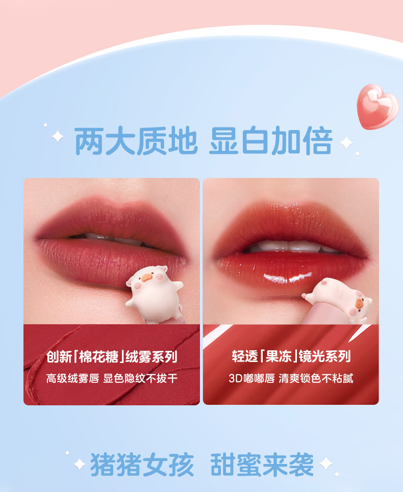 卡姿兰,国货彩妆品牌,高级绒雾唇,显色隐纹不拔干,3D嘟嘟唇,清爽锁色不粘腻,支支显白,猪猪女孩甜蜜来袭