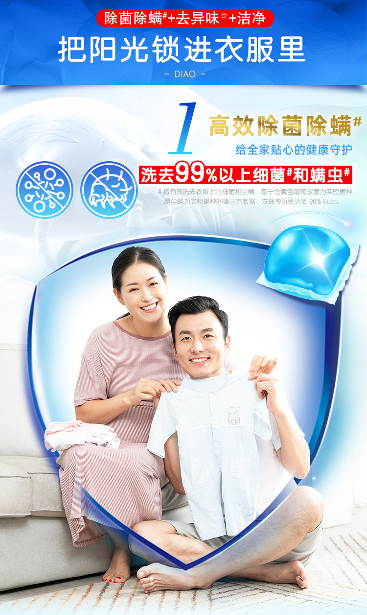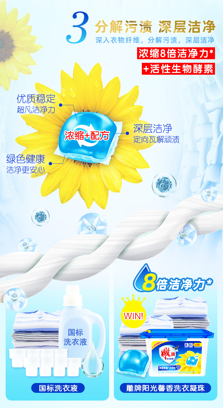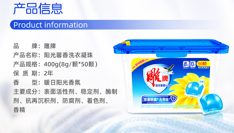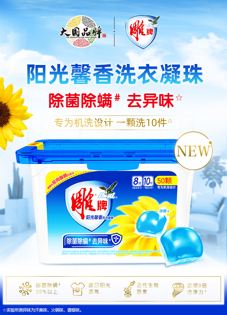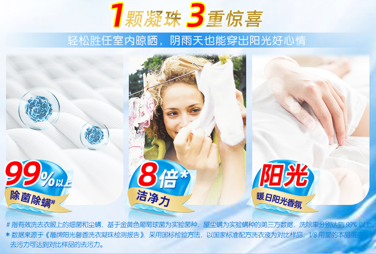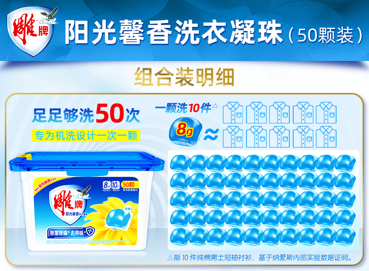【单件包邮】雕牌阳光馨香凝珠,8倍深层洁净,除菌除螨,防阴天霉味,柔软亲肤,8倍洁净,沁人芳香