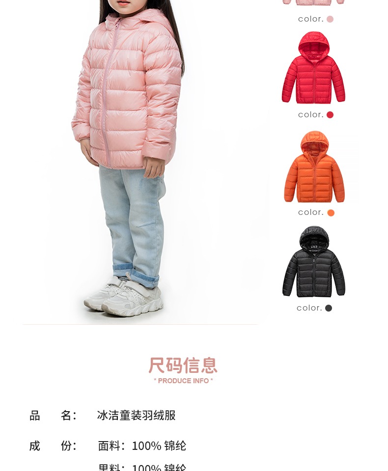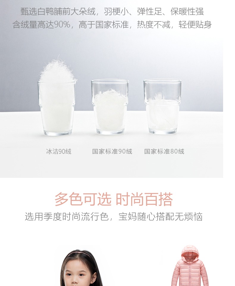 大牌冰洁,110-160cm,男女宝同款!90白鸭绒填充,含绒量高,轻盈暖和,防风御寒就靠它了,宝妈们快抢~【退货运费险】