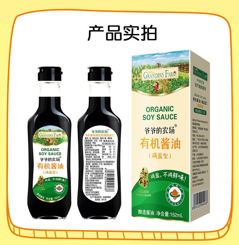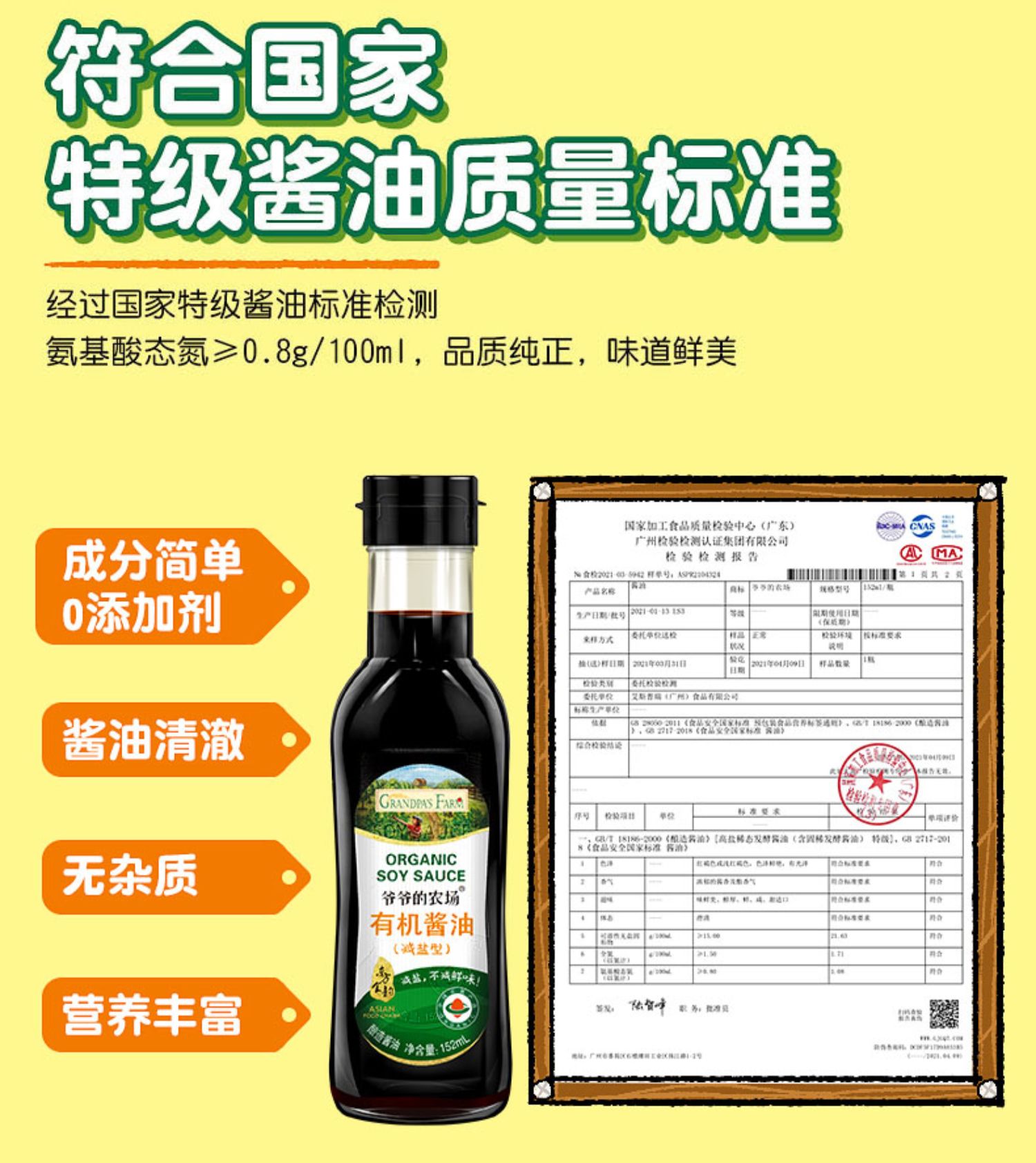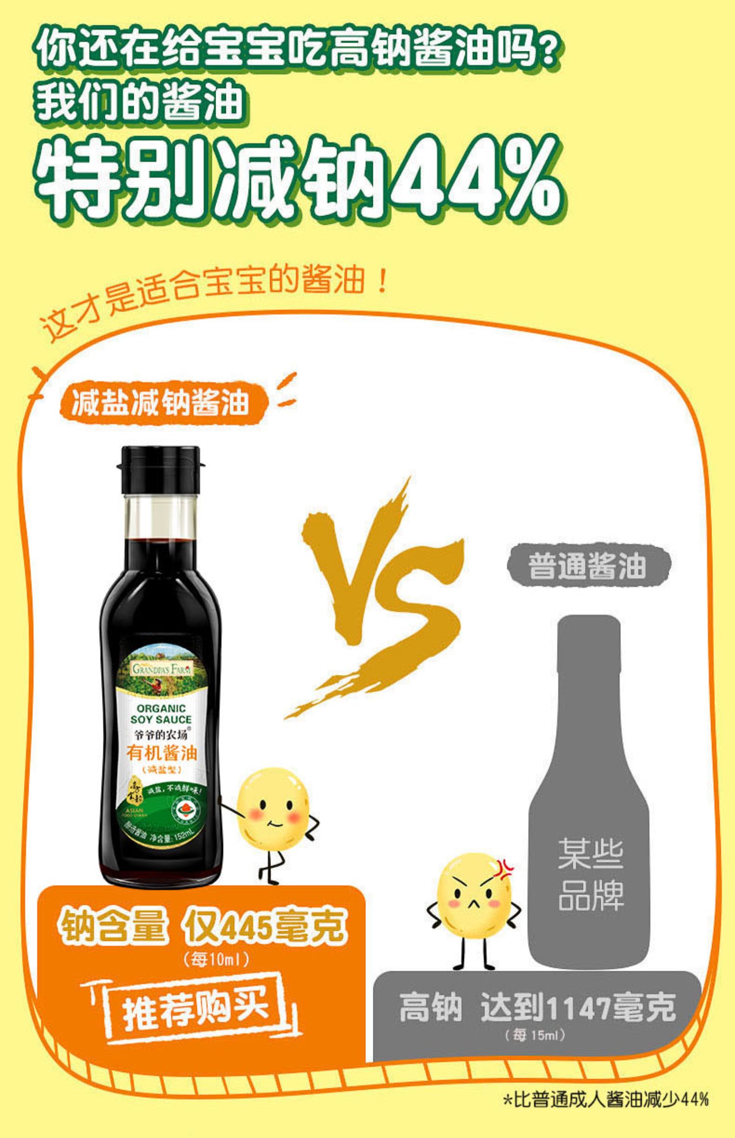 【拍2件5折】爷爷的农场,高营养更安全,无添加调料有机酱油,妈妈放心!每一滴都很用心!炒菜,凉拌,给宝宝做辅食,营养又健康!!