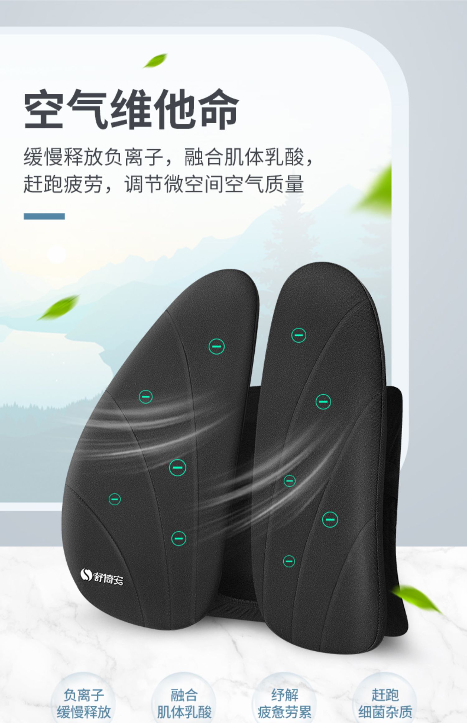 【林依轮直播推荐】负离子清新,3D动态支撑,人体工学减压腰靠,真正护腰,久坐8小时不累!办公,家居,车载等适用于多种场合的背垫神器,运动透气面料,四季可用。
