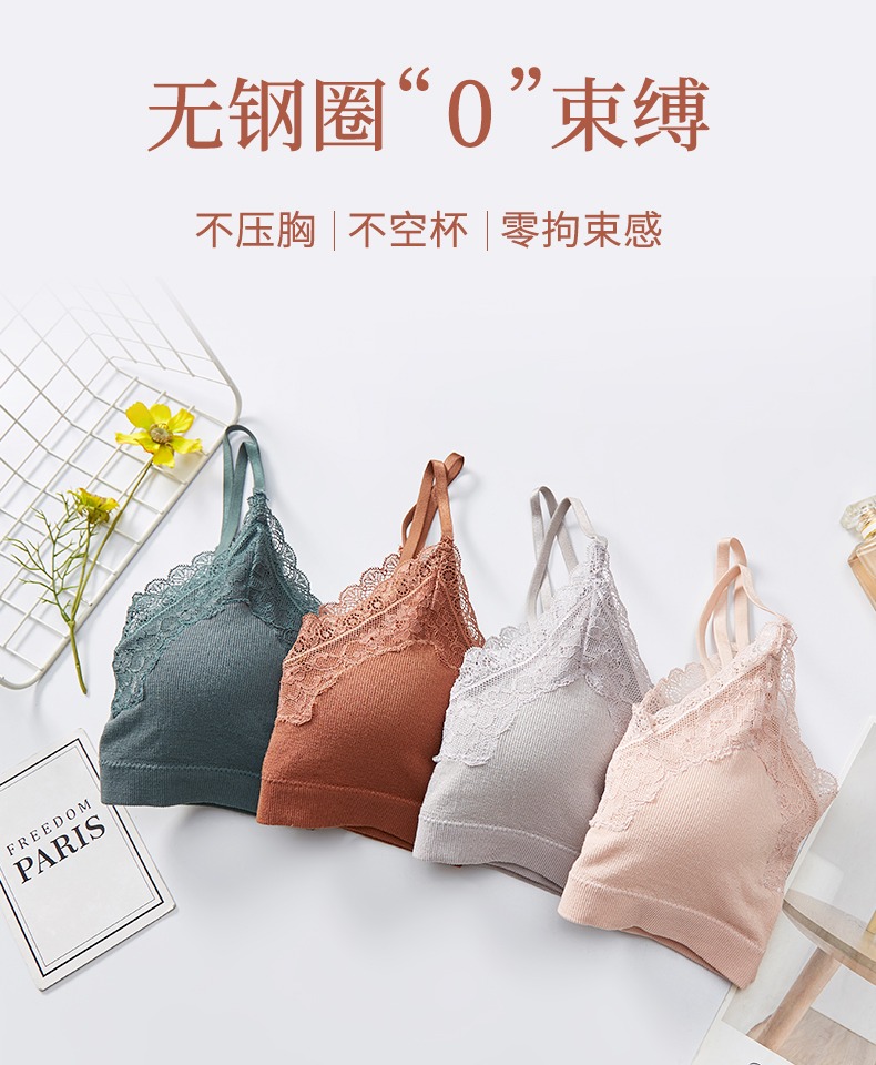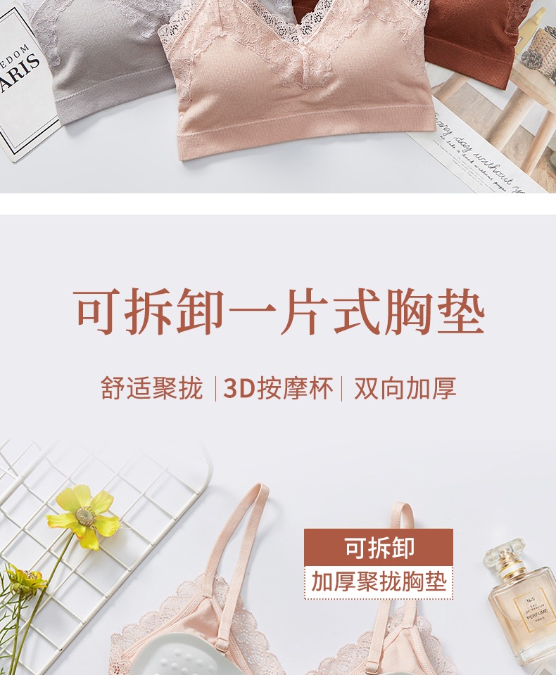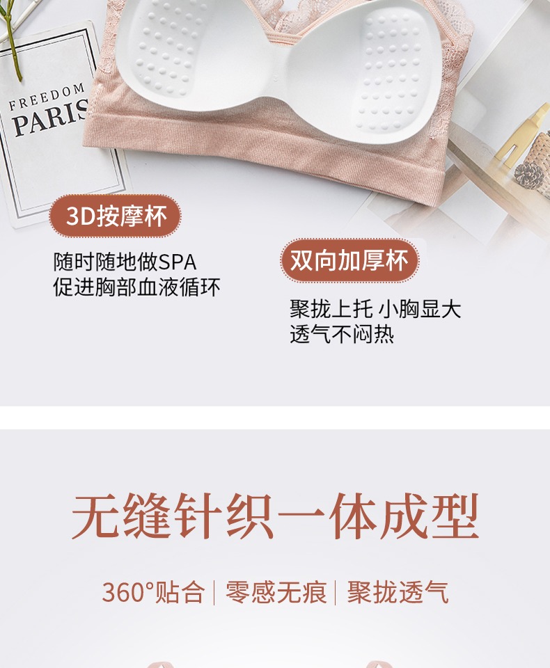 【拍两件到手29.9】蕾丝无痕款背心吊带聚拢无钢圈内衣可拆卸一片式,舒适聚拢3d按摩方向加厚随时随地做SPA,双向加厚透气不闷热,无缝针织一体成型方便清洗不易【赠运费险】