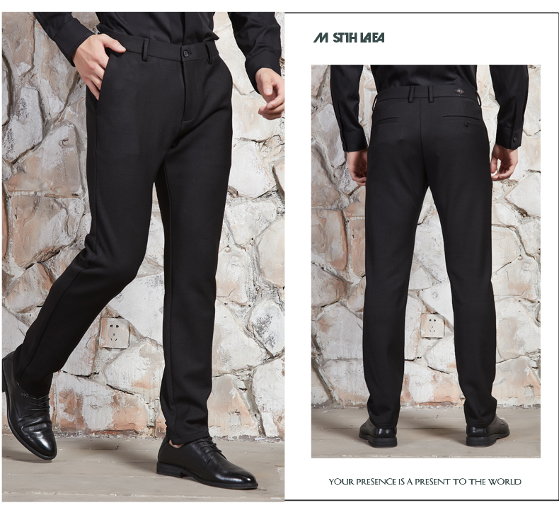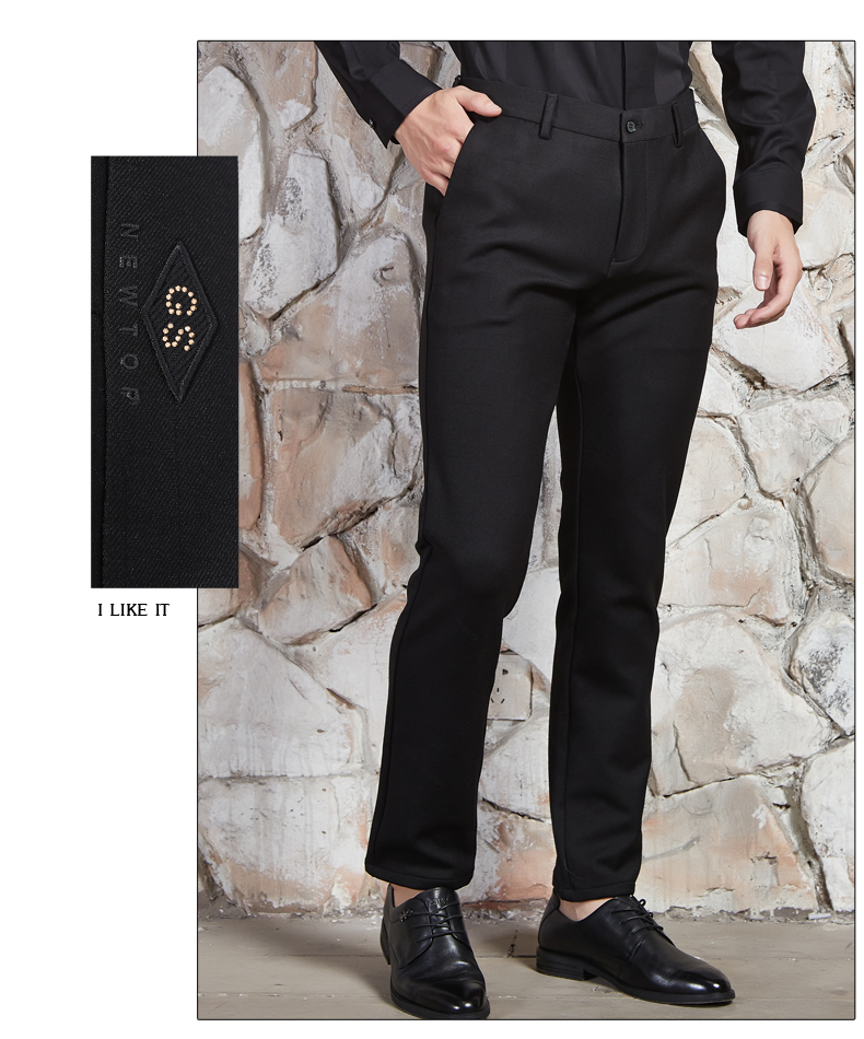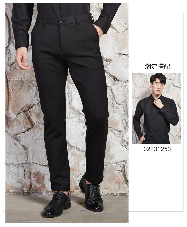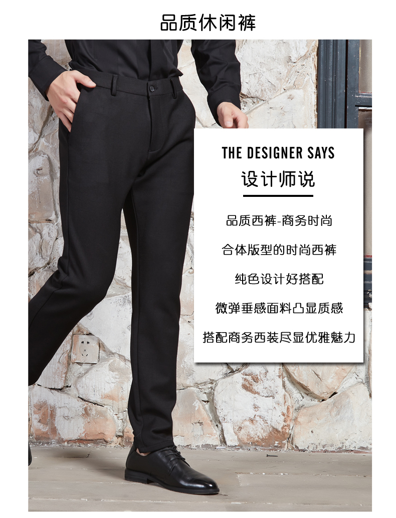 【满300减30】2021秋季新品男士纯黑色直筒西裤,采用中腰设计、侧插口袋、流畅拉链、一字口袋、小脚裤口、内部走线工整,棉纶面料,轻便舒适,质感优越,搭配商务西装,尽显优雅魅力。
