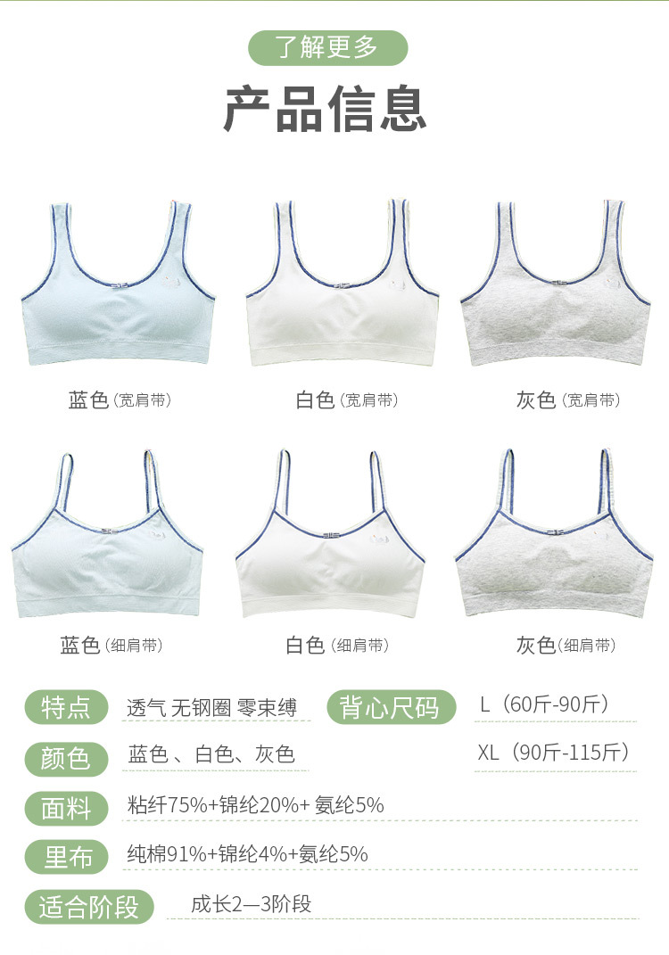 【淘金币价格23】【2件装】女童发育期文胸,亲肤纯棉面料专为发育期设计!防凸点不尴尬,搭配校服不透色!让宝贝抬头挺胸做个自信的女孩子【赠运费险】