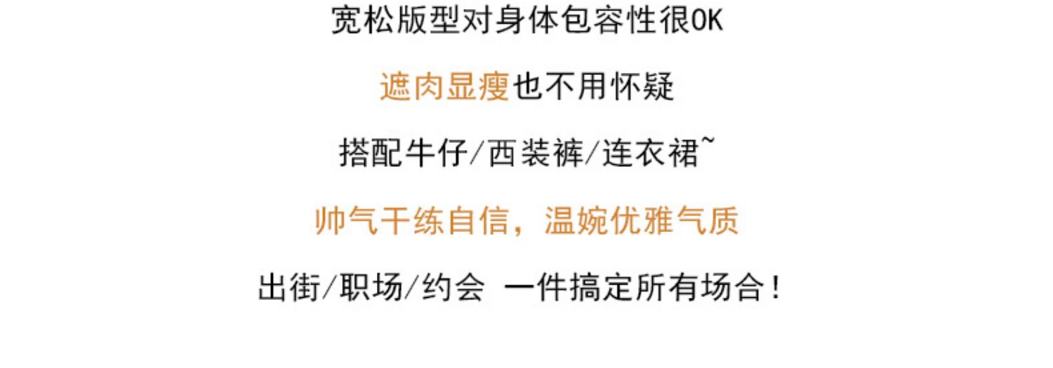 【专柜一件卖价200多!!】本季流行新款,做工优良,舒适通勤,显高显瘦,潮流又百搭,简约复古版西装,垂顺有型,衣橱必备时尚单品之一!【赠运营险】