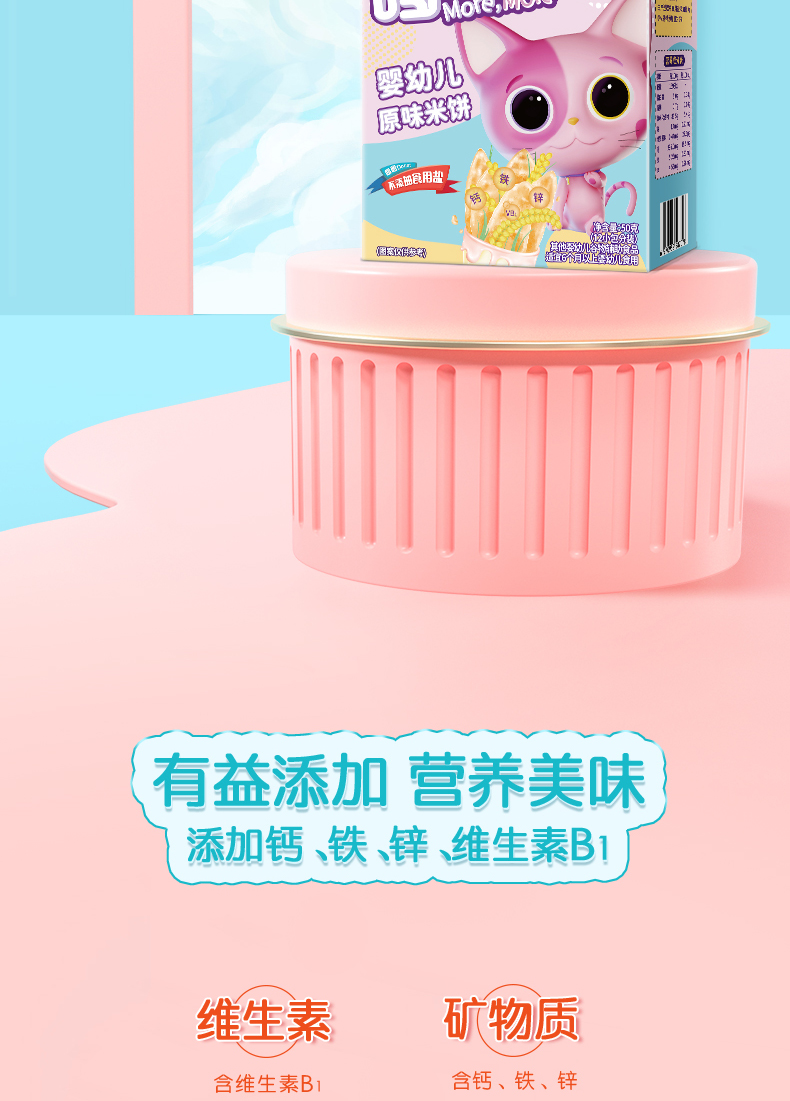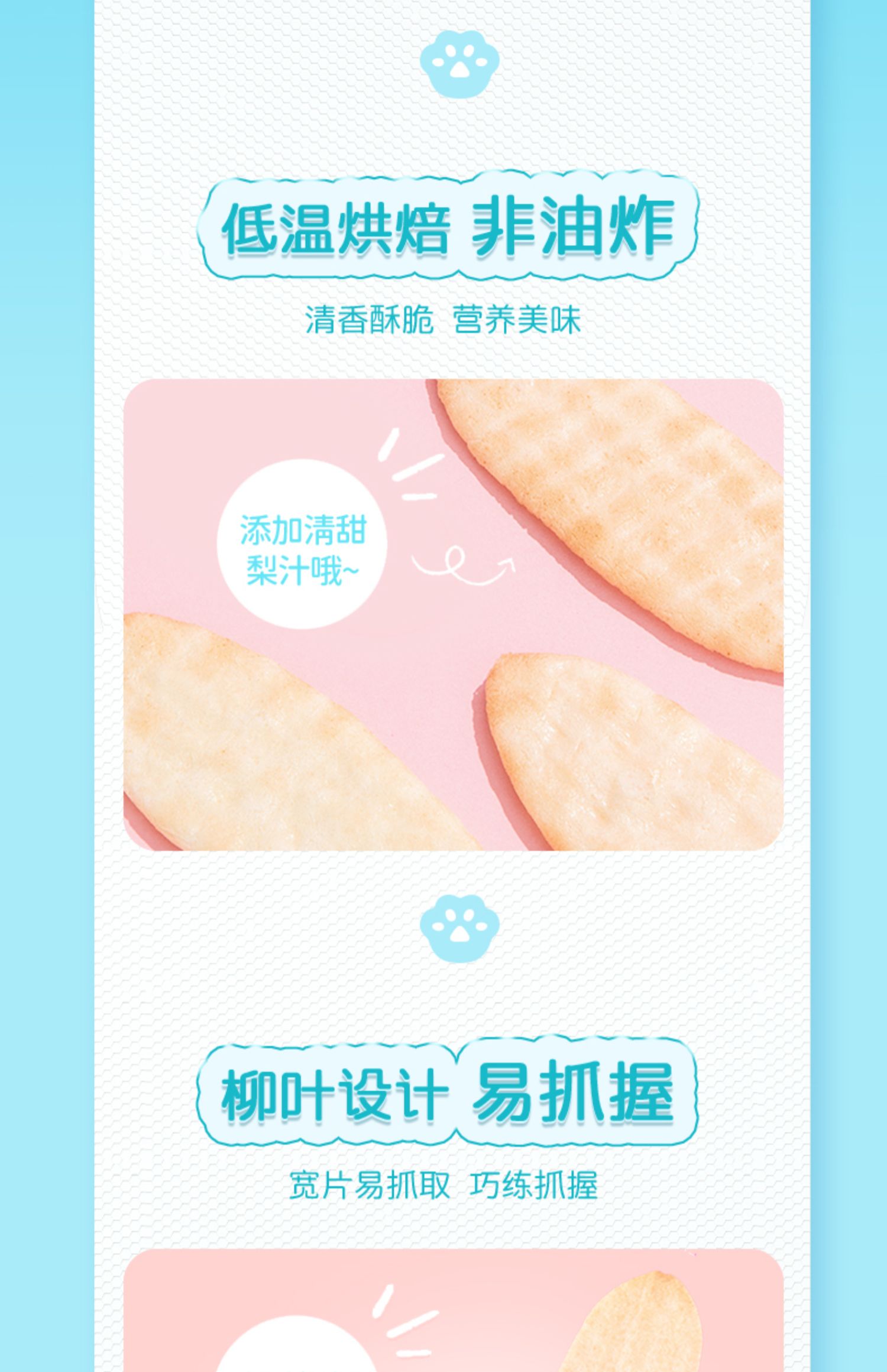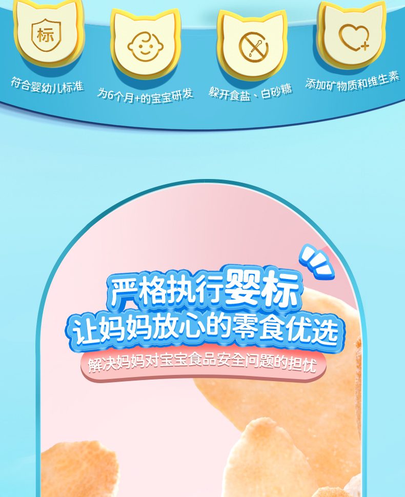 哆猫猫宝宝米饼,婴儿无添加白砂糖,婴幼儿辅食饼干,零食店磨牙6个月,严格执行婴标,让妈妈放心的零食优选,解决妈妈对宝宝食品安全问题的担忧。