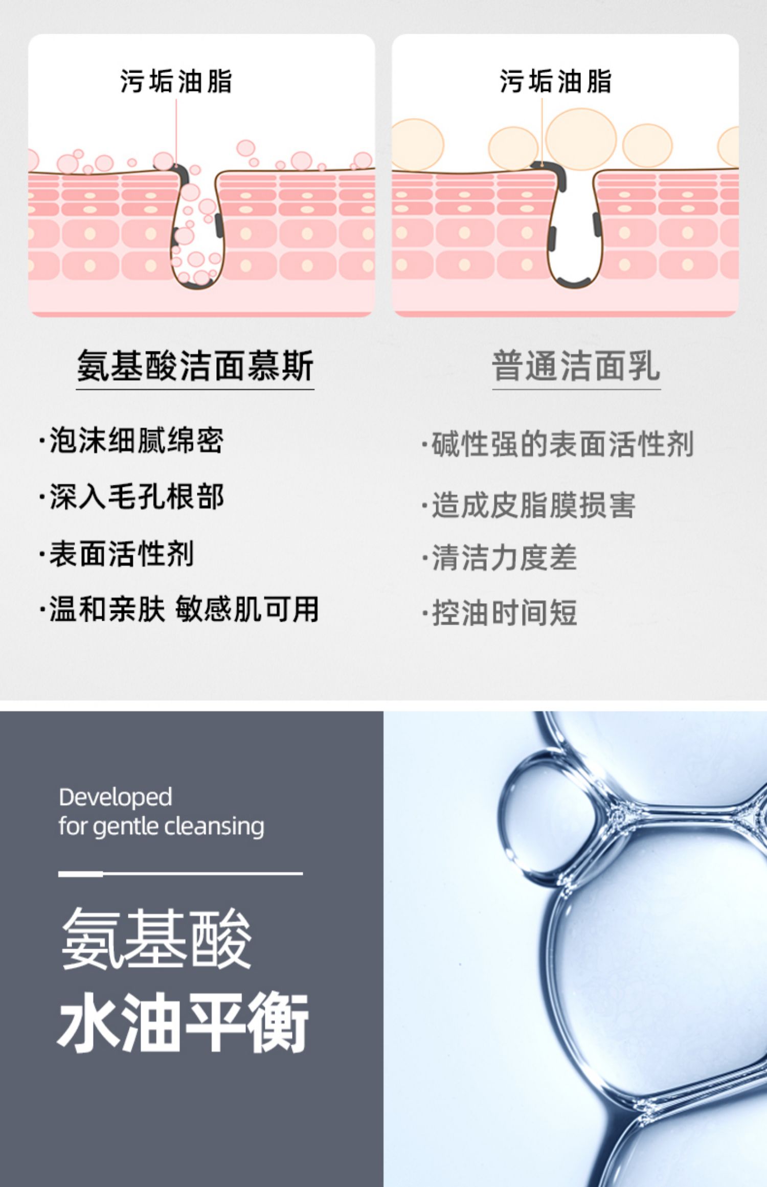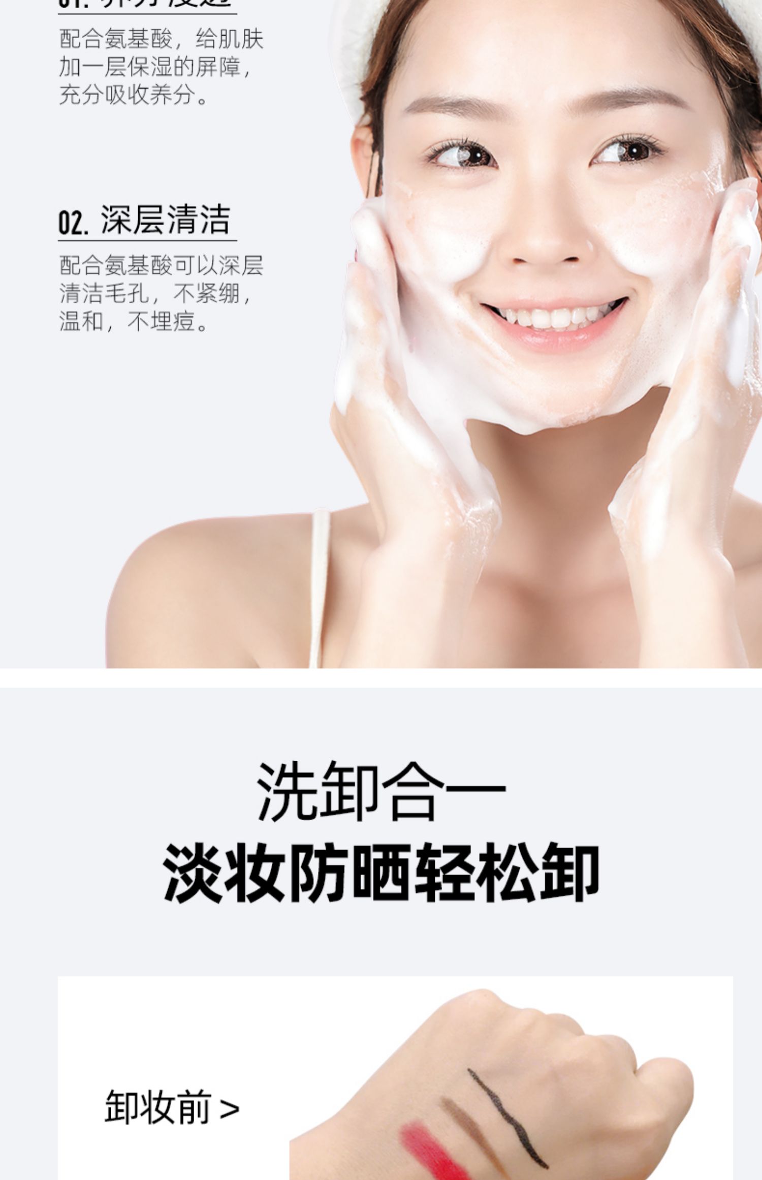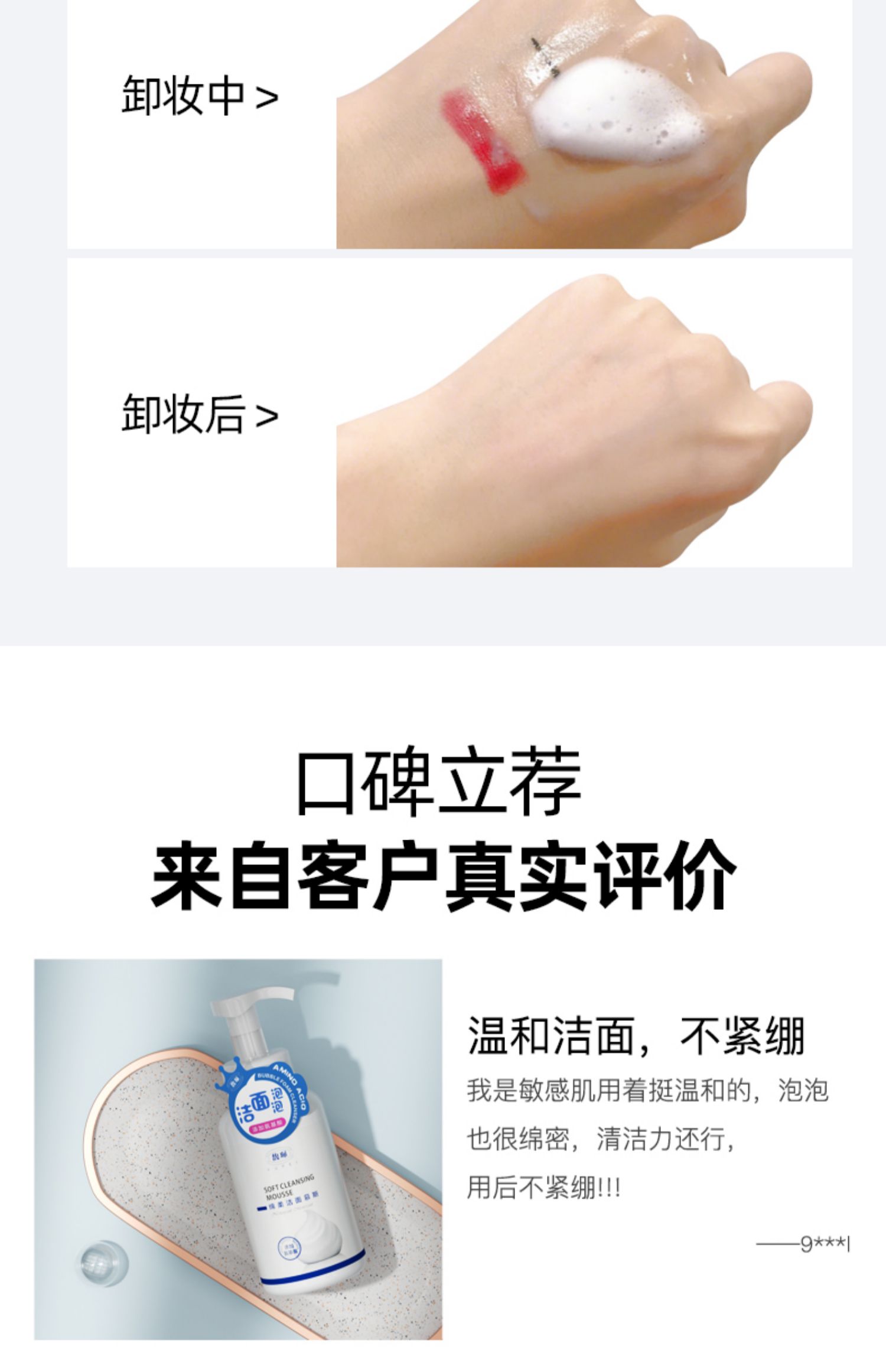 抖音热卖,氨基酸配方,泡沫细腻绵密,深入毛孔根部,温和亲肤不辣眼,不紧绷,敏感肌肤可用,1秒起泡,450ml超大容量,一瓶抵四瓶