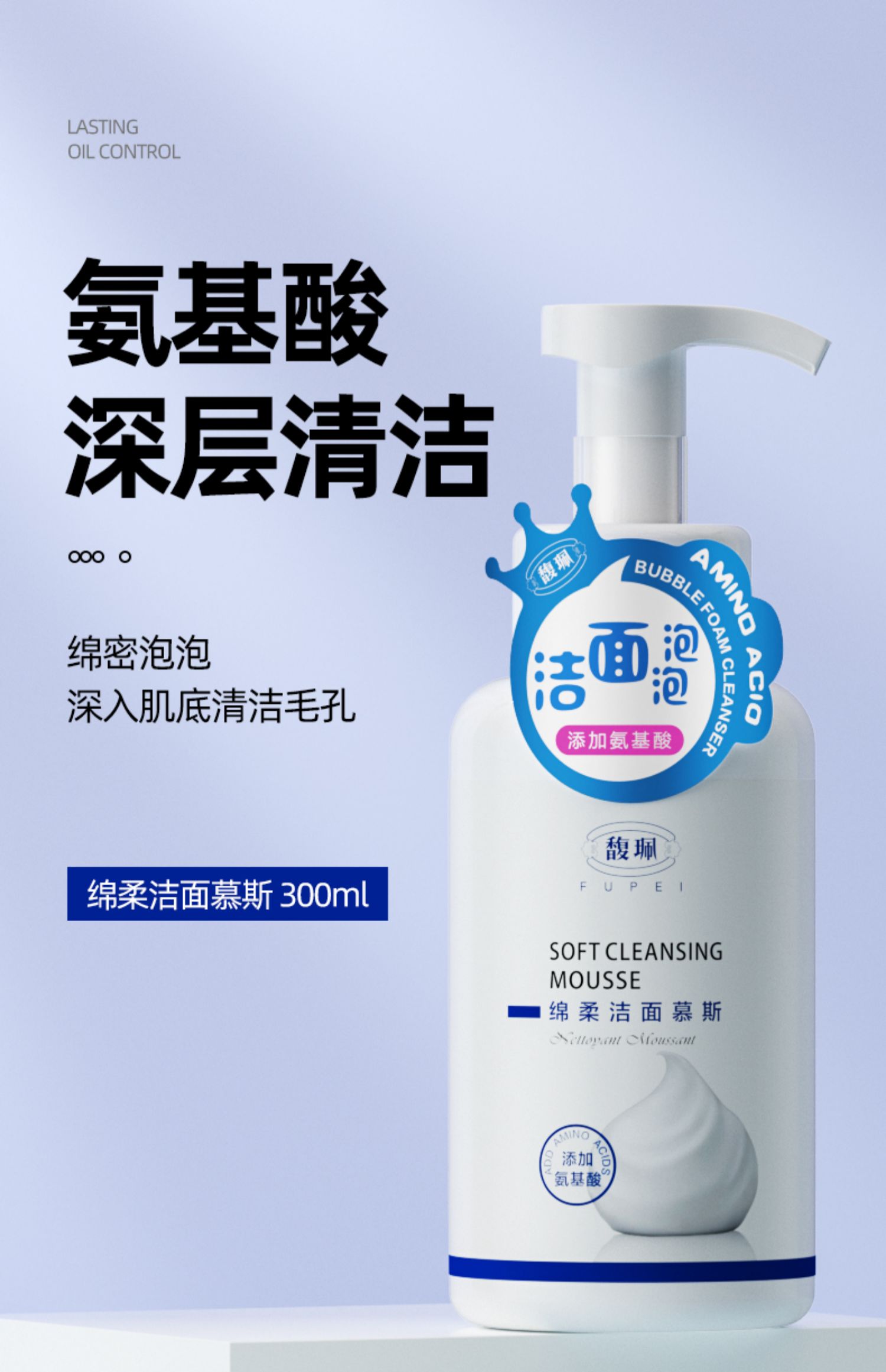 抖音馥佩大瓶慕斯氨基酸洗面奶深层清洁