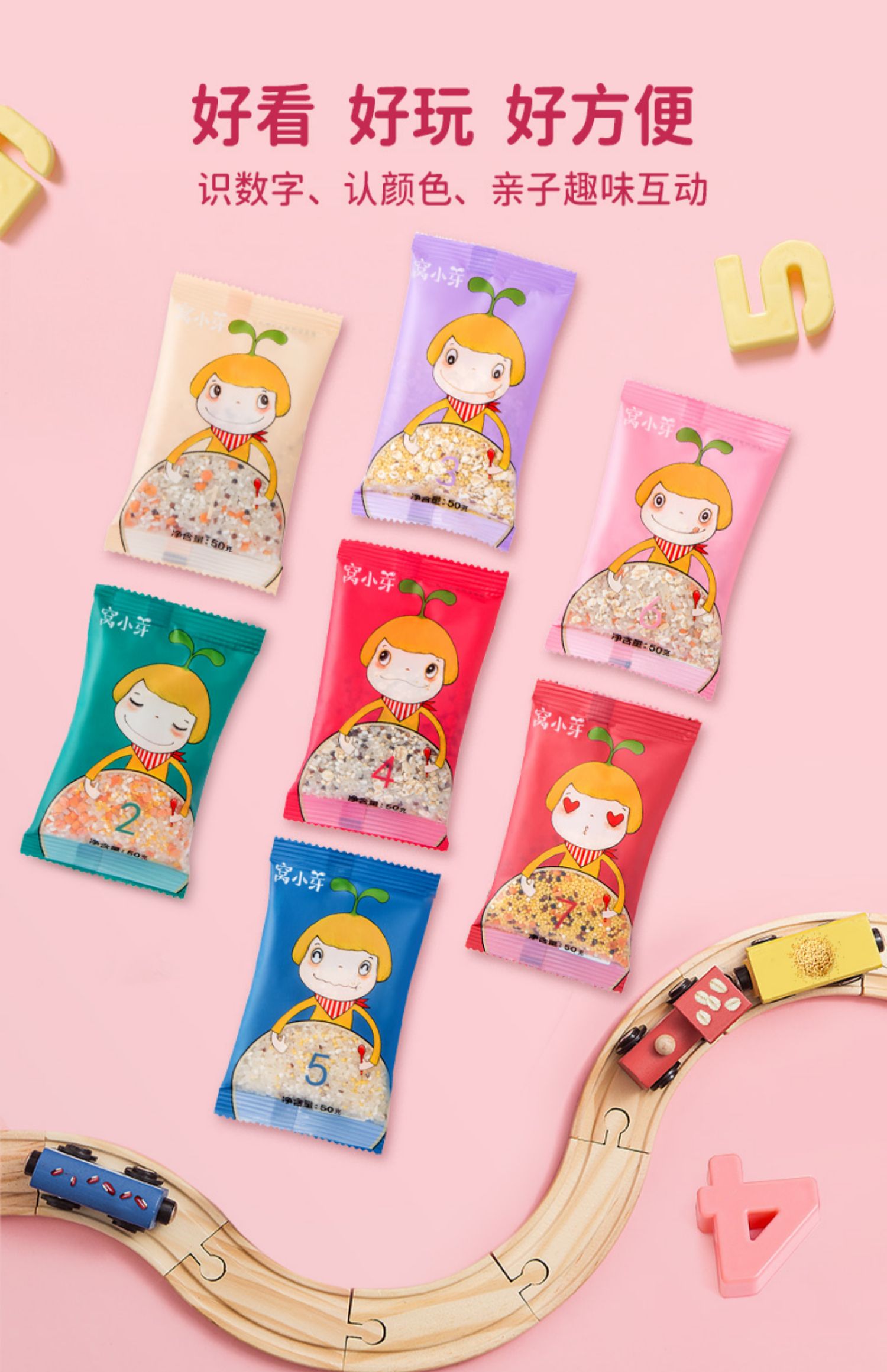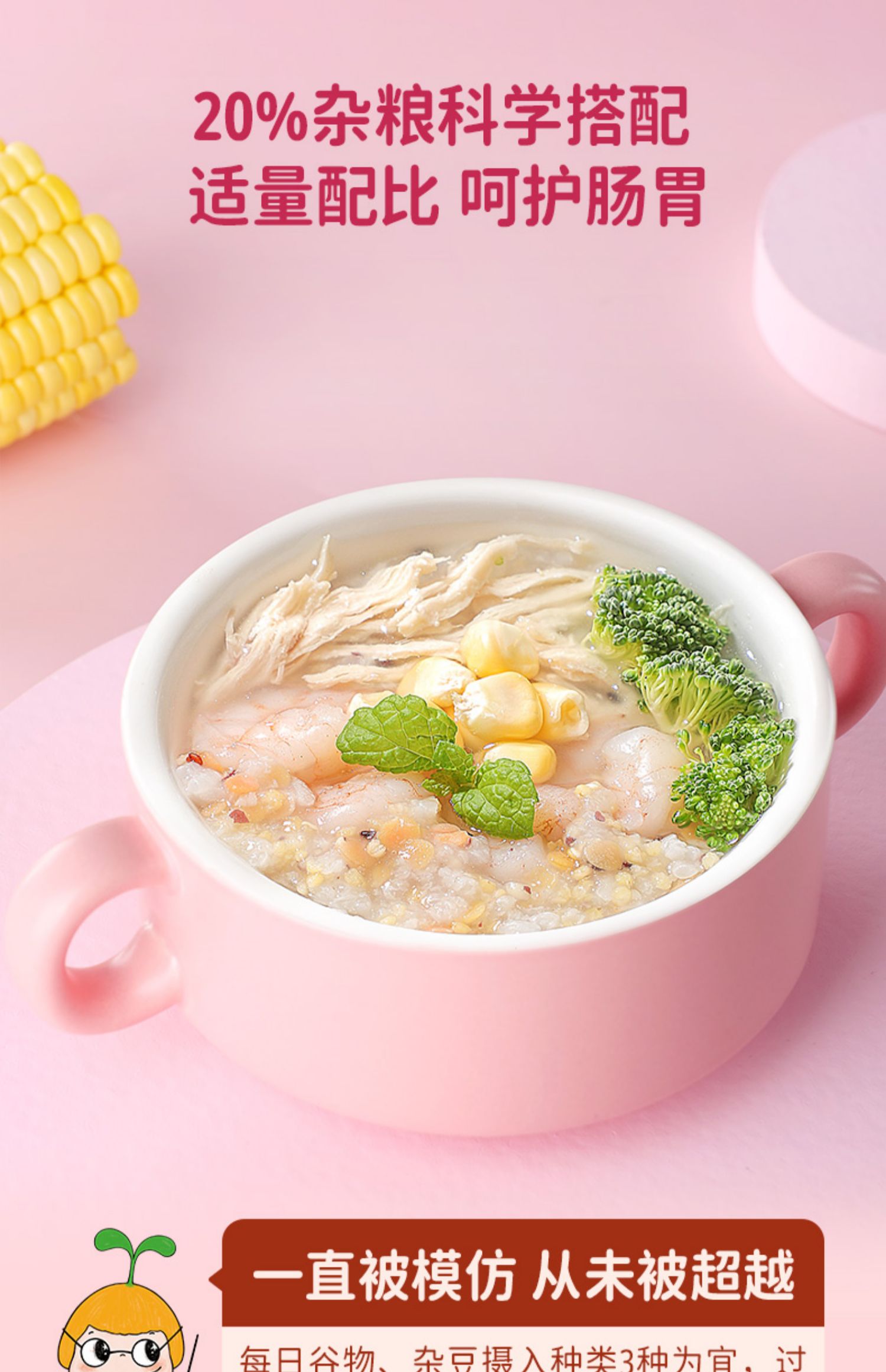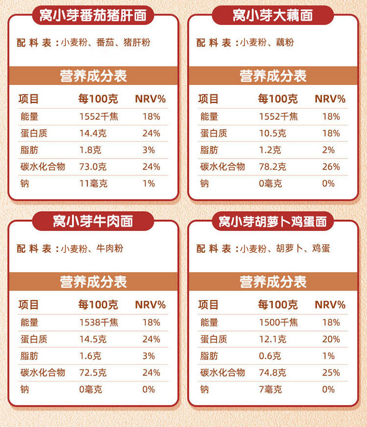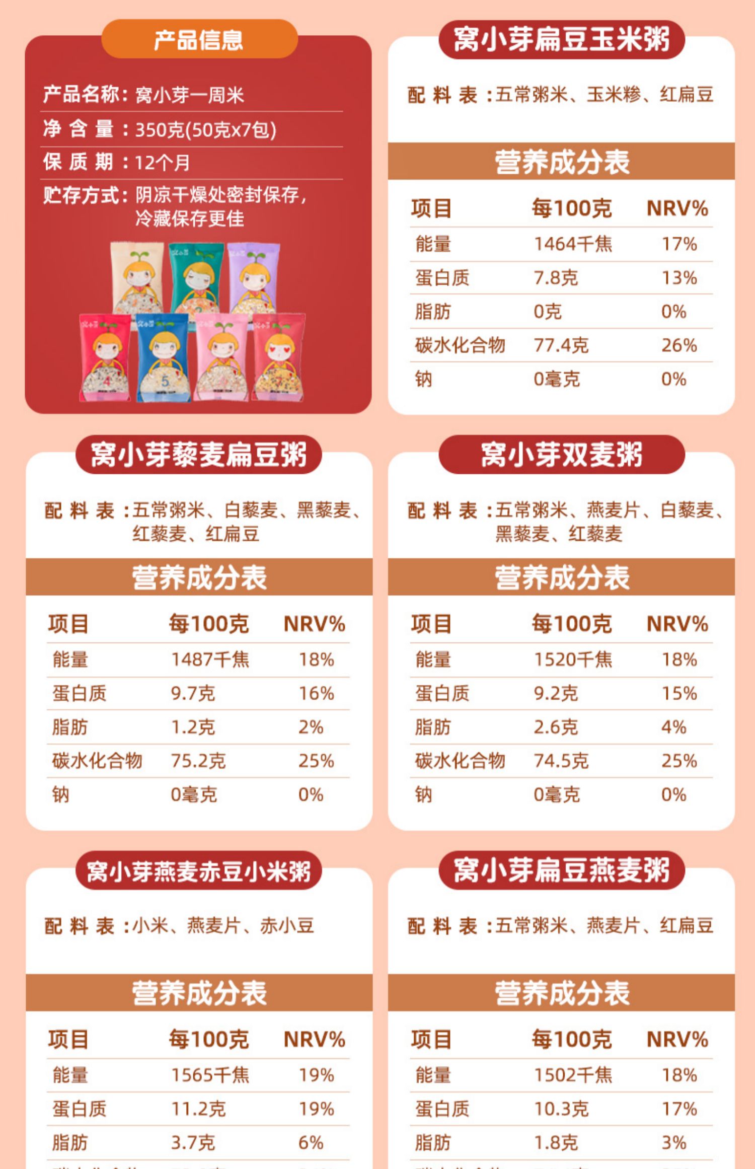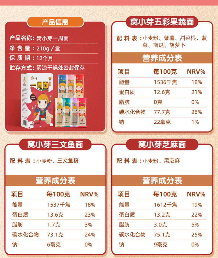【窝小芽】9种食材,7天不重样,科学配比,国际质检认证,9种谷物精华。20%杂粮添加,适量配比,呵护肠胃,补充人体所需蛋白质,豆米组合提高蛋白利用率。
