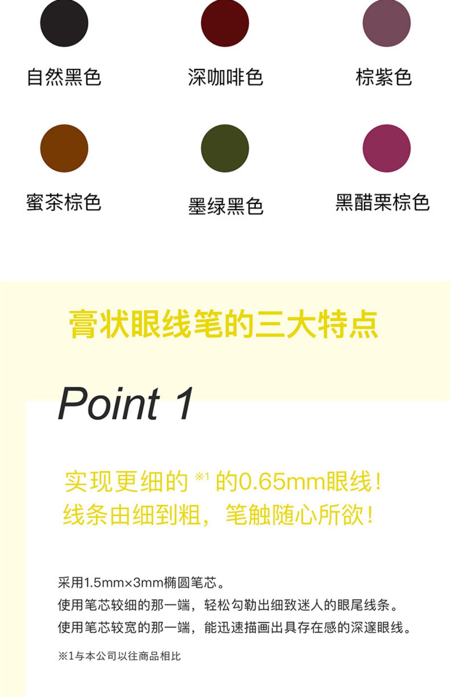 【送美妆蛋】一款全新形式的眼线笔,实现了更细的0.65mm眼线,线条由细到粗,笔触随心所欲.采取了Ruthpigment的笔芯,亲肤质地、手感顺滑。