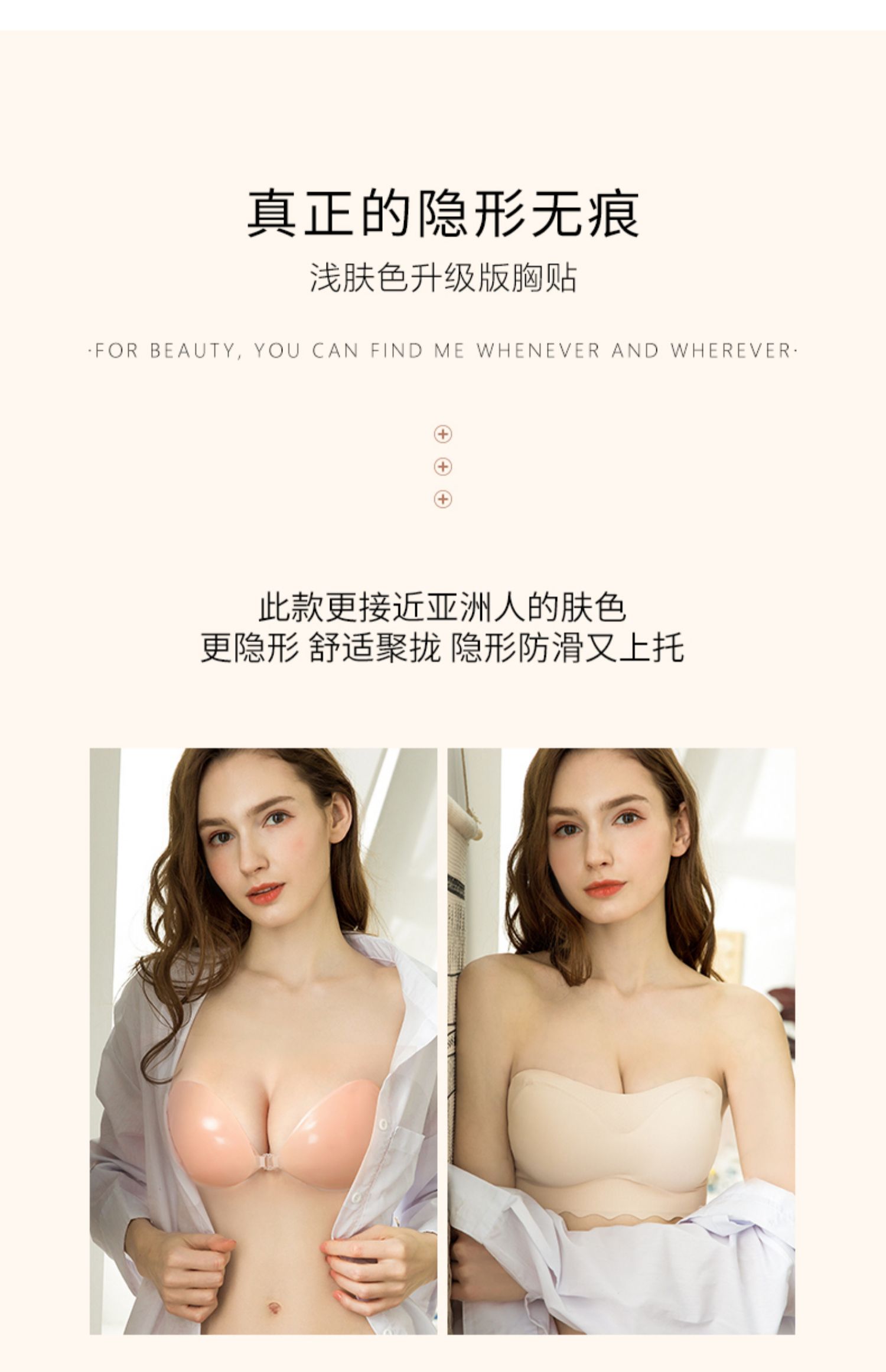 【买1送2对乳头贴】舒适聚拢,隐形防滑又上托,一拉就聚拢,轻松A变C,尽显好身材,浅肤色升级版,真正的隐形无痕!植物硅胶材质,柔软舒适,超亲肤,防水防汗不粘腻,长久佩戴不脱落,,轻松穿出深V性感!