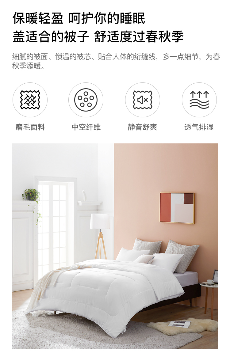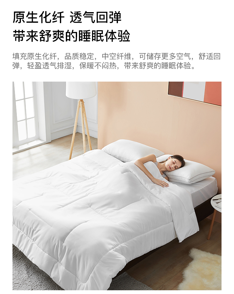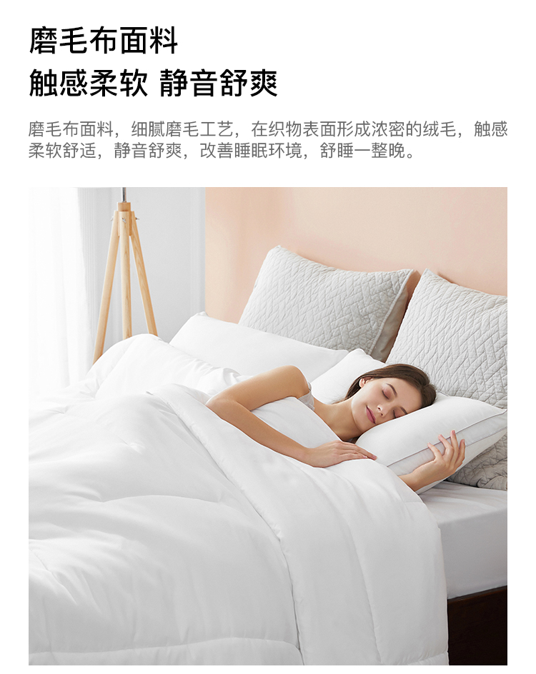 阿里自营~【淘宝心选】磨毛亲肤静音化纤被!磨毛布面料,触感柔软,细腻静音舒爽,轻盈保暖,透气排湿~原生化纤,品质稳定,中空纤维,回弹性好,保暖不闷热,带来舒爽的睡眠体验!