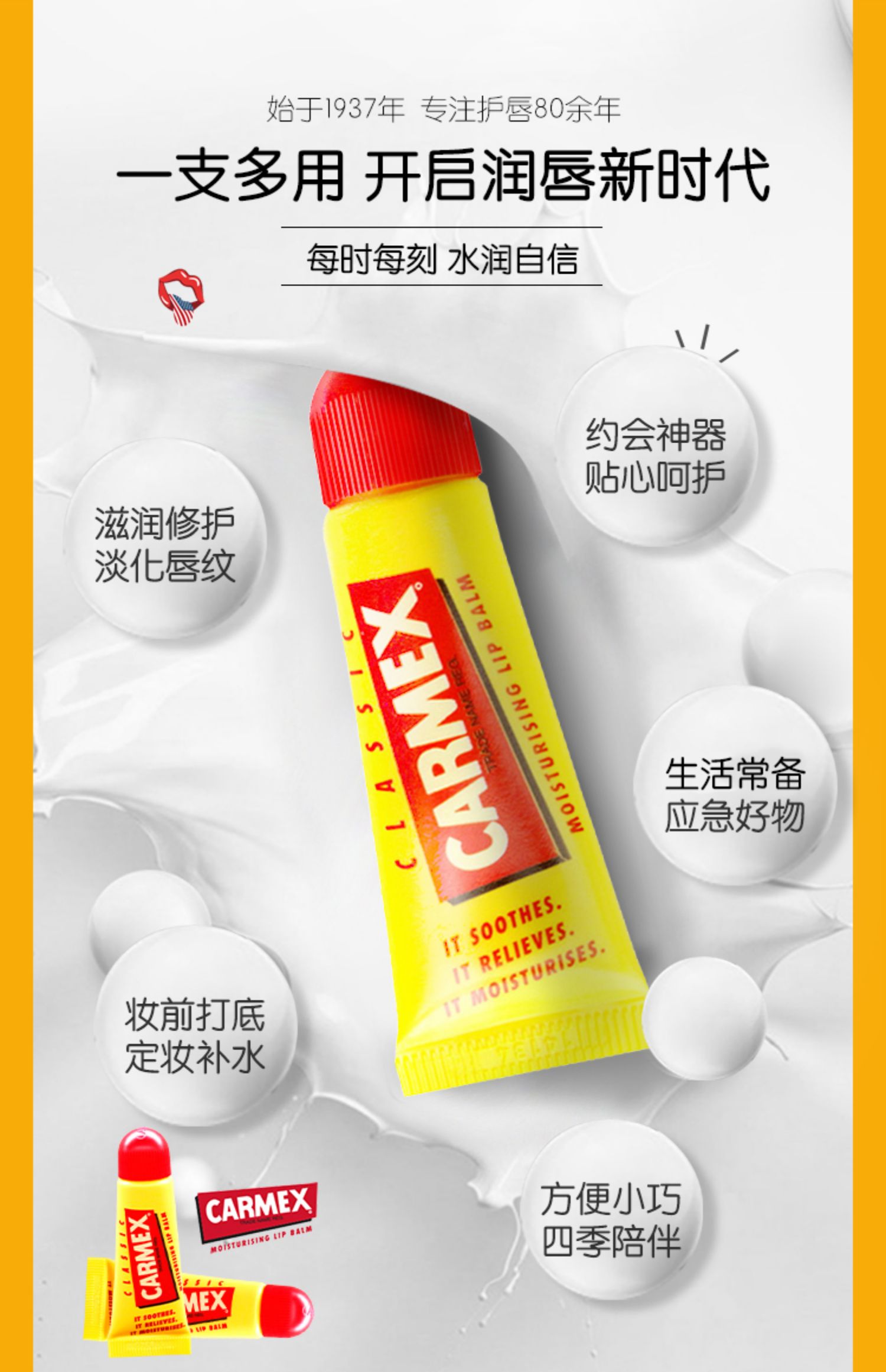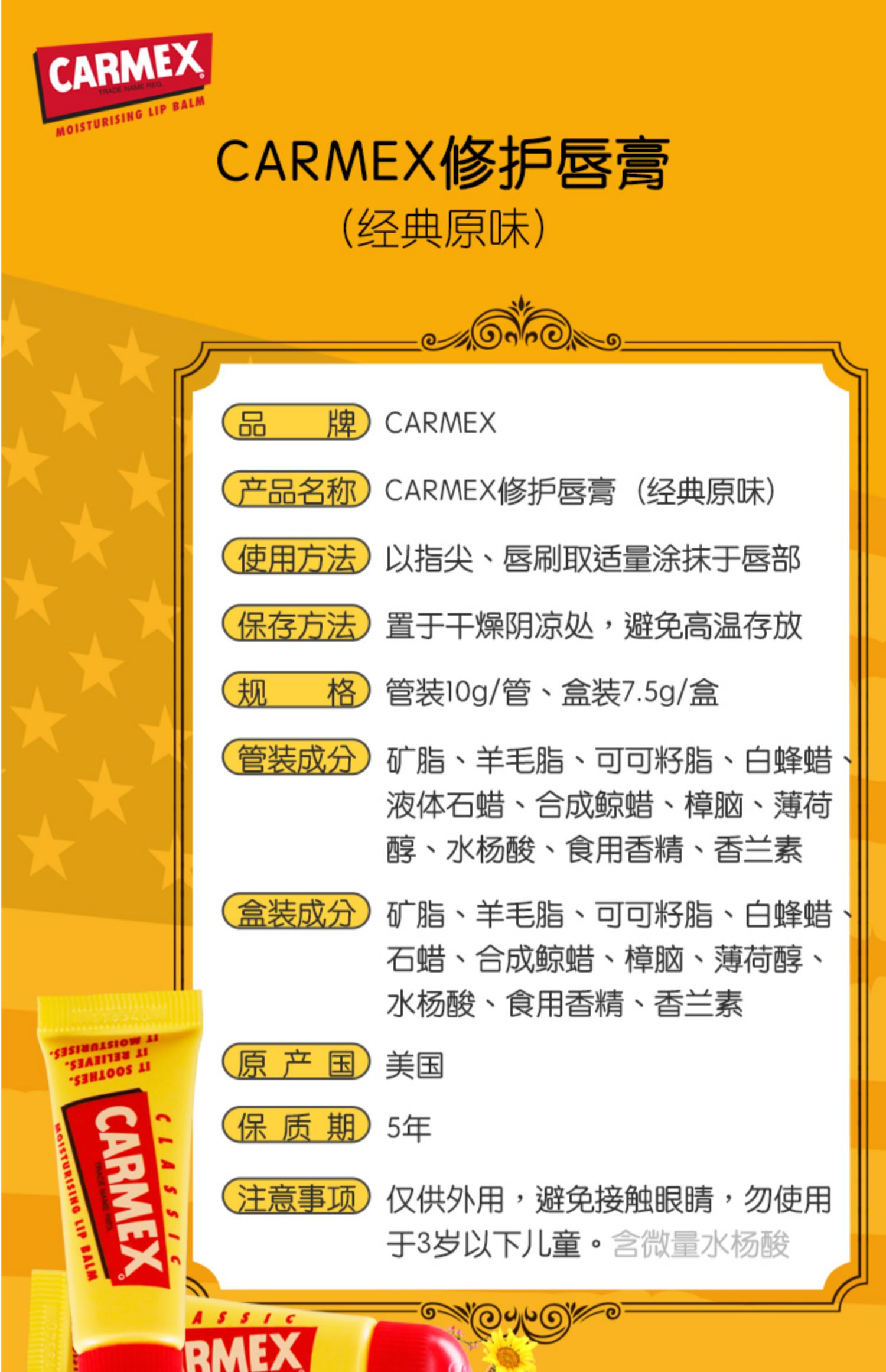 【李+7推荐】小蜜缇carmex美国唇膏,买两只合19一只,国内专柜正品,美国原产进口,保湿滋润补水去死皮淡化唇纹,滋润双唇,质量保证,唇膏打底