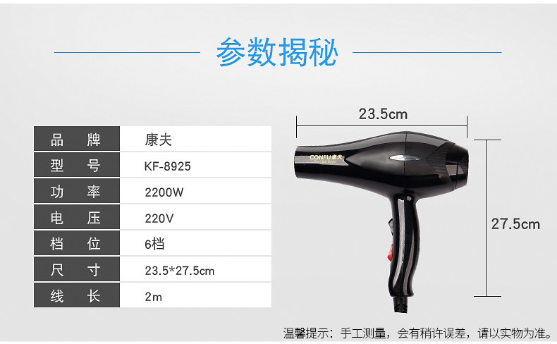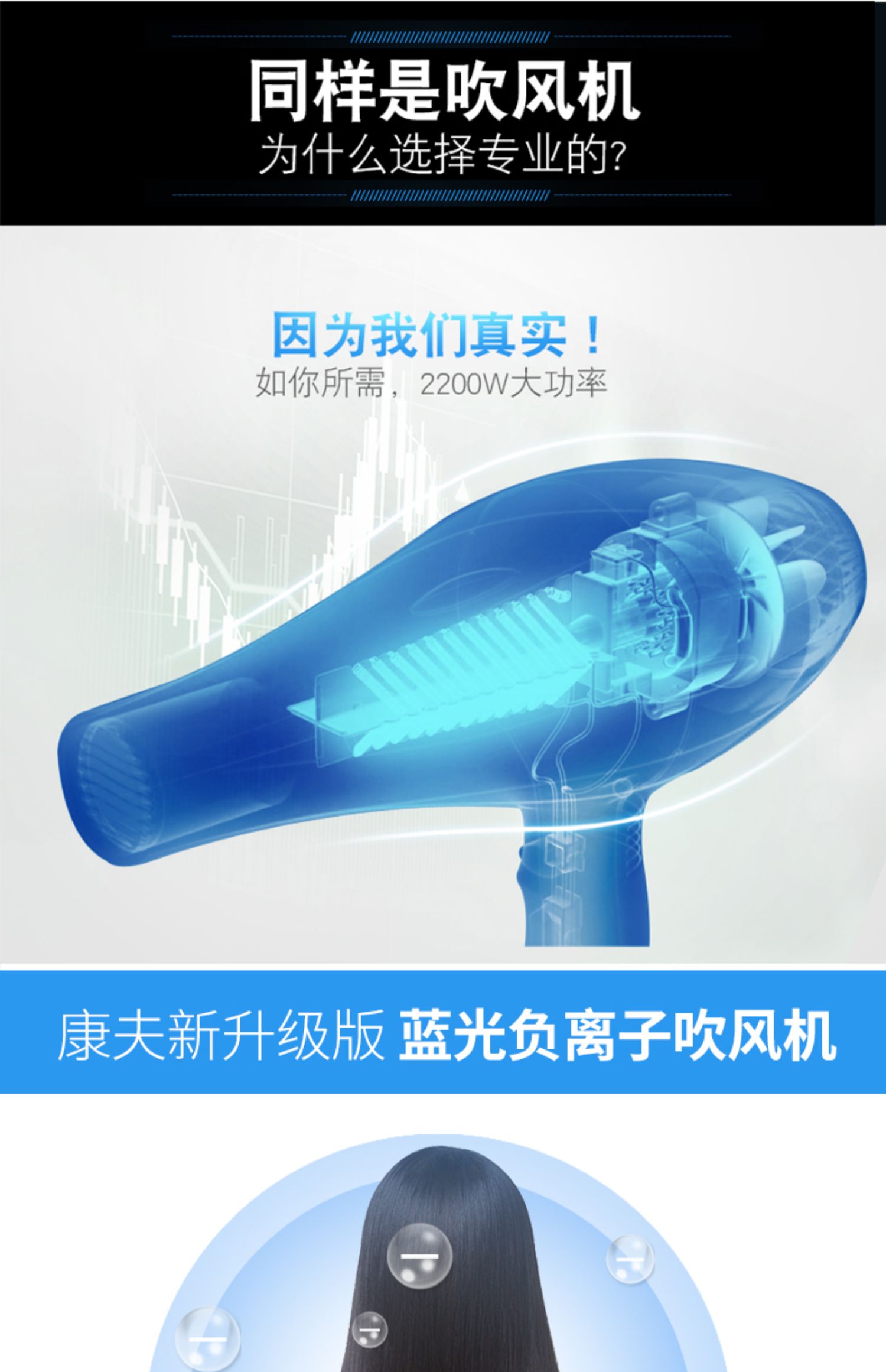 【康夫品牌】冷热风设计,恒温护发,持久耐用。飘香升级型负离子,除去静电,快速干发,发热更均匀,打造水润秀发。