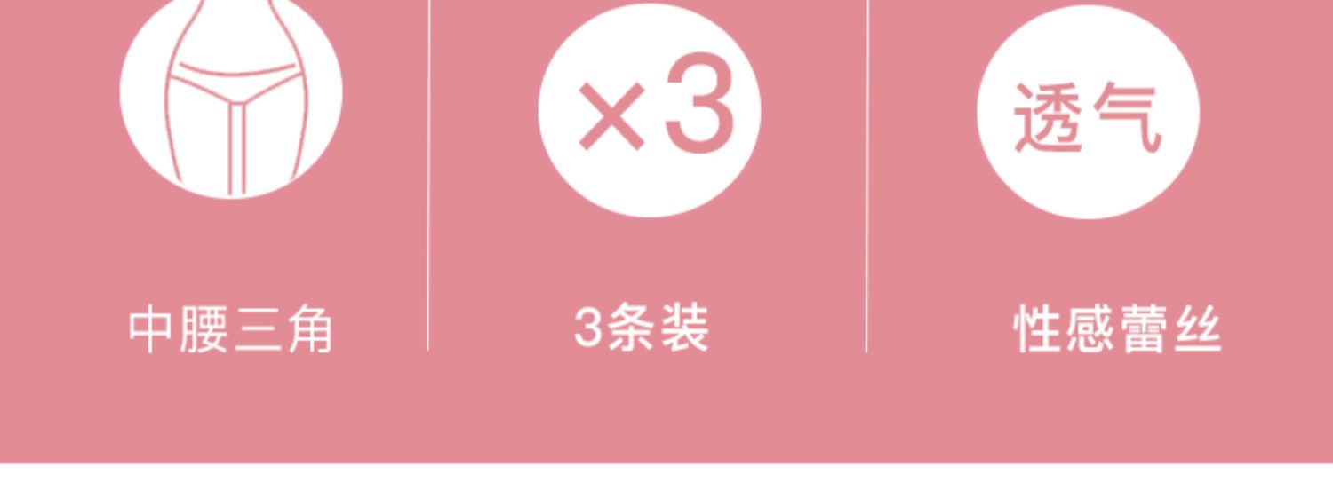 【双11活动当天券后价34.1】蕾丝三角裤3条装,透气轻薄,让肌肤与面料无感接触,贴合娇嫩细腻的肌肤,舒适性感纯棉底档,呼吸般的感受,时尚大气,女神必备!