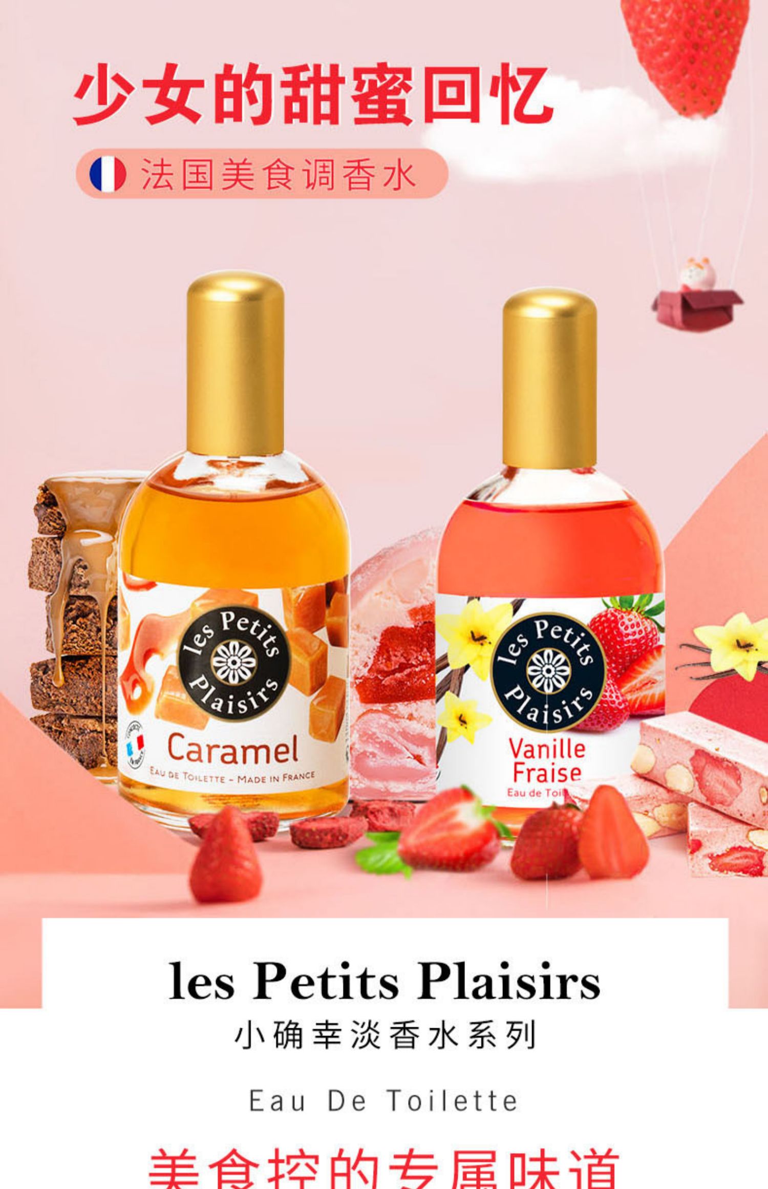 【满1件8折,满2件6折.凑津贴到手42.85】法国美食调香水,专业调香师调配,多种香味,每一种味道都很特别!因为比较小众,所以不用担心会撞香哦!甜美优雅的香味,可以持续一整天,小巧精致,派对必备~
