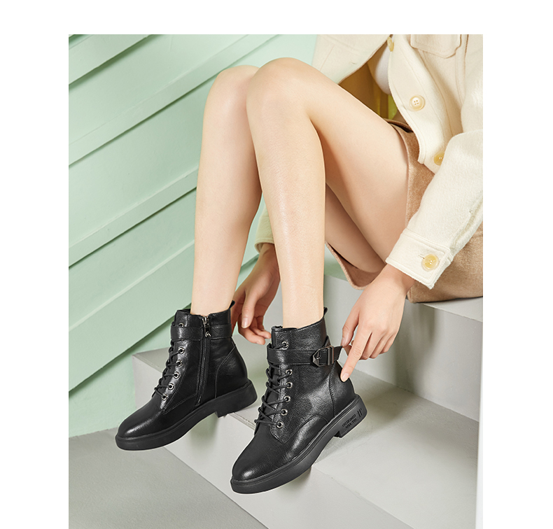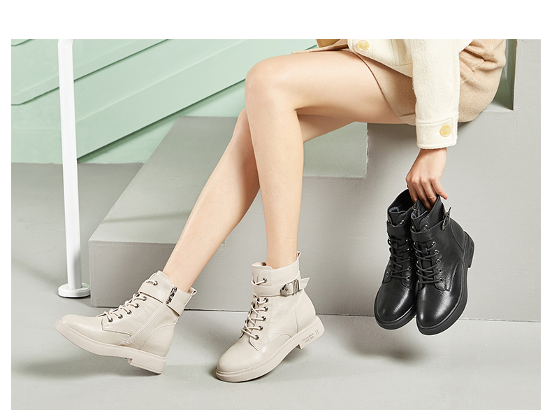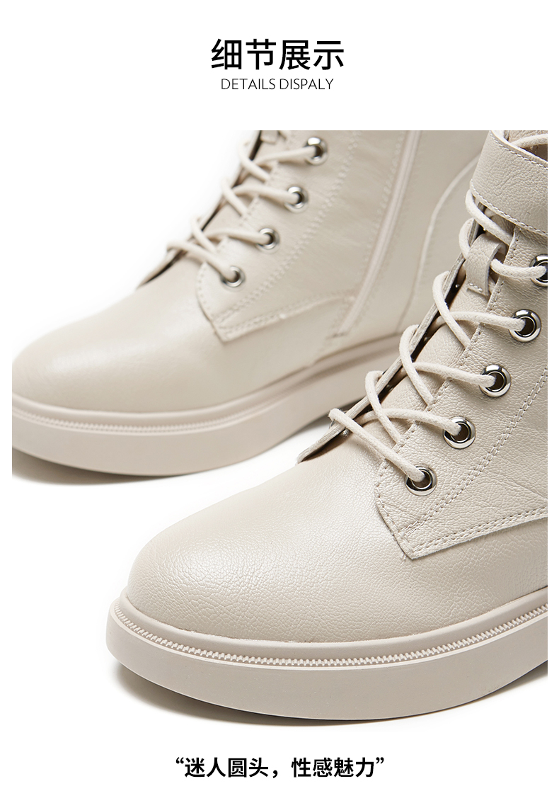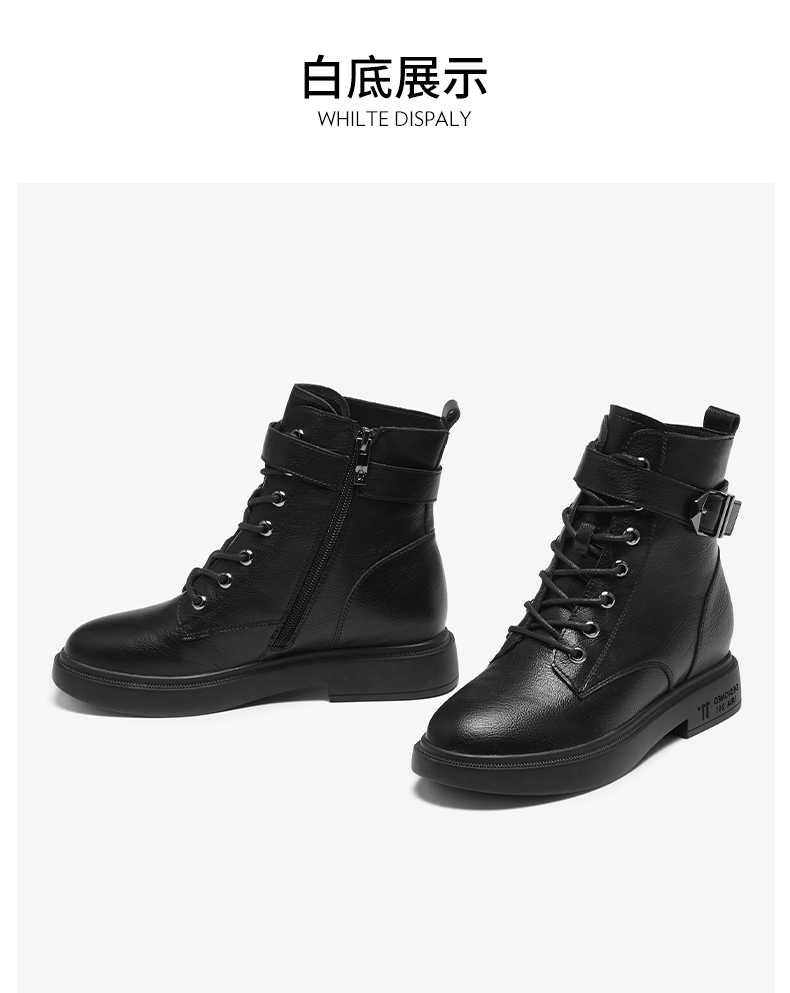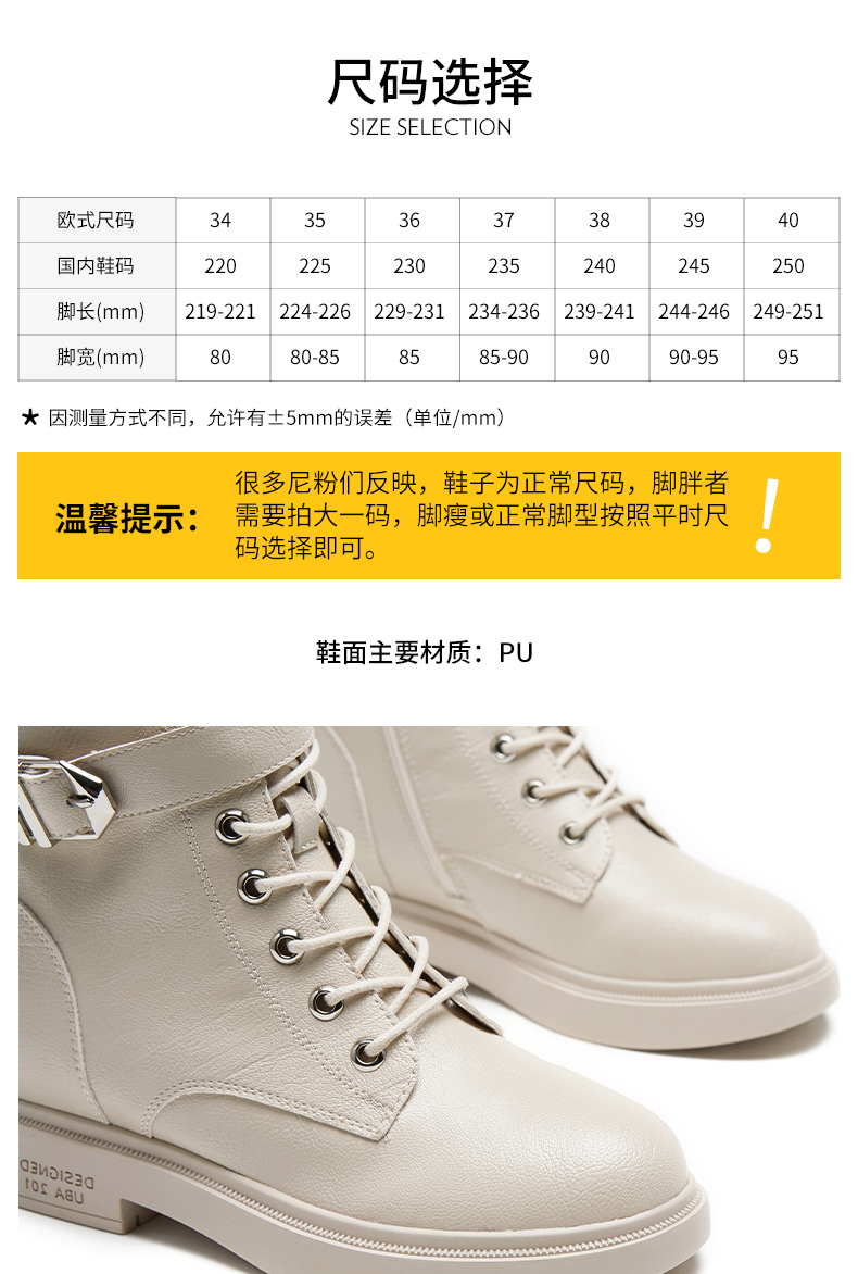 皮鞋面细腻柔软,系带设计,解锁多种穿系方式:锯齿状橡胶发泡底,鞋底轻、款式时尚酷飒,轻松秒变漫画大长腿。