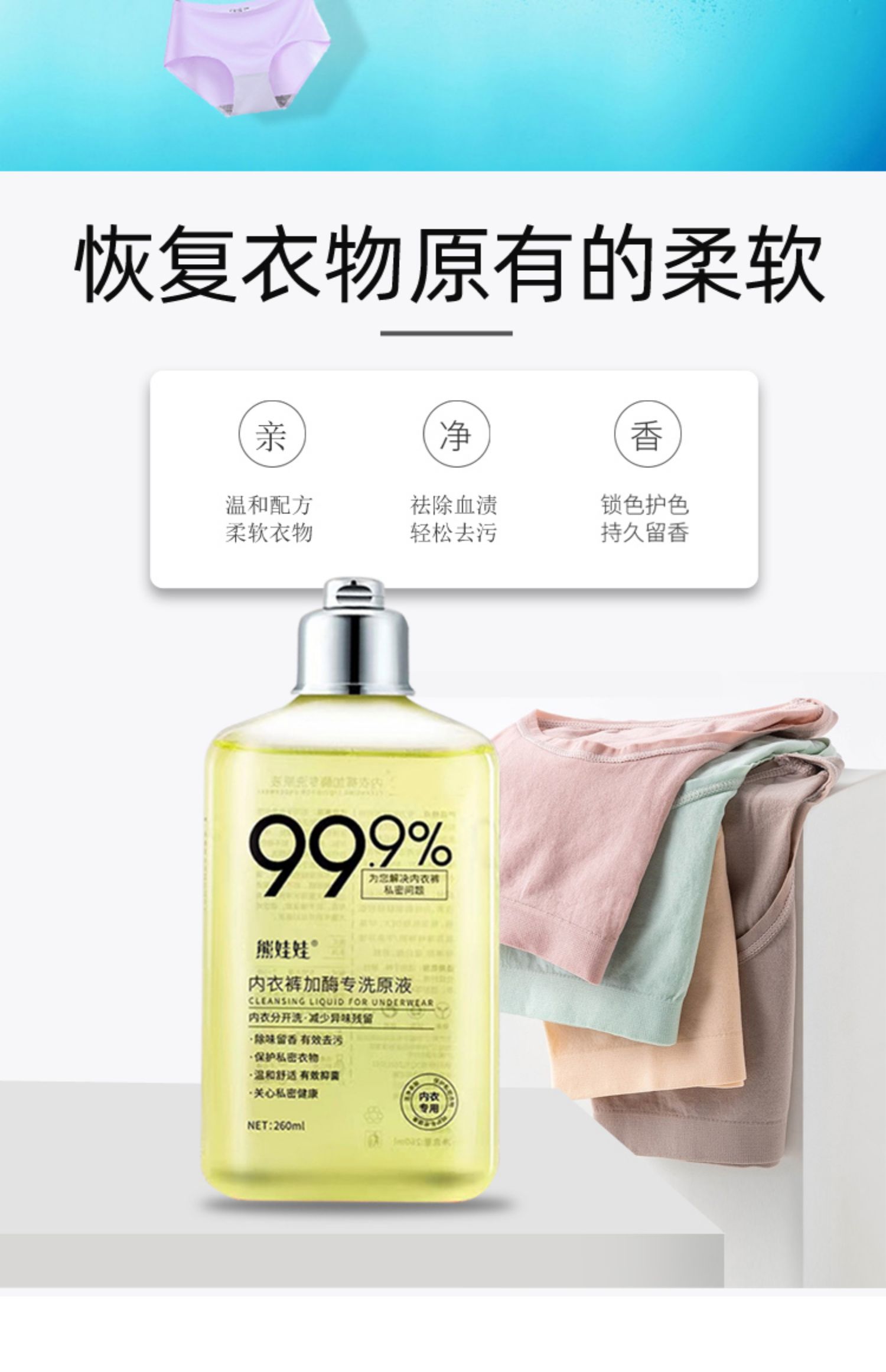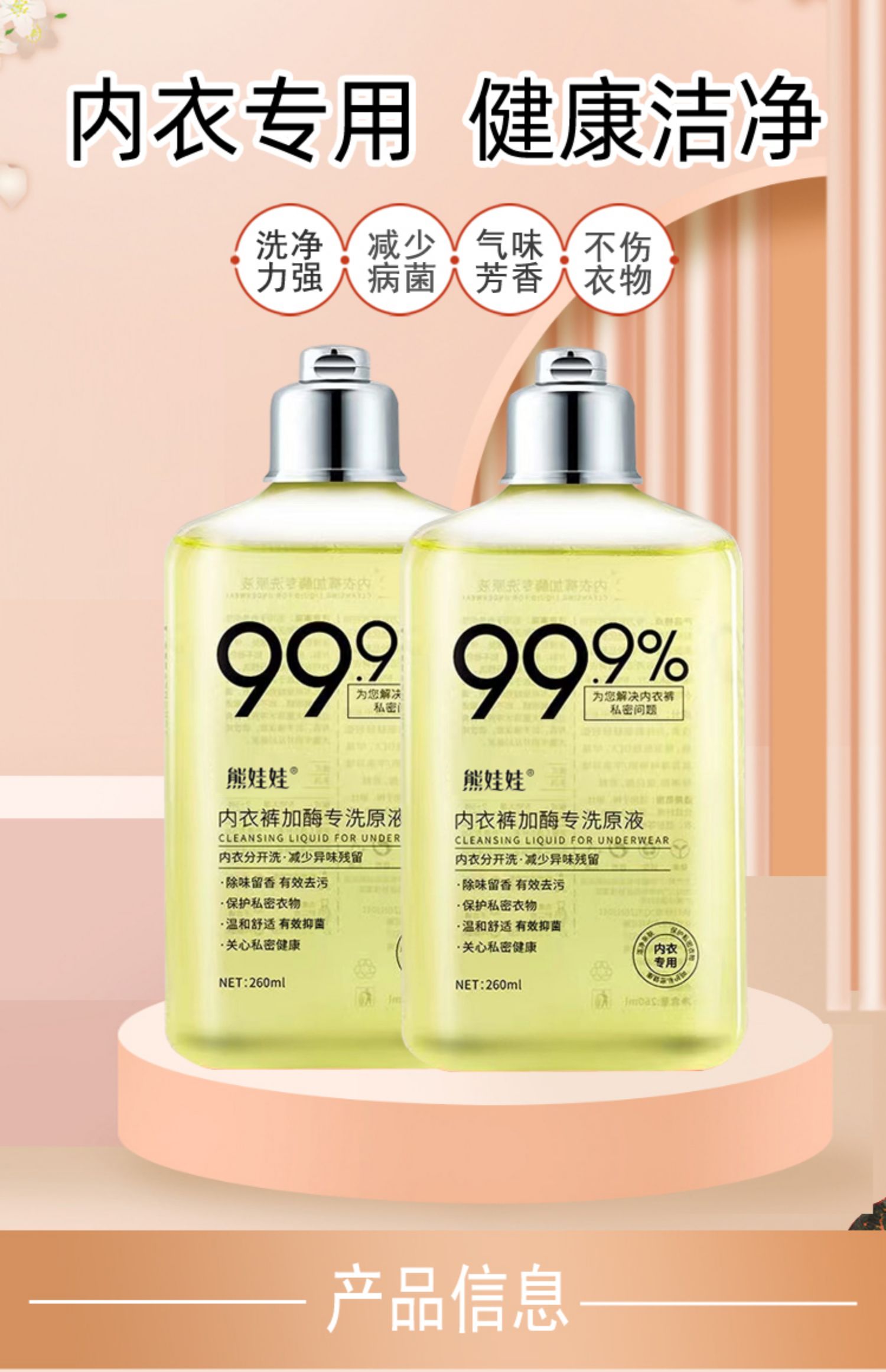 【熊娃娃】专业内衣裤洗涤剂,日本原料进口配方,天然植物除菌,轻松去除血渍污渍,温和不伤手,不含荧光剂,去黄去硬,洗后柔软舒适。