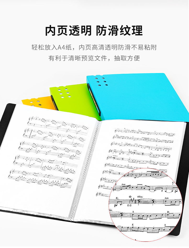 【广博】A4文件夹,资料收集收纳册60页,透明乐谱夹子,多功能分页,多层插页夹,钢琴谱收藏夹,立体背条文件作品集画册图纸