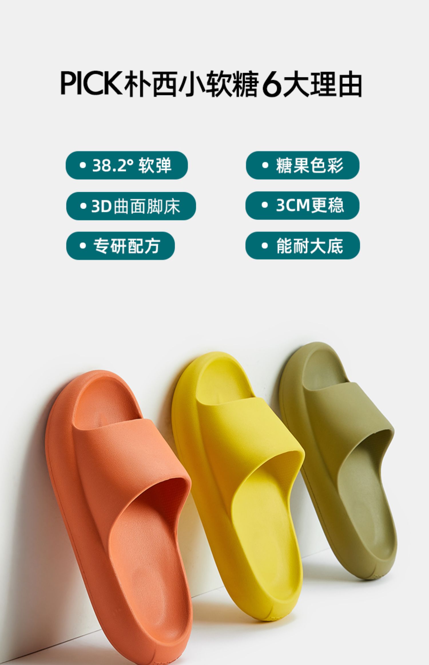 自研配方38.2°黄金比例,软度刚好持久舒适【朴西旗舰店】朴西夏季小软糖凉拖鞋,3cm加厚鞋跟,3D曲面脚床,多色多尺码可选,踩水不怕滑,EVA材质,色彩活力满满~~【赠运费险】
