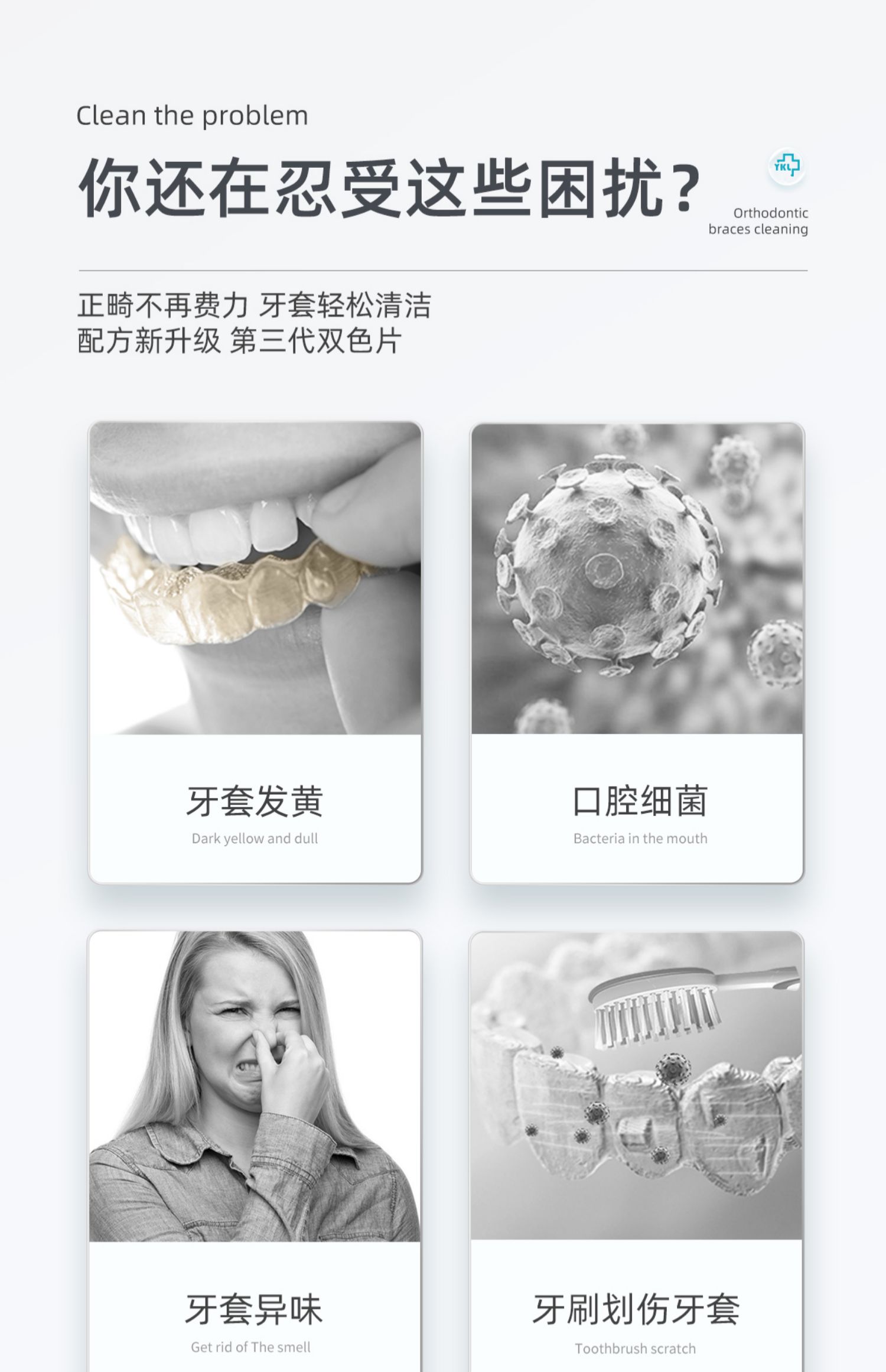 洗假牙清洁剂,水液泡腾片清洗消毒杀菌。深层清洁,清新口气,植物萃取用的放心。