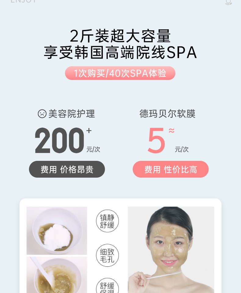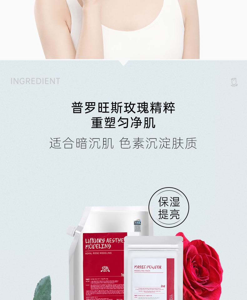 韩国美容院SPA专用面膜1kg超值装可用40次+!采用普罗旺斯玫瑰花,击退黑色素,肌肤白里通红!重塑匀净肌,保湿提亮