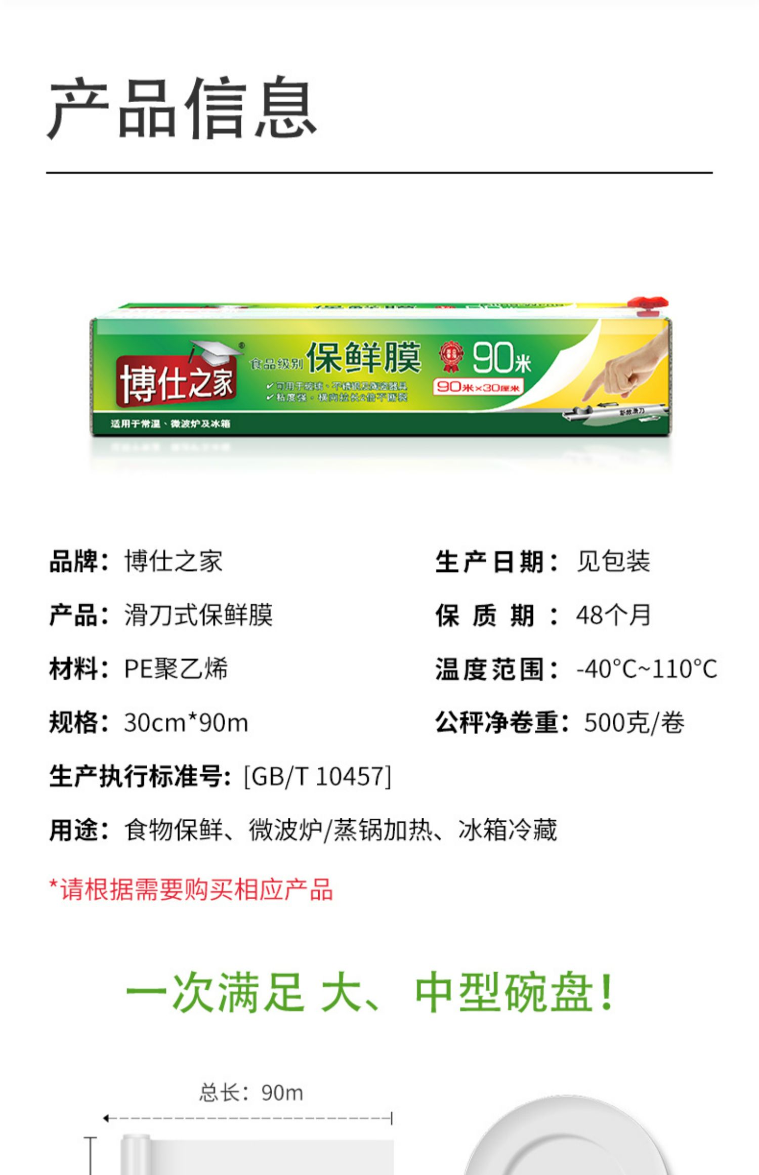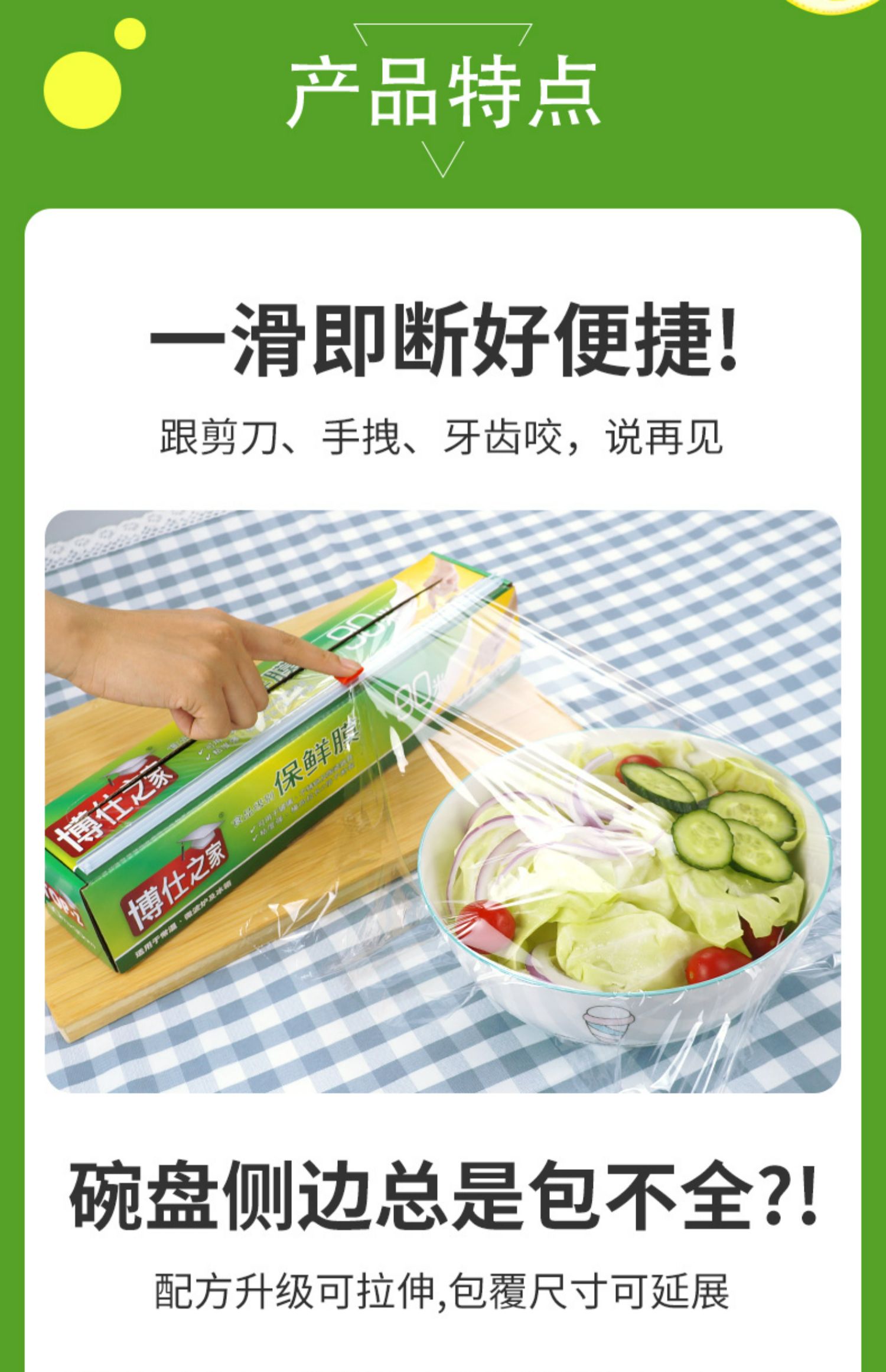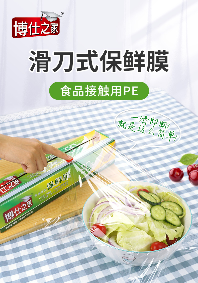 抢【历史!!低价】【博仕之家】进口食品级PE材质,滑刀式切割盒,一划即断,免手撕,使用方便,安全健康!耐高温110度,耐冷-40度,冰箱微波炉都可以使用,保鲜保湿更持久,多规格组合,居家必备!