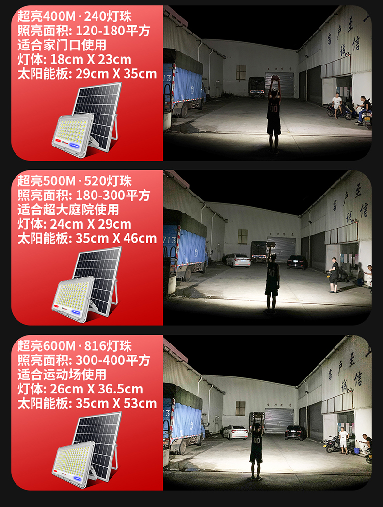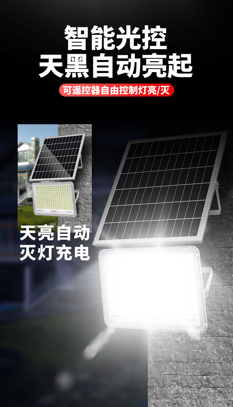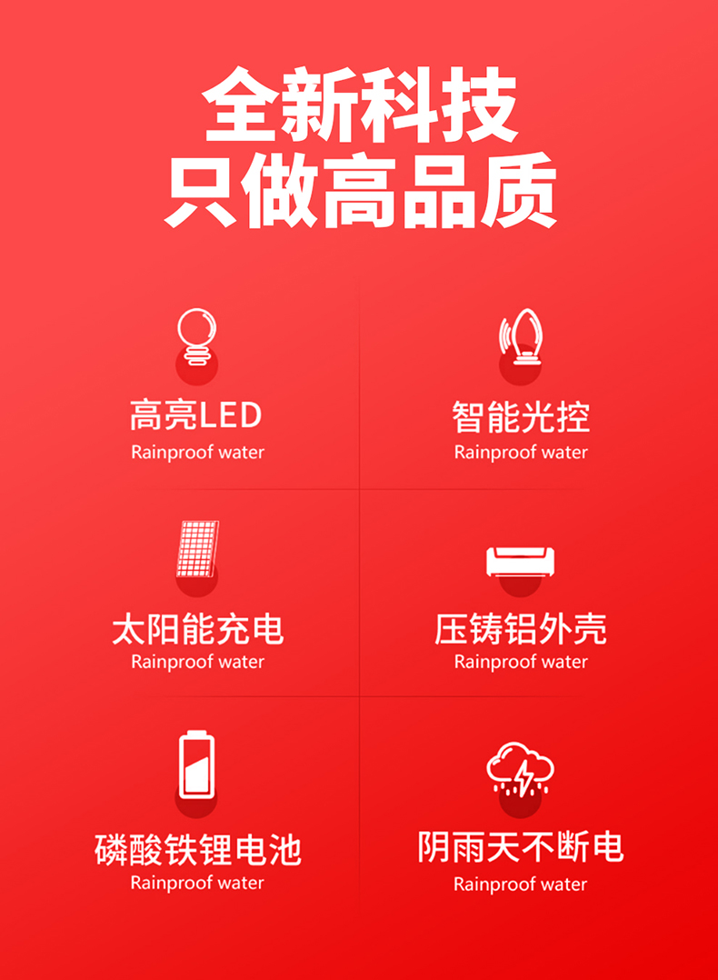 采用超亮进口大灯珠,进口芯片,发光稳定,高亮度,阴雨天照常亮,有光即可充电,高效转化,不断升级,高度防水,0电费黑夜白天自动开关,爆亮太阳能灯。【赠运费险】