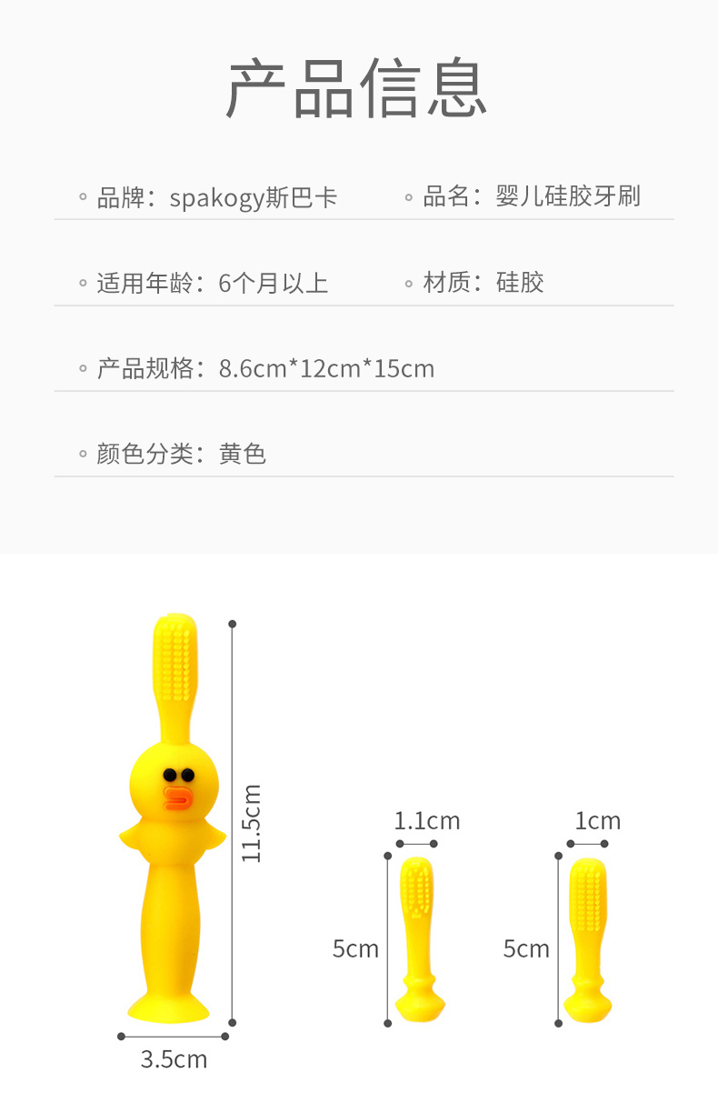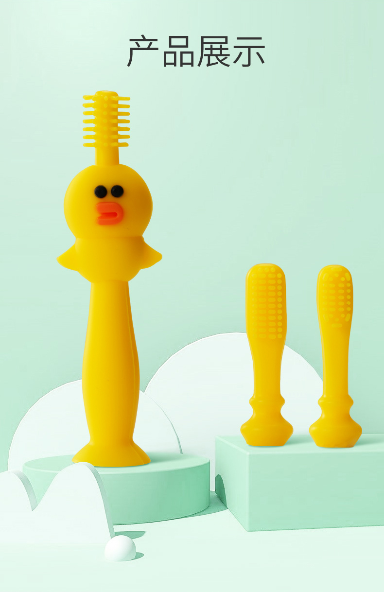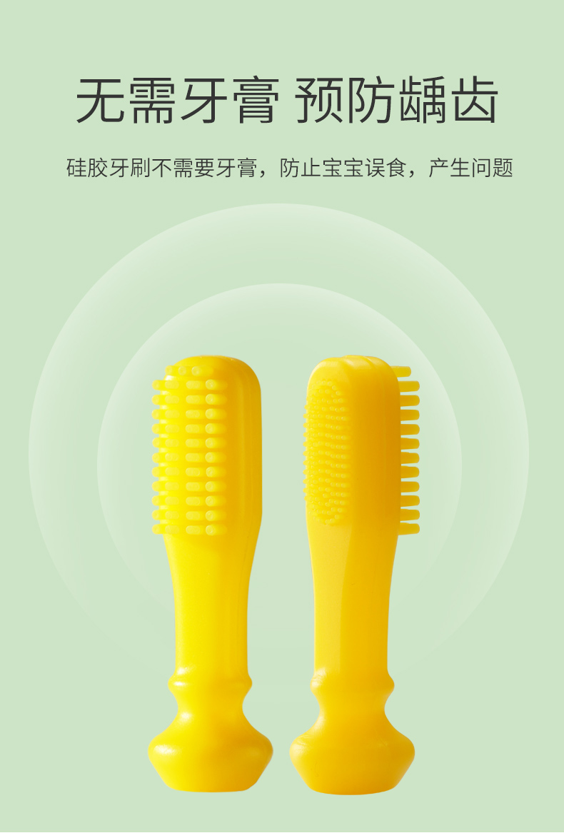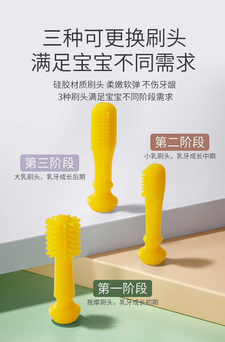 spakogy婴幼儿硅胶牙刷宝宝0-1-2-3岁。食品级硅胶柔嫩不伤口腔训练刷三头可换。