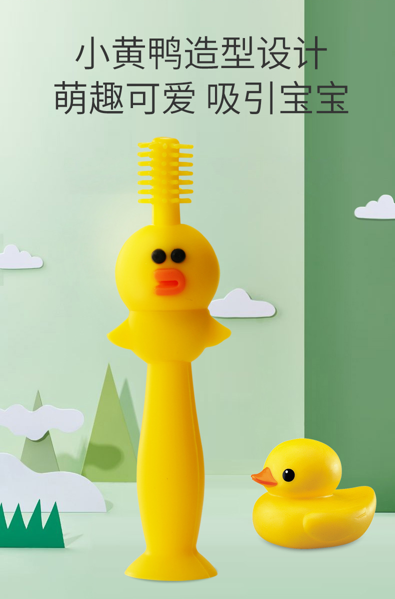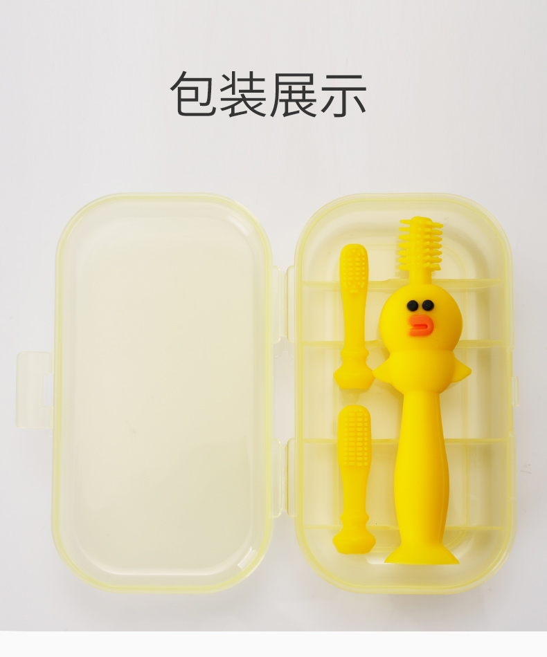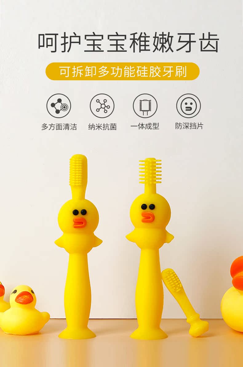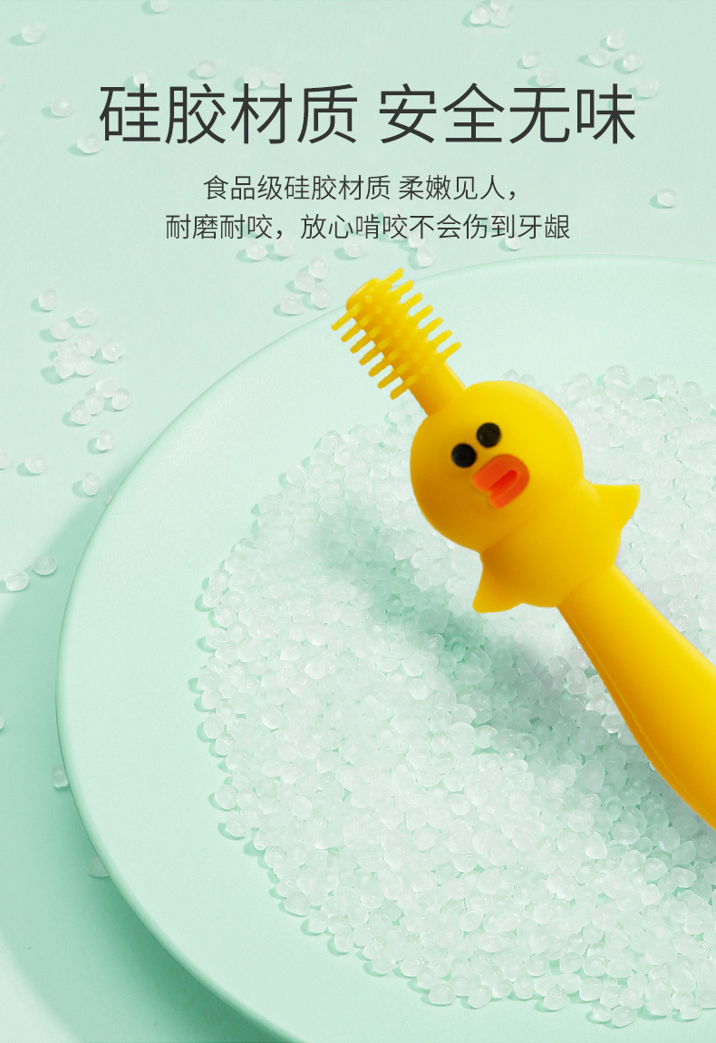 spakogy婴幼儿硅胶牙刷宝宝0-1-2-3岁。食品级硅胶柔嫩不伤口腔训练刷三头可换。