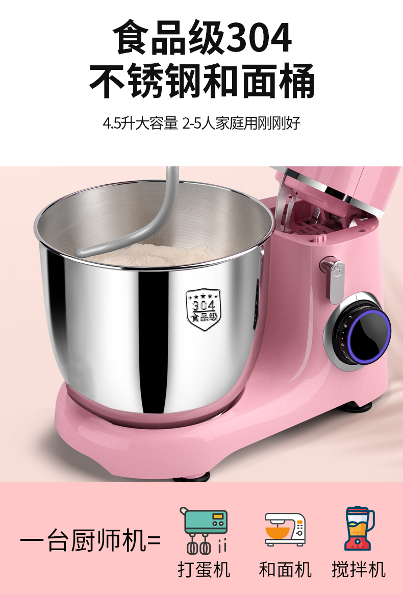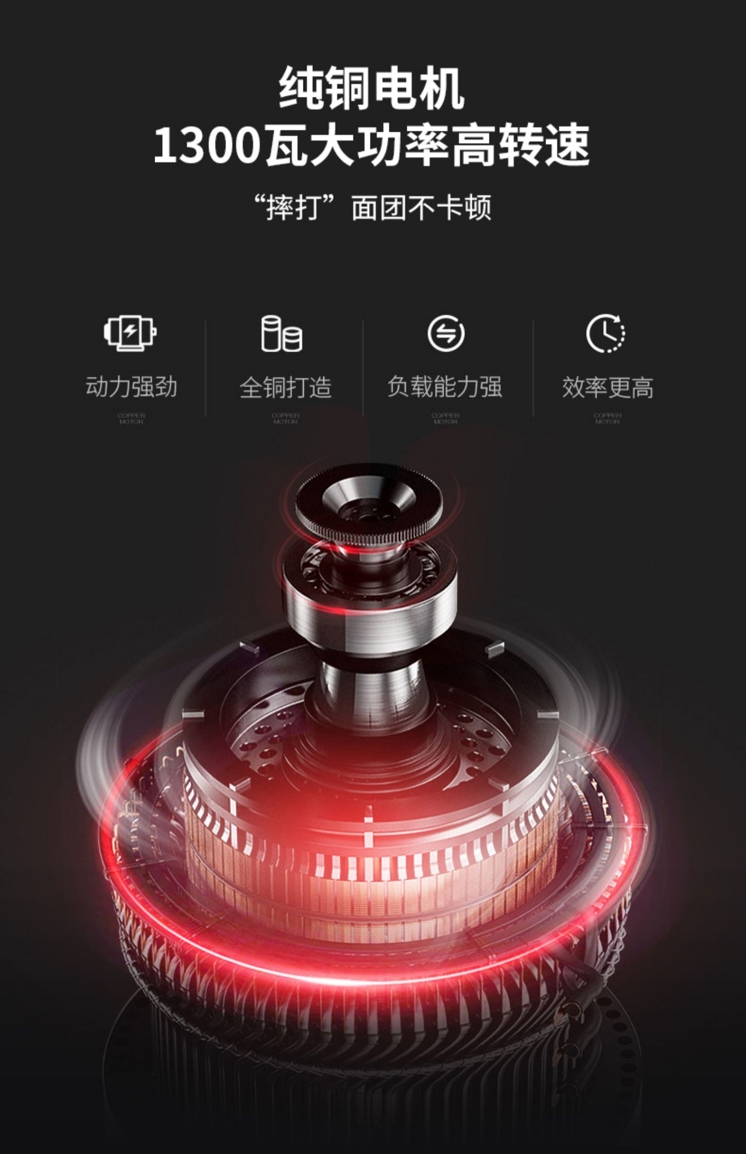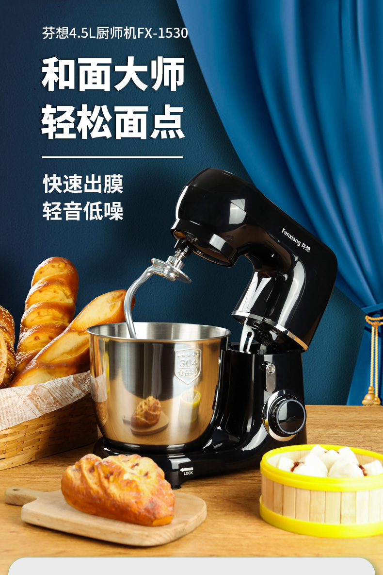 【法国品牌】芬想和面机,全金属机身,自动和面,容量4.5L够全家食用!和面、打蛋、搅拌均可使用哦,5分钟快速出手套膜,抬头断电,安全使用!【退货运费险】