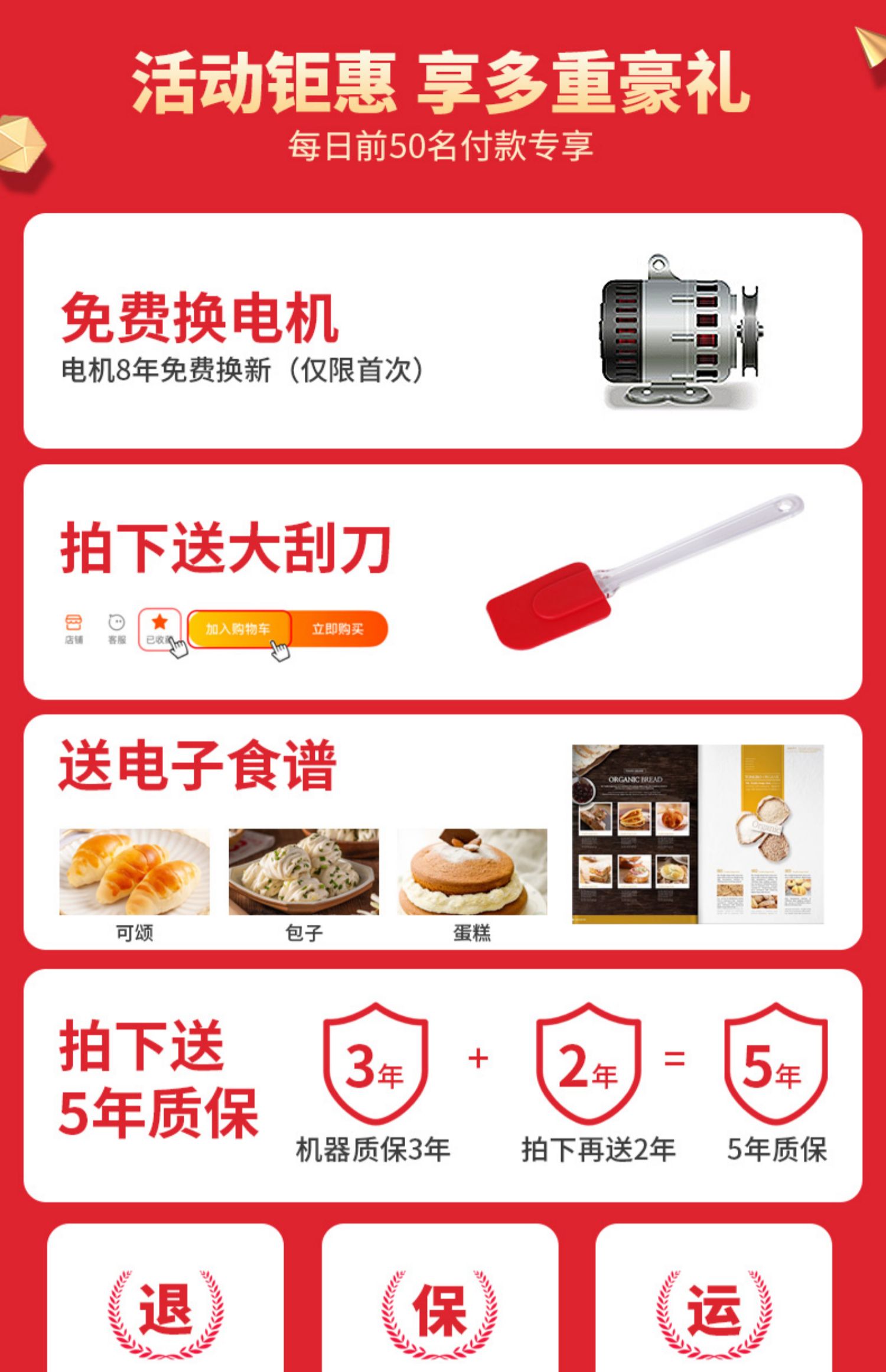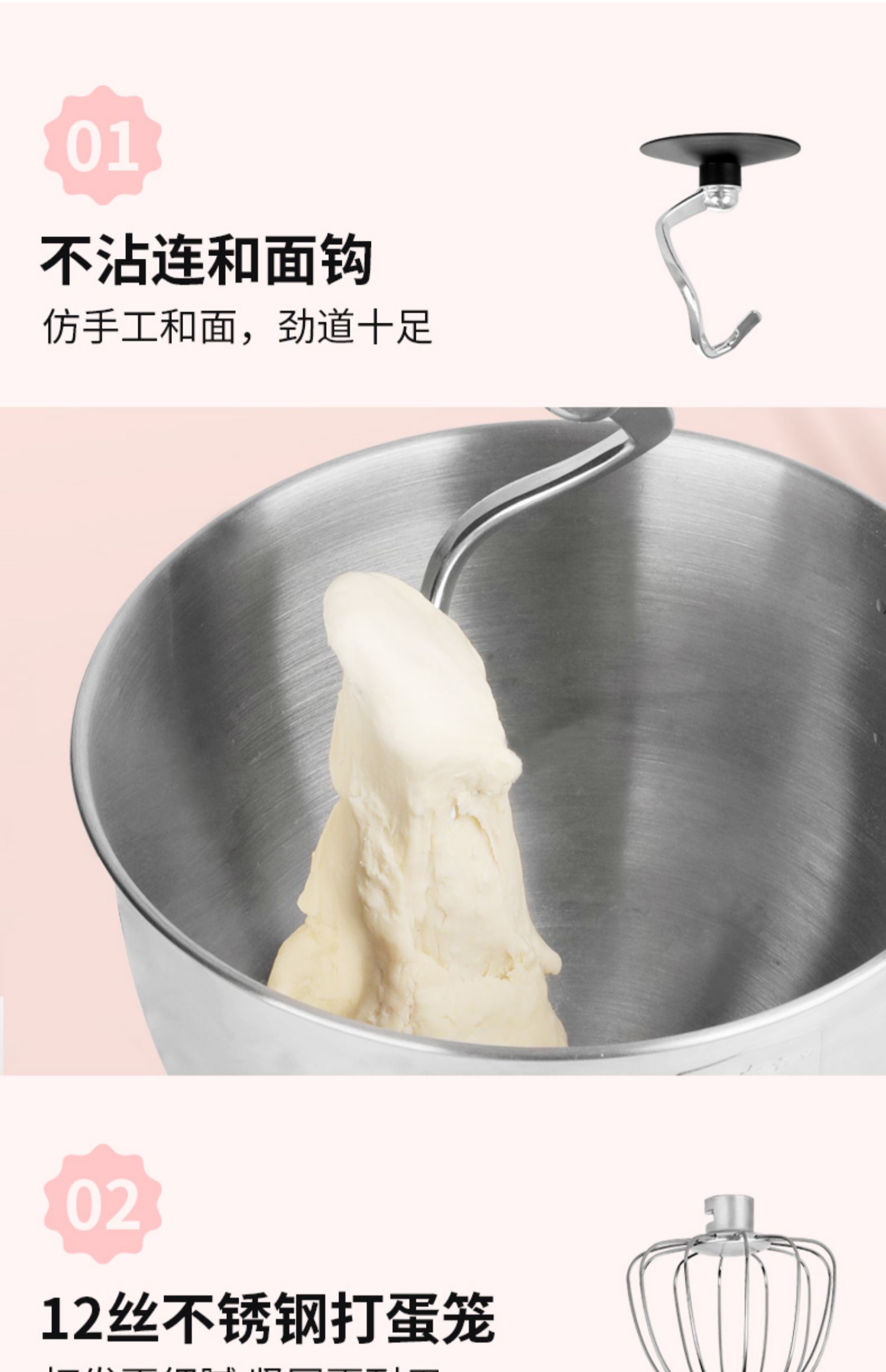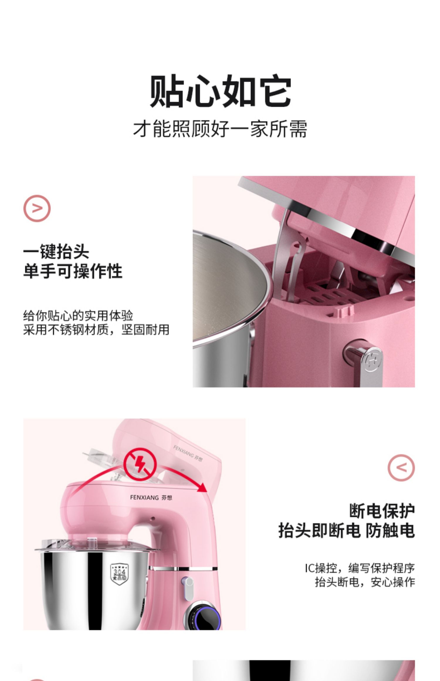 【法国品牌】芬想和面机,全金属机身,自动和面,容量4.5L够全家食用!和面、打蛋、搅拌均可使用哦,5分钟快速出手套膜,抬头断电,安全使用!【退货运费险】