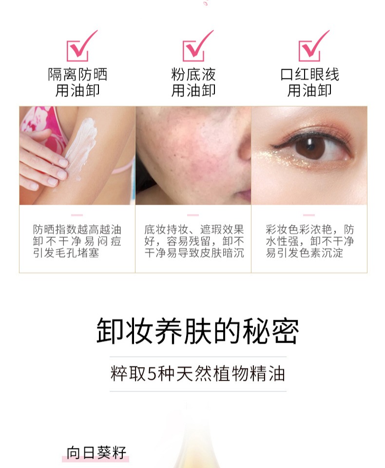 卸妆不干净容易引起色素沉淀,一定要试试这款卸妆养肤双效合一,深层清洁毛孔,温和无刺激,五大美容油滋养,滋润清爽不紧绷~与黑头粉刺说拜拜