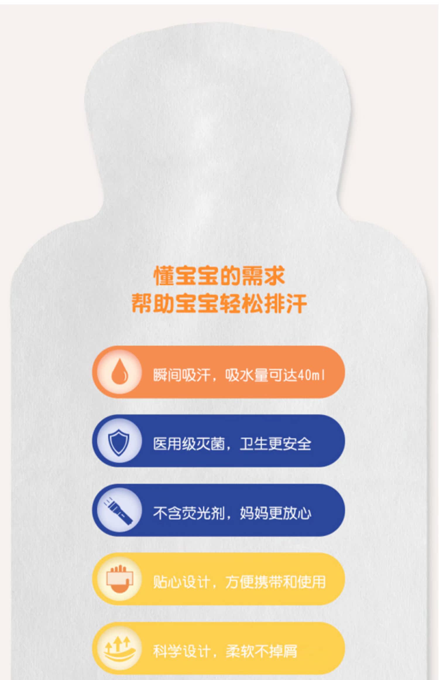 选用天然植物纤维材质,无味、不含有荧光剂、0污染,中空多孔结构,亲和透气无刺激,吸汗透气柔软亲肤,加宽加大设计,瞬间吸汗,医用级灭菌,柔软不掉屑