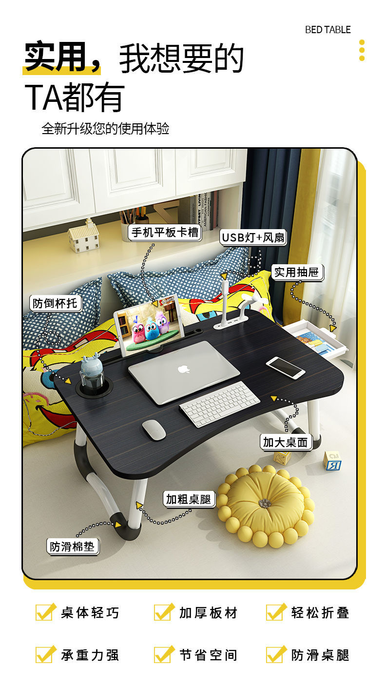 多功能床上折叠桌,防水耐脏,轻松折叠不占空间,稳固耐用,承重力强,家里或者宿舍用都合适。【七天无理由退换】