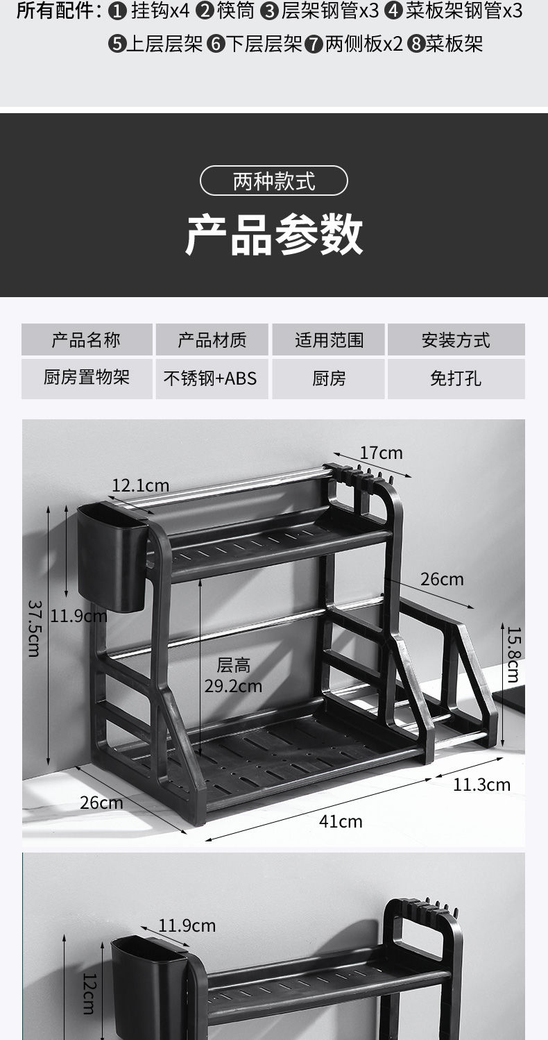 厨房置物架,大容量收纳,居家百搭,摆脱杂乱,开放式收纳,拿取方便,安装简单。【七天无理由退换】
