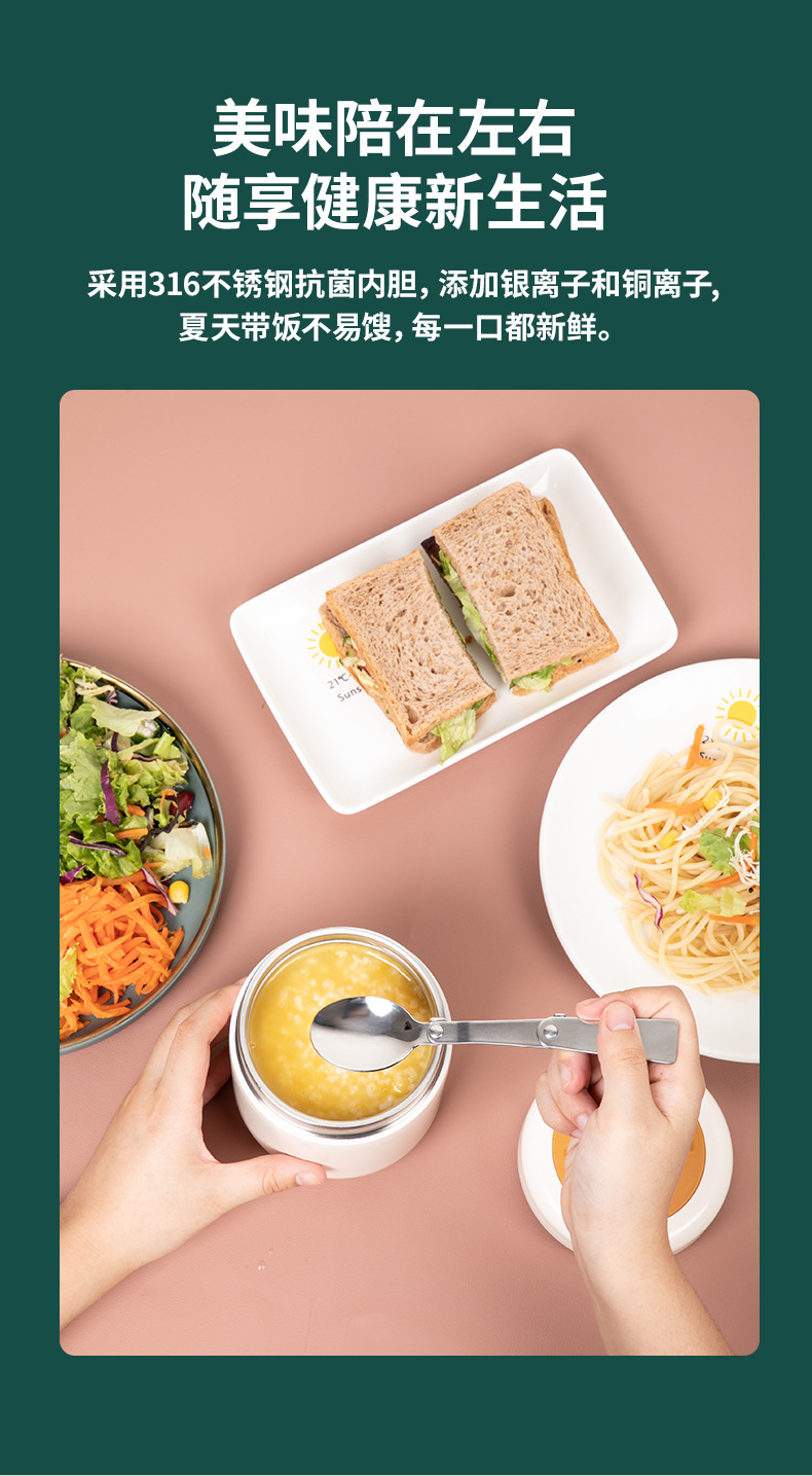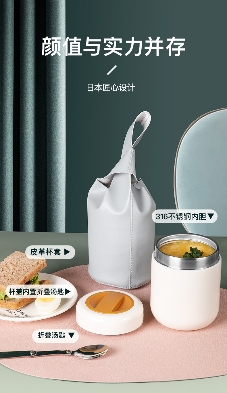 [赠运费险]超高颜值便携焖烧杯,保温桶饭盒。食品级,316不锈钢三种适配容量可选,长效巨保温,焖粥带饭都可以,保温保冷都适合,小身材大容量,开启健康美味新主张!