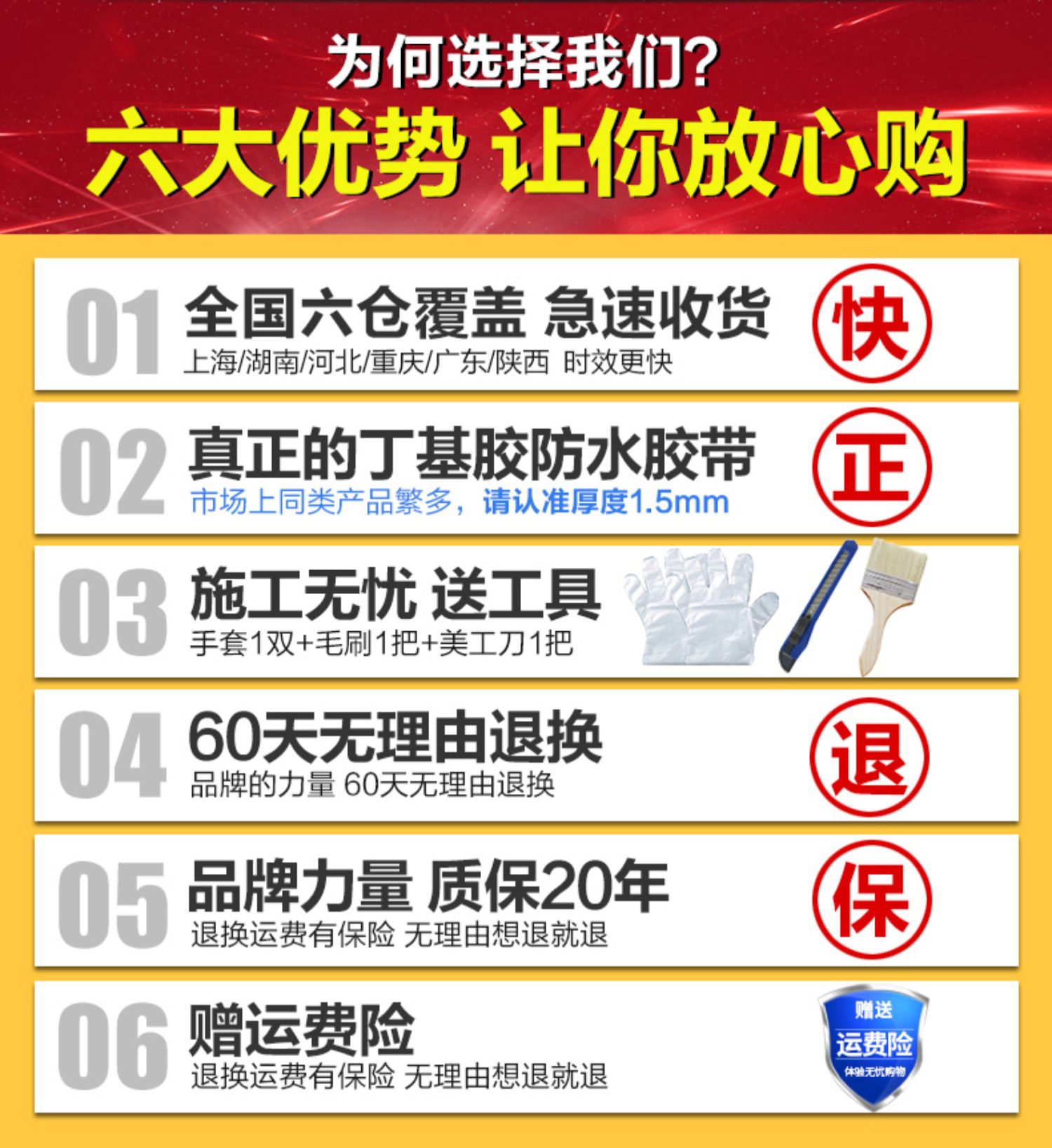 【买就送全套工具!】高分子丁基防水胶带,抗老化性,耐高低温,操作简单,加厚方格铝膜,一贴止漏!屋顶防水补漏材料楼顶裂缝丁基卷材防水胶带,强力堵漏王神器漏水贴!