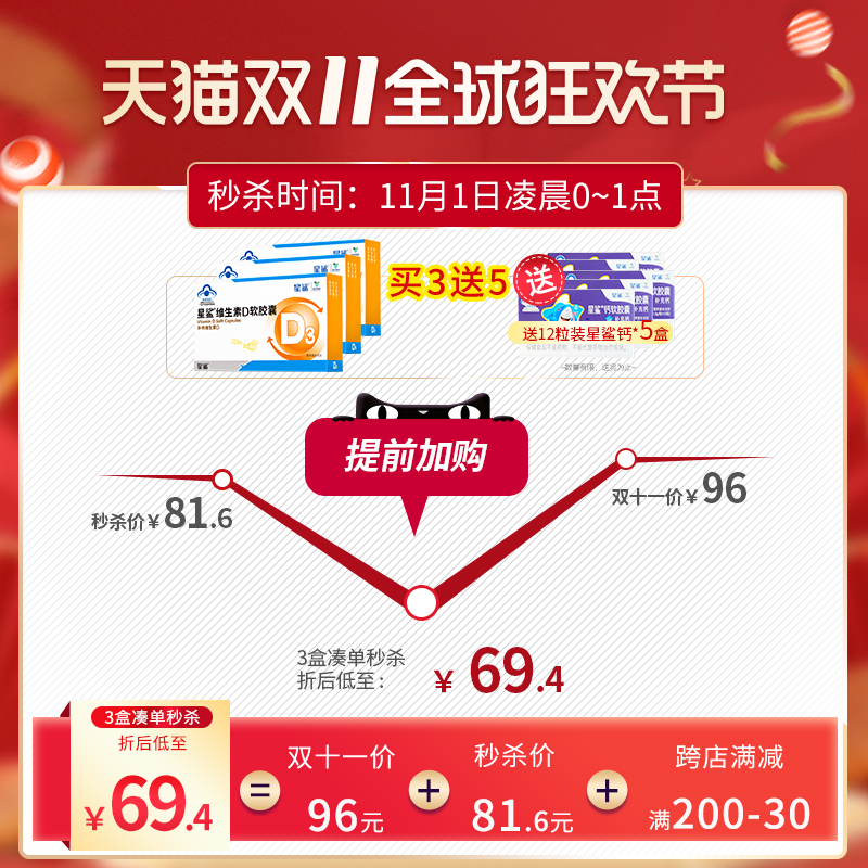 【星鲨】维生素D软胶囊90粒+星鲨钙软胶囊36粒,预防婴儿儿童佝偻病、骨质疏松,加强骨骼发育,维护免疫系统,促进钙质吸收,预防感冒,给宝宝更好的健康选择!