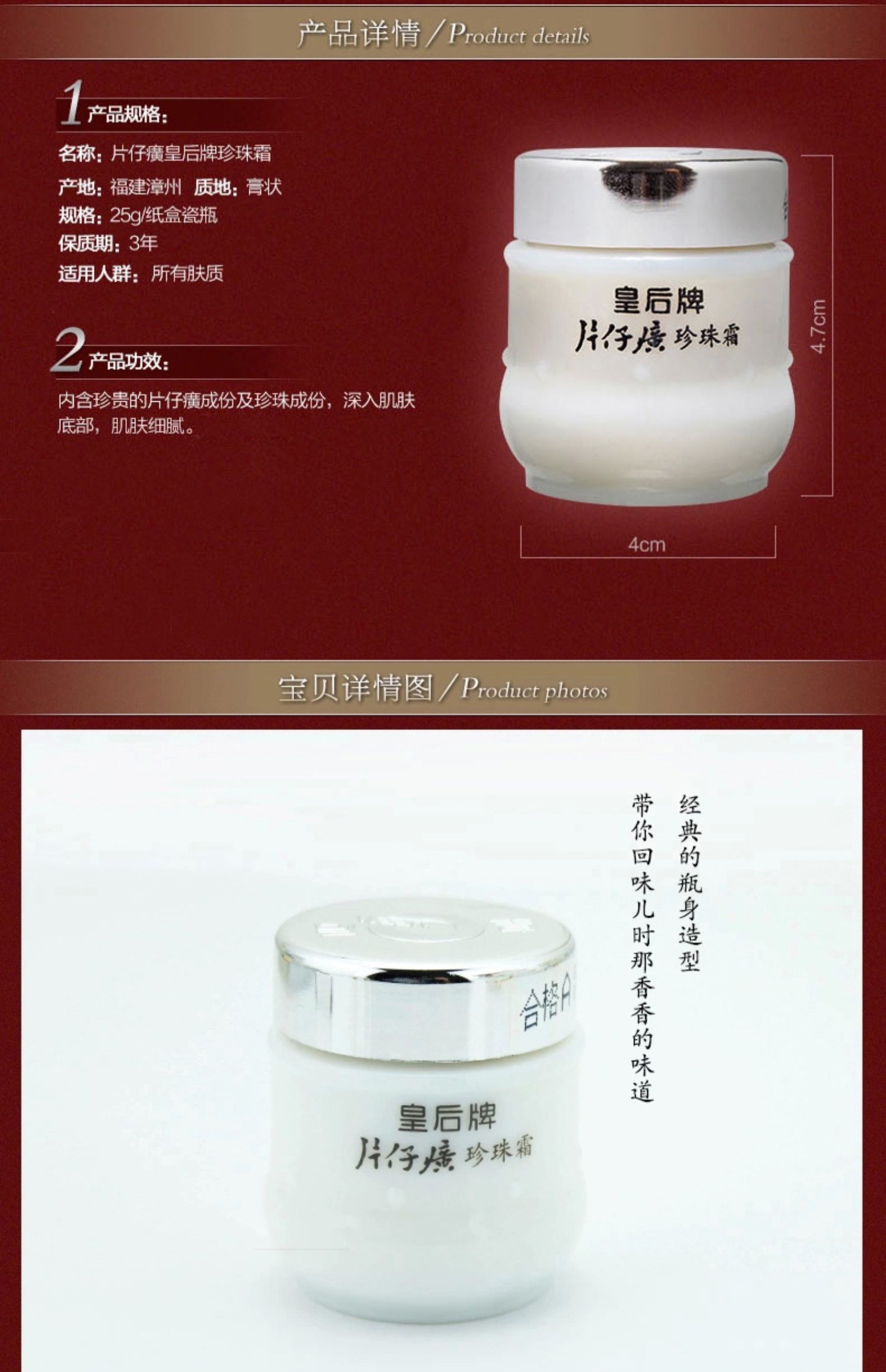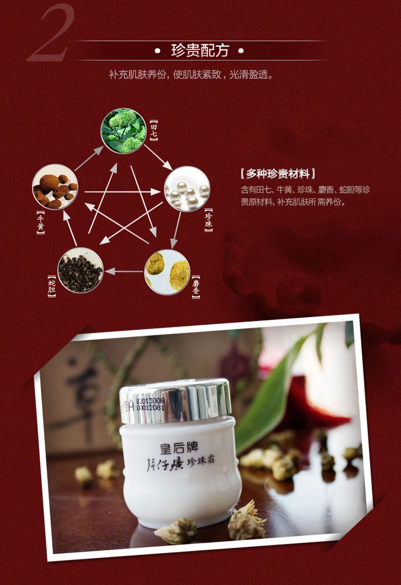 【皇后牌片仔癀珍珠霜】多种名贵中药,温和滋养,美白淡斑,改善暗沉、淡化细纹,令肌肤透亮有光泽,正品保障,妥妥的国货之光【过敏包退】【赠运费险】