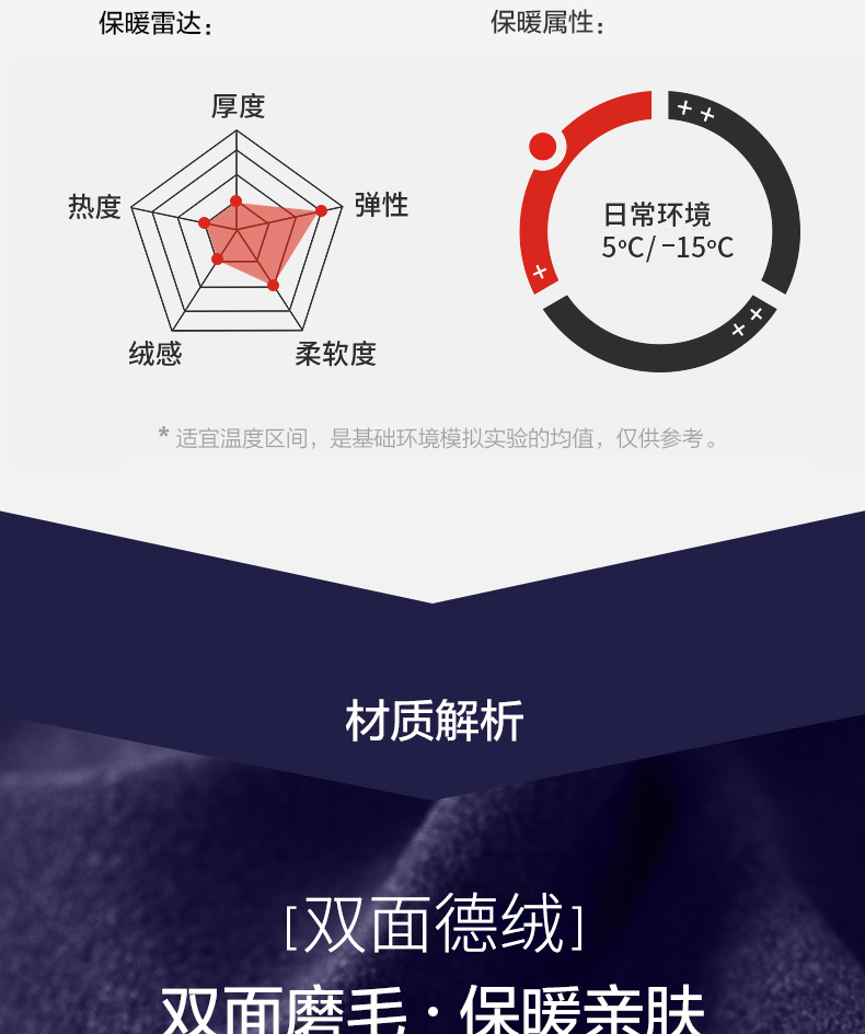 双面德绒,轻柔更保暖,锁温暖绒,加倍亲肤,专业剪裁不卷边,车线精湛,轻盈高弹,穿着舒适不束缚,多色可选。