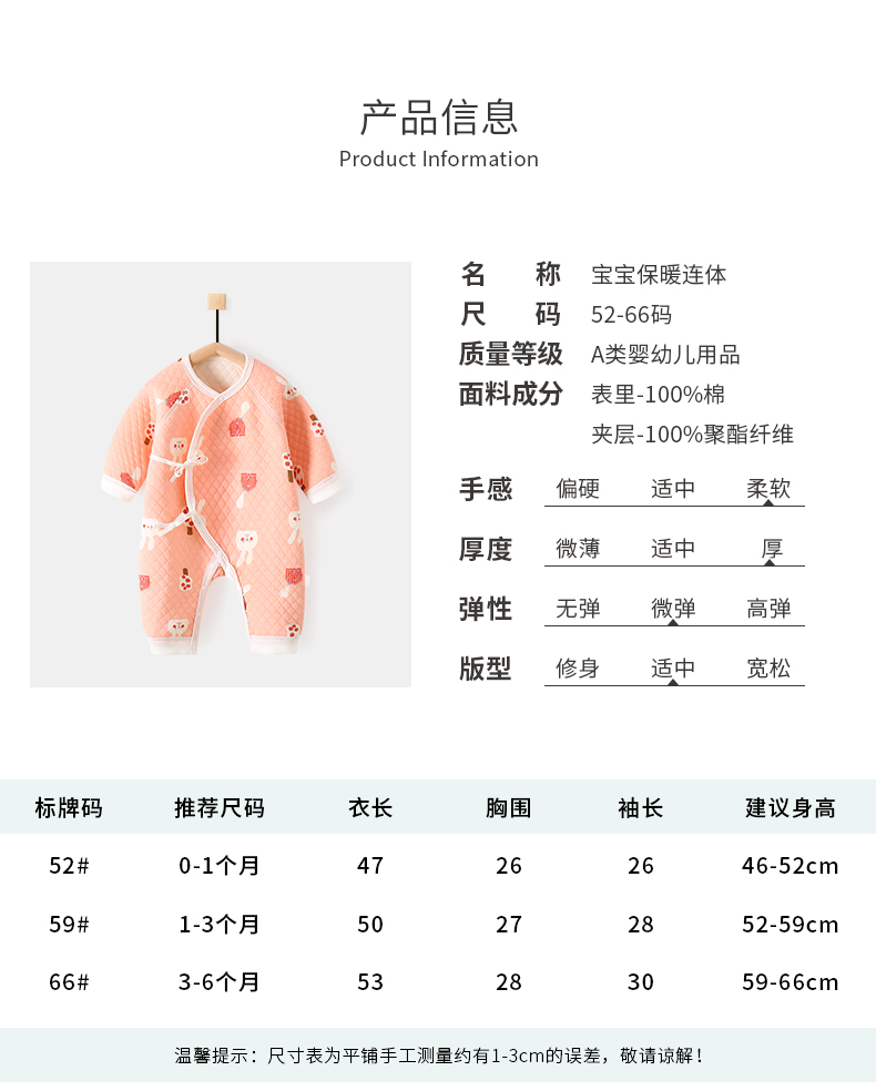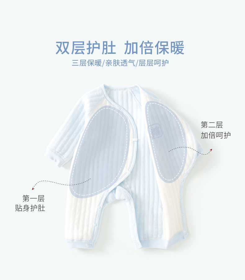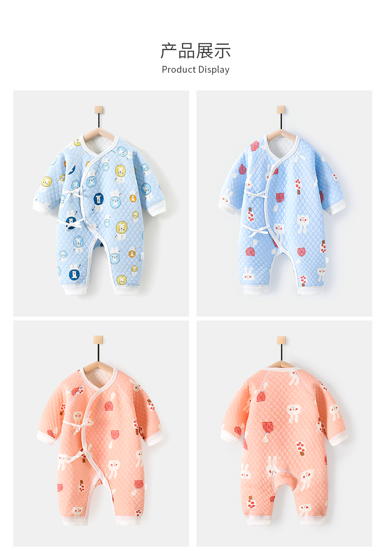 【送运费险】新生儿偏开夹棉保暖连体衣,亲肤面料,无荧光,无骨缝制,呵护稚嫩肌肤,亲肤舒适,透气吸汗,安新质检,可爱萌趣,三层保暖,夹棉加厚,萌宝推荐,妈妈放心之选