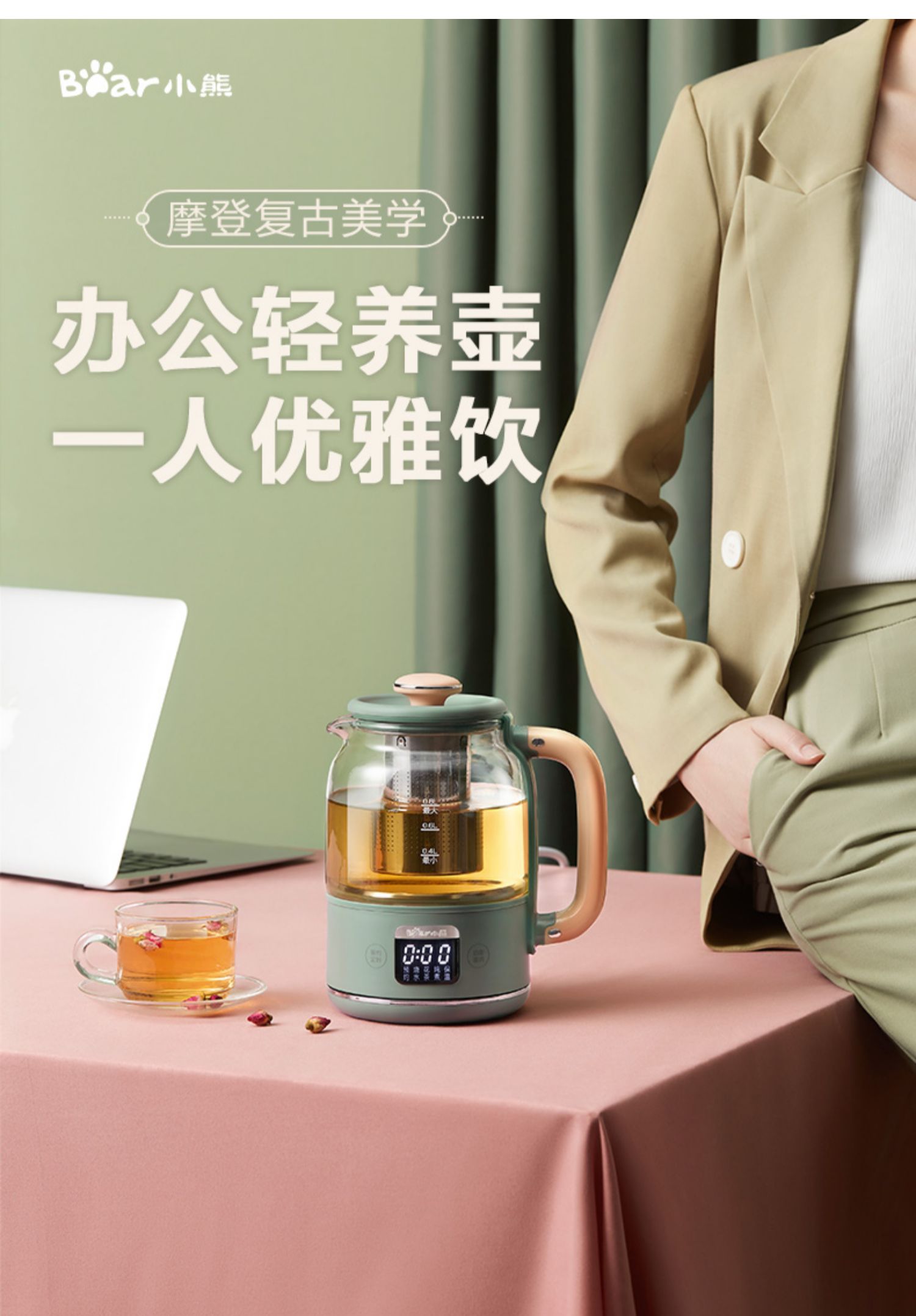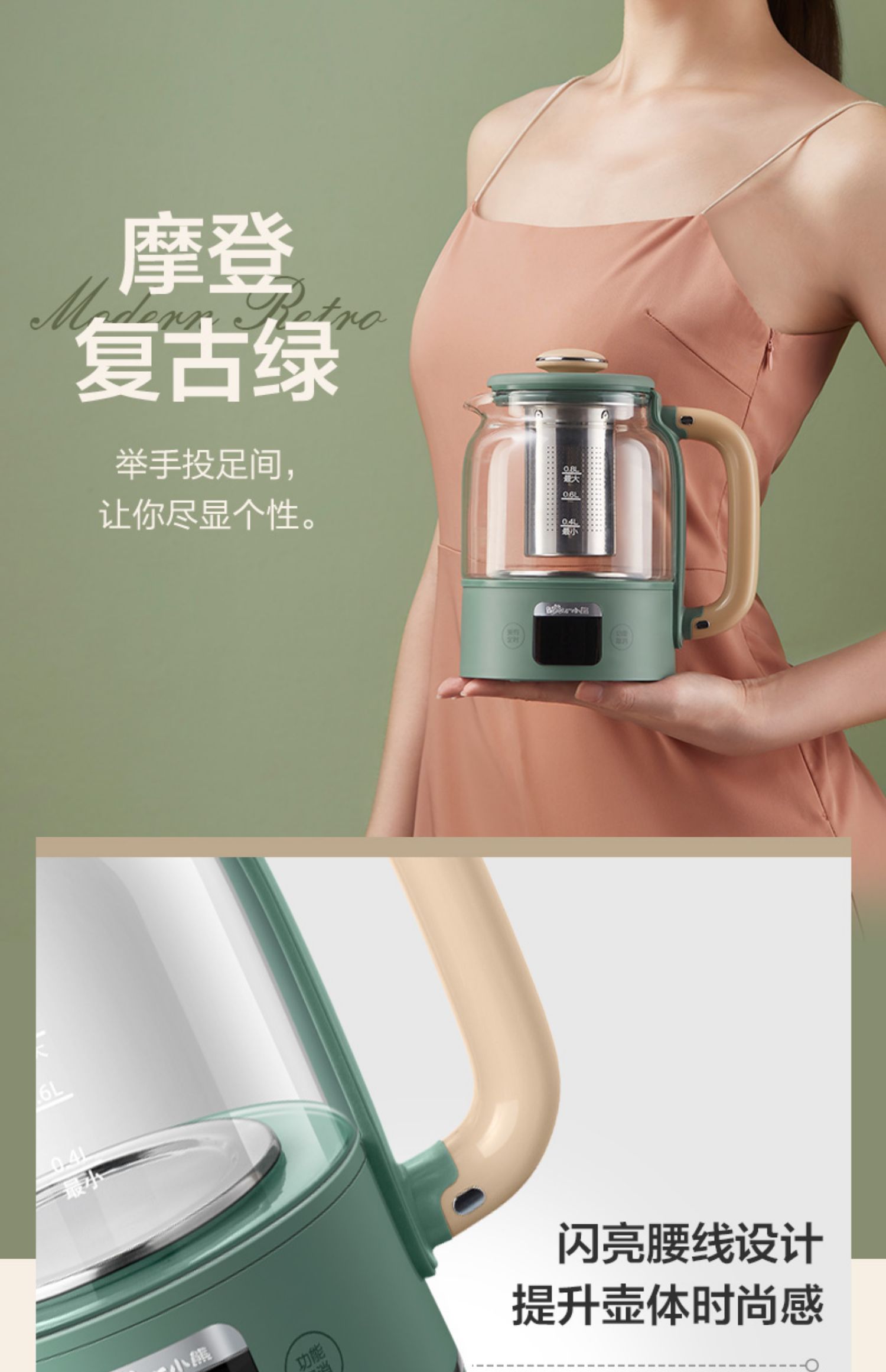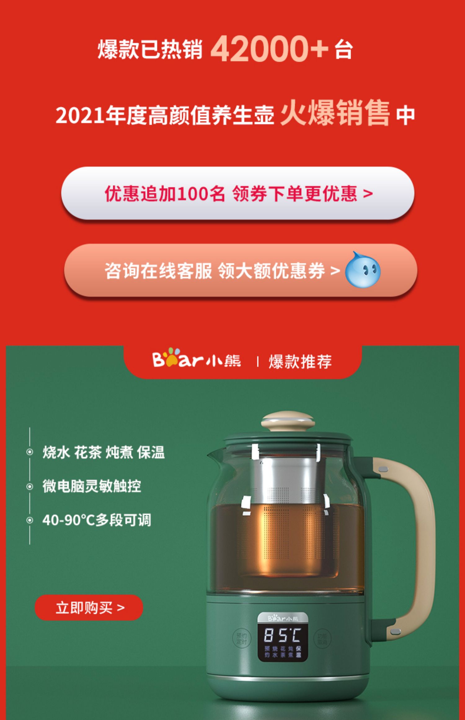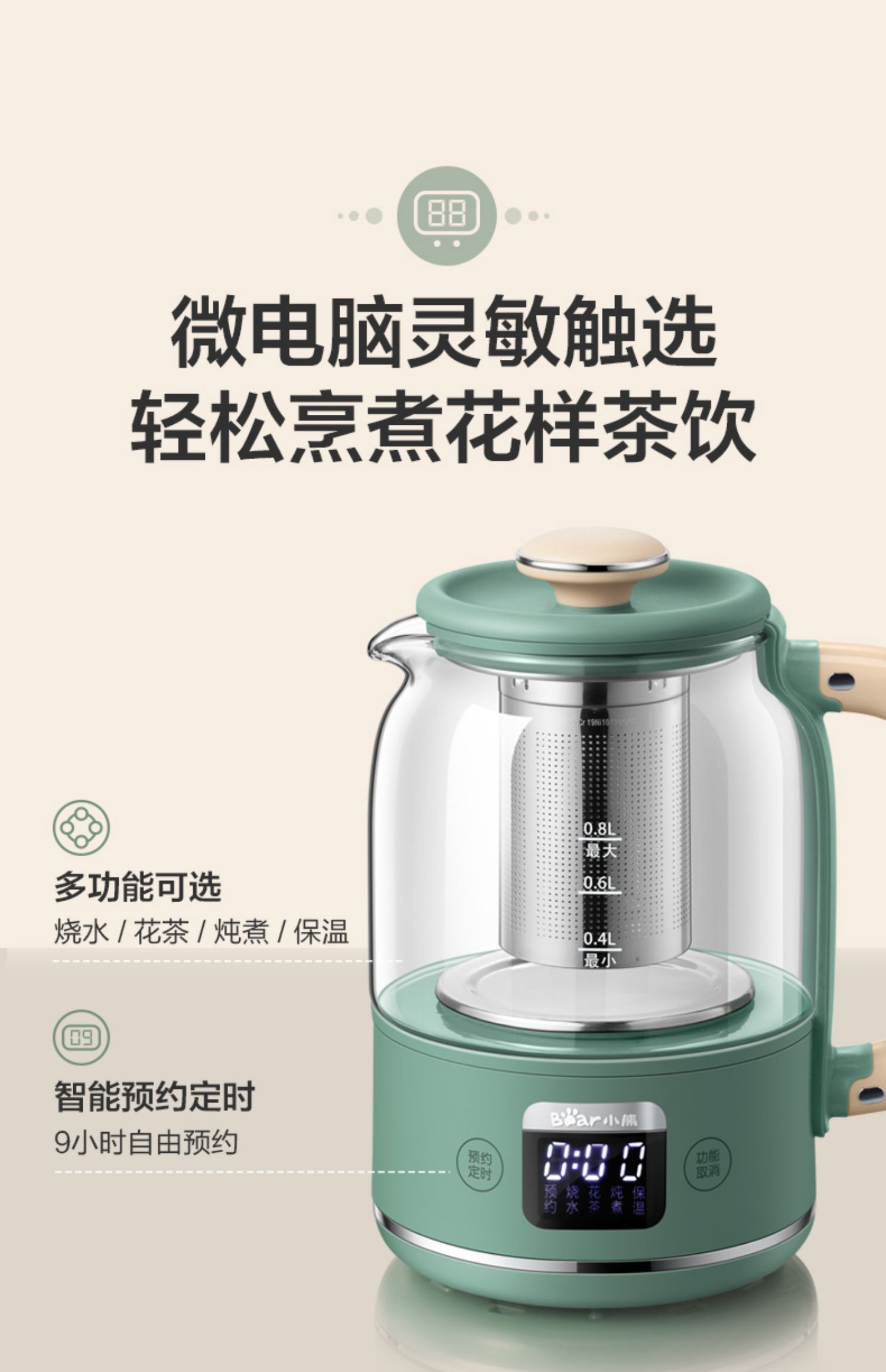 小熊养生壶,高硼硅玻璃材质,烧水/花茶/炖煮多功能,10分钟提壶记忆,多段温度可调。【赠运费险】