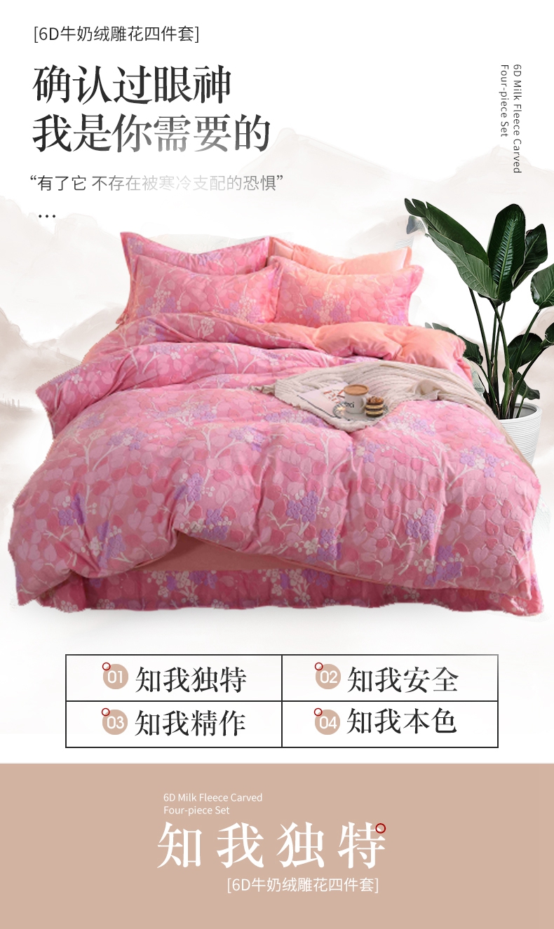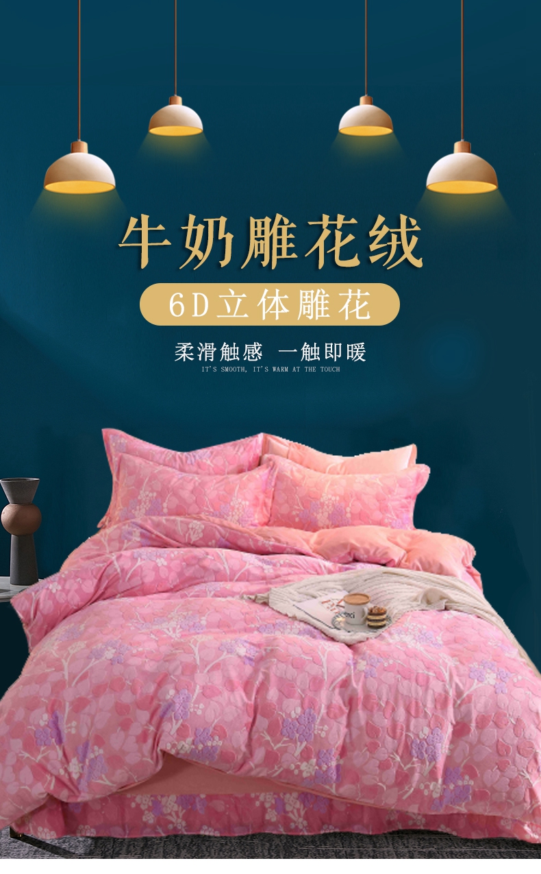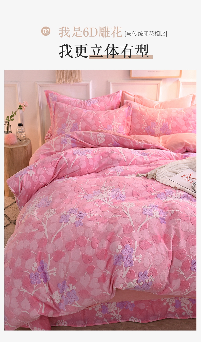 【全尺寸统一价】6D雕花绒四件套加厚保暖,特别是冬天,快准备上6D雕花绒4件套,高颜值,活性印染,细腻做工,优选面料,亲肤透气,享受品质睡眠生活,让你睡得暖和睡得香【赠运费险】